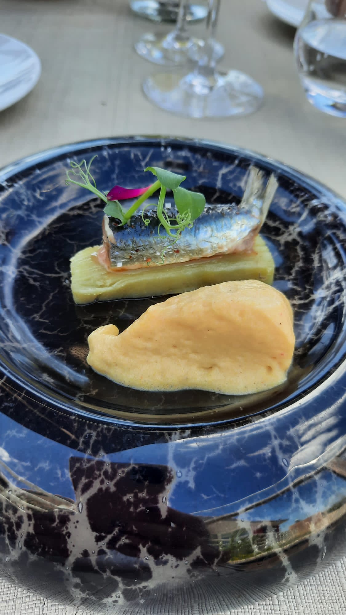 Grandiose: Un défilé de saveurs et de couleurs. Points positifs: Les plats étaient tous originaux, beaux et bien présentés, avec des saveurs incroyables. Le thème de la mer est délicatement mis en valeur à de nombreuses reprises. Une équipe conviviale, pro mais sans prétention. Le patron très agréable aussi et à l'écoute, simple. Une vue agréable sur la mer. Le vin bien choisi et délicieux aussi. Points négatifs à mes yeux: à mon goût un petit manque de légumes & féculents, indispensables pour arriver à satiété. Service parfois long pour certains plats, mais je pense que cela fait partie du jeu. Un restaurant à conseiller pour les grands évènements, et les épicuriens exigeants qui cherchent à découvrir des saveurs nouvelles.