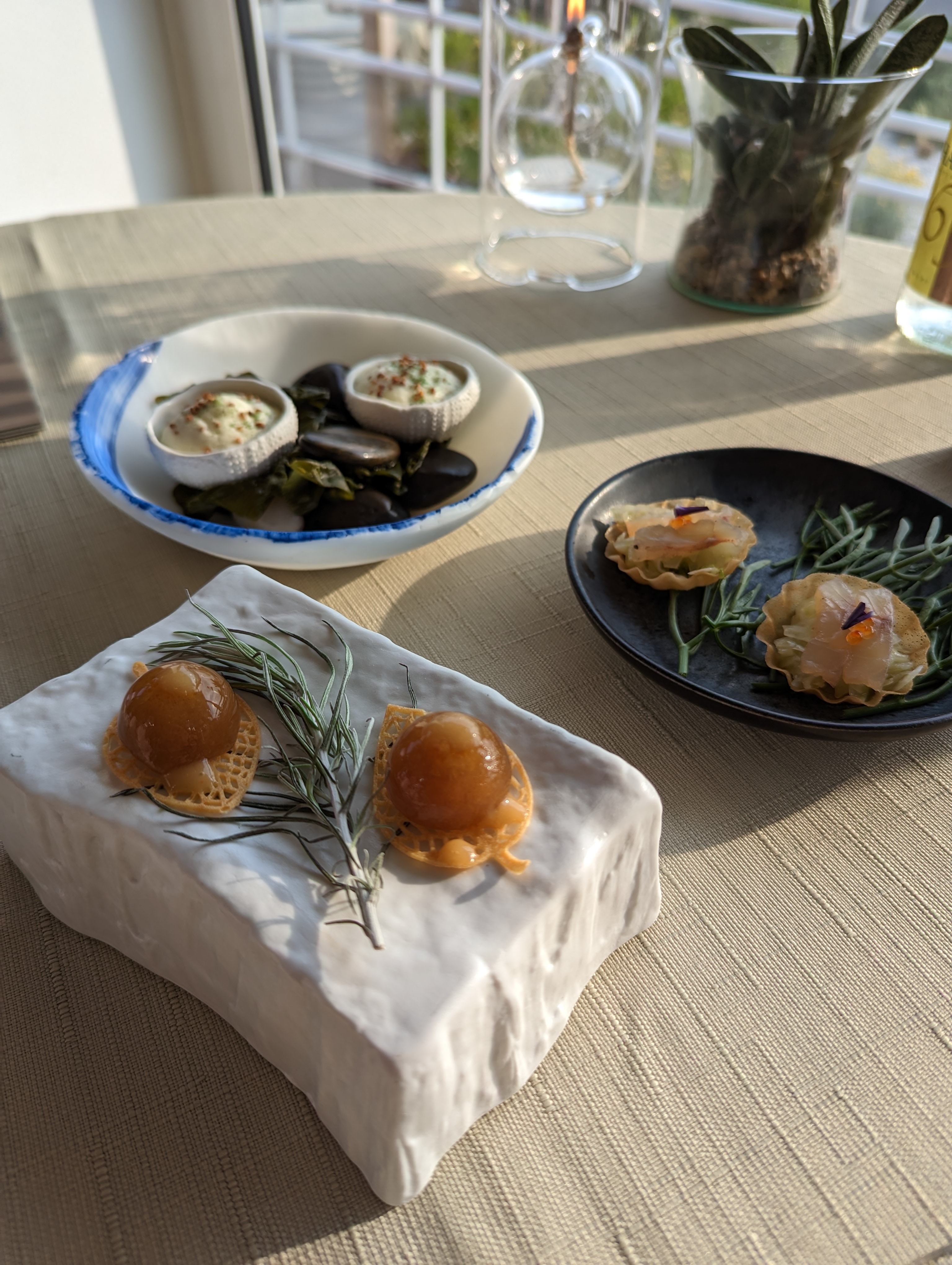 Excellente adresse. Les plats sont délicieux et originaux. Nous avons fait beaucoup de restaurants étoilés et celui-ci est incontestablement parmi les meilleurs en terme de qualité gustative. La table avec vue sur mer est fort sympathique et cohérente avec l'expérience globale. Le seul point négatif (même si j'ai conscience que cela n'est aucunement de la faute du restaurant) est la clientèle, assez bruyante, qui ne respecte aucunement le calme et le charme de l'Océan. Les tables servies étant un peu trop proches les unes des autres, nous avons été quelque peu dérangés par les discussions animées et les blagues de mauvais goût de nos voisins. Merci quand même pour ce beau moment. Et bravo aux cheffes pâtissières !