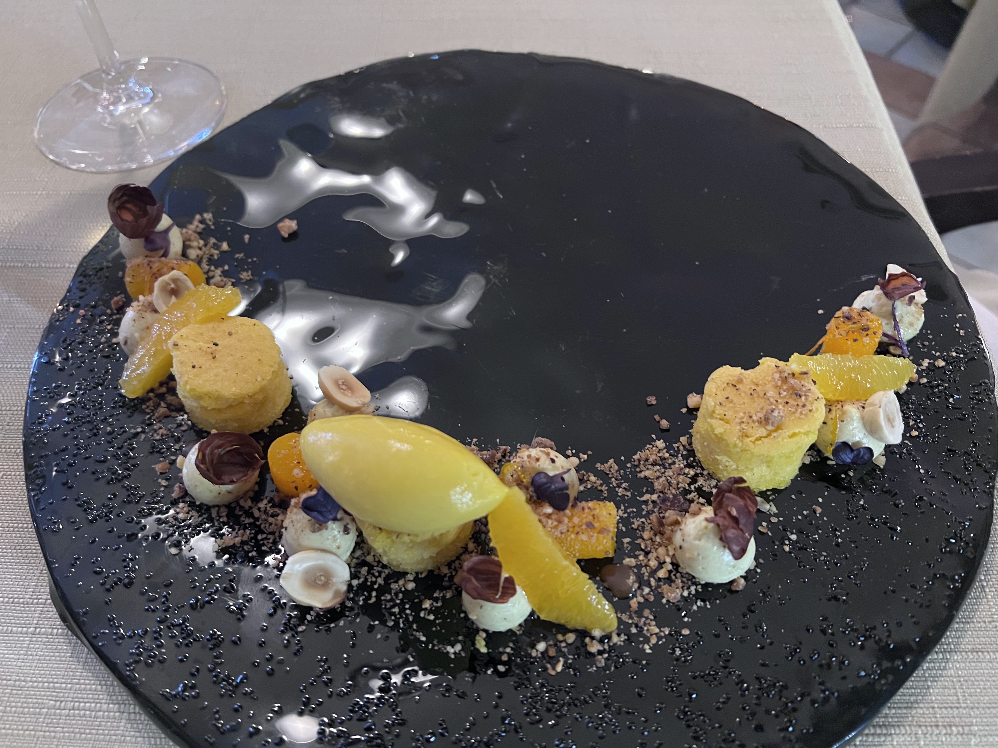 Certainement l'étoilé le plus savoureux que j'ai pu faire. Certes l'accueil est singulier car le chef est un personnage peut être un peu maladroit mais cela rend le lieu unique ! L'enchaînement de plats tous plus beaux et savoureux les uns que les autres ravis les yeux et les papilles. La véritable surprise réside dans les desserts, largement au niveau de l'ensemble des plats salés, c'est assez rare pour être souligné ! Je suis plus mitigée sur le service, la tenue n'est pas adaptée à la saison, on souffre avec eux de devoir servir en veste et pantalon noir sous 35° en terrasse. Légèrement rigide et assez peu en adéquation avec l'innovation que l'on retrouve dans l'assiette. Il n'en reste pas moins agréable, malgré quelques petites fausses notes, cela mériterait un bon coup de modernisation pour que l'expérience soit vraiment inoubliable. Je tiens à préciser que j'ai vraiment conscience que le contexte actuel est compliqué pour le recrutement et je ne vous en tiens aucunement rigueur car nous avons vraiment passé un excellent moment. Merci à toute l'équipe, je vous souhaite un bon courage et une excellente fin de saison !