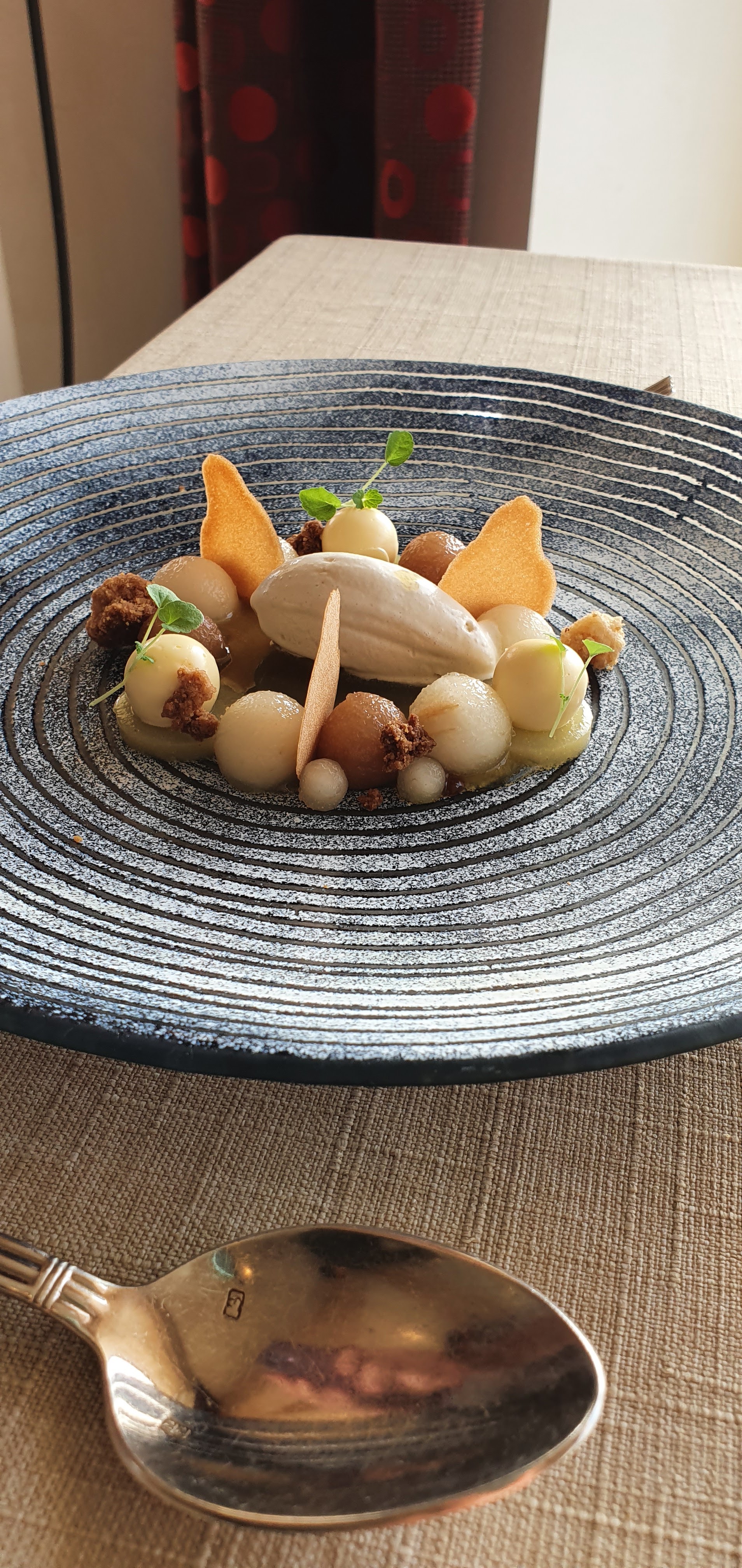Je viens de terminer mon dîner, accompagné par les conseils avisés de Jeremy sur les vins (et je ne me souviens plus du cépage présent dans ce Colllioure blanc extra) et par un service aux yeux bleus enchanteurs. Bref, de l’huile d’aneth, surprenante au comté 18 mois, qui fait plus jeune que son âge, ce fut un moment agréable. Si, comme moi, vos pas vous mènent dans ce coin de Vendée, prenez le temps de vous vous y arrêter. Et terminer par un Tesseron 1976 😁
