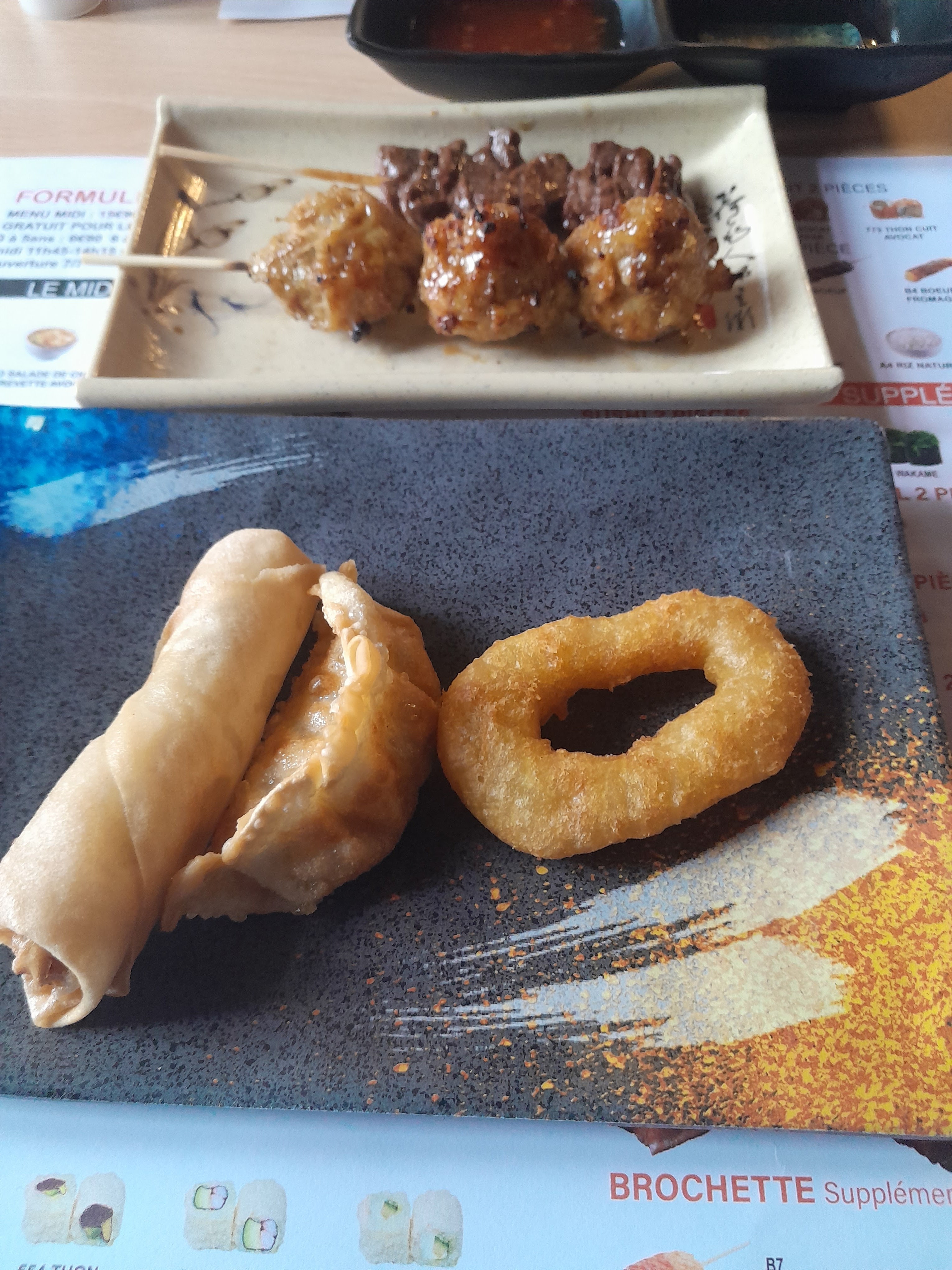 Mon avis concerne le restaurant On y mange très bien Nourriture frais et de qualité 🍣 sushi tres bon brochette de viandes au top! Petit clin d'œil au serveur qui et tres sympa et a l'écoute. Continuer comme sa....