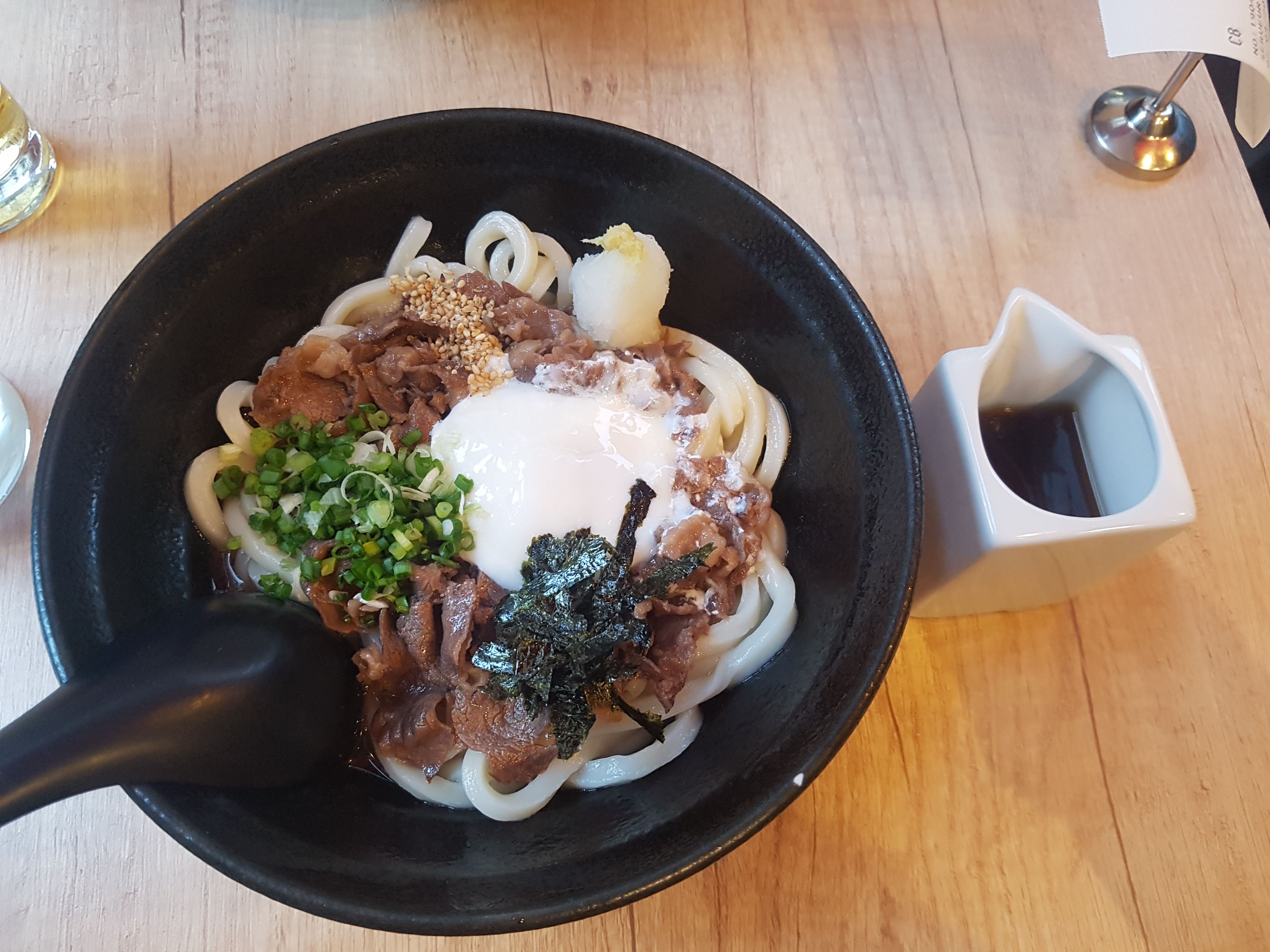 Très bonnes Udon élastiques comme il faut qui sent typiquement le fait maison.la garniture est sans fioritures et le bouillon excellent. Nous sommes venus un Samedi il y avait littéralement personne. Les prix sont relativement haut mais la localisation y joue pour beaucoup je pense.