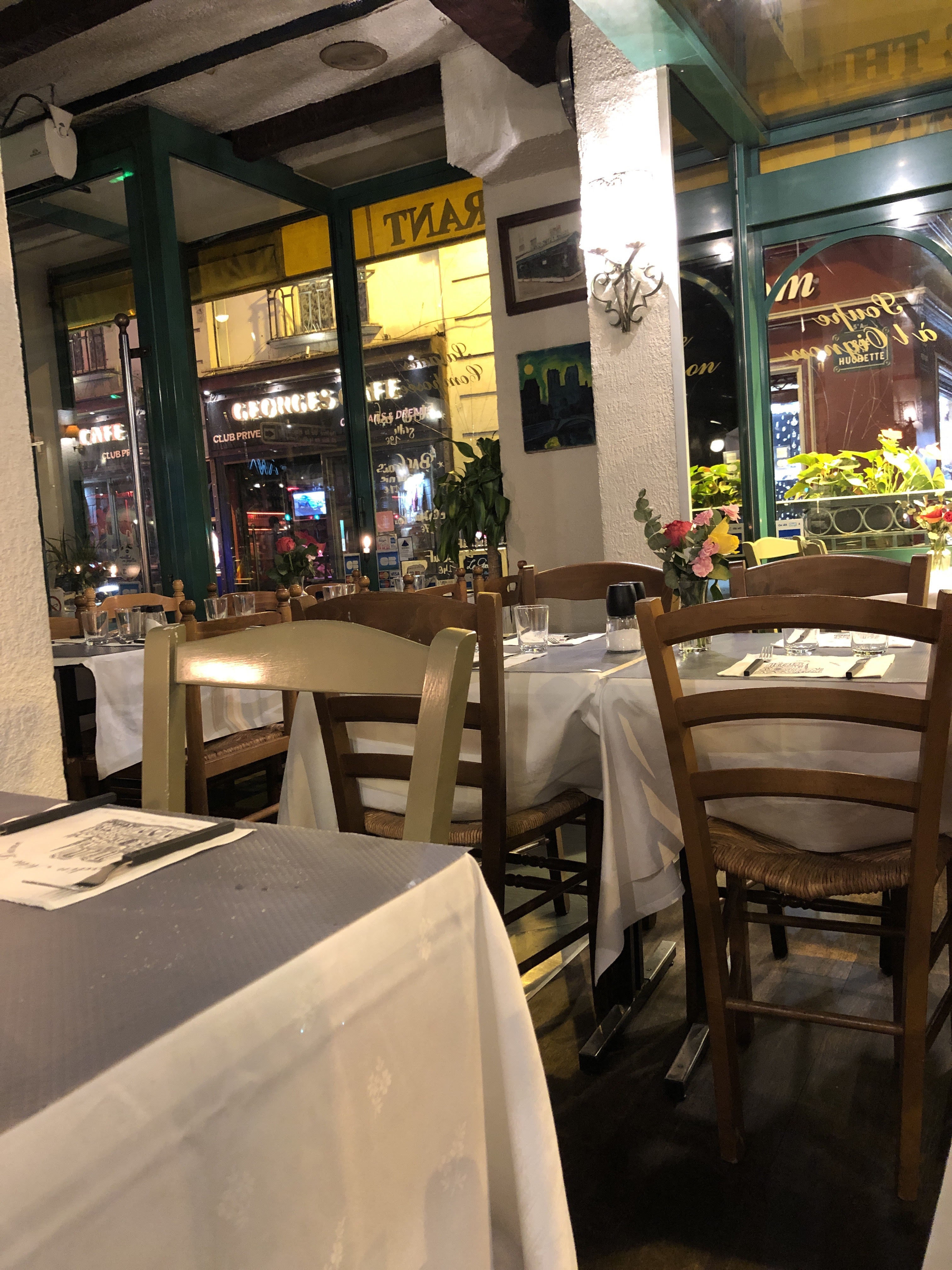 Ce restaurant est pittoresque, calme et la nourriture était correcte. Honnêtement, ce que je préférais dans cet endroit était la crème brûlée et le café. J'ai eu les moules farcies et la soupe à l'oignon française (qui était quand même plutôt bonne). Le service était correct, mais une chose que je dirai, c'est que les salles de bains sont horribles. A part ça, tout le reste était correct.