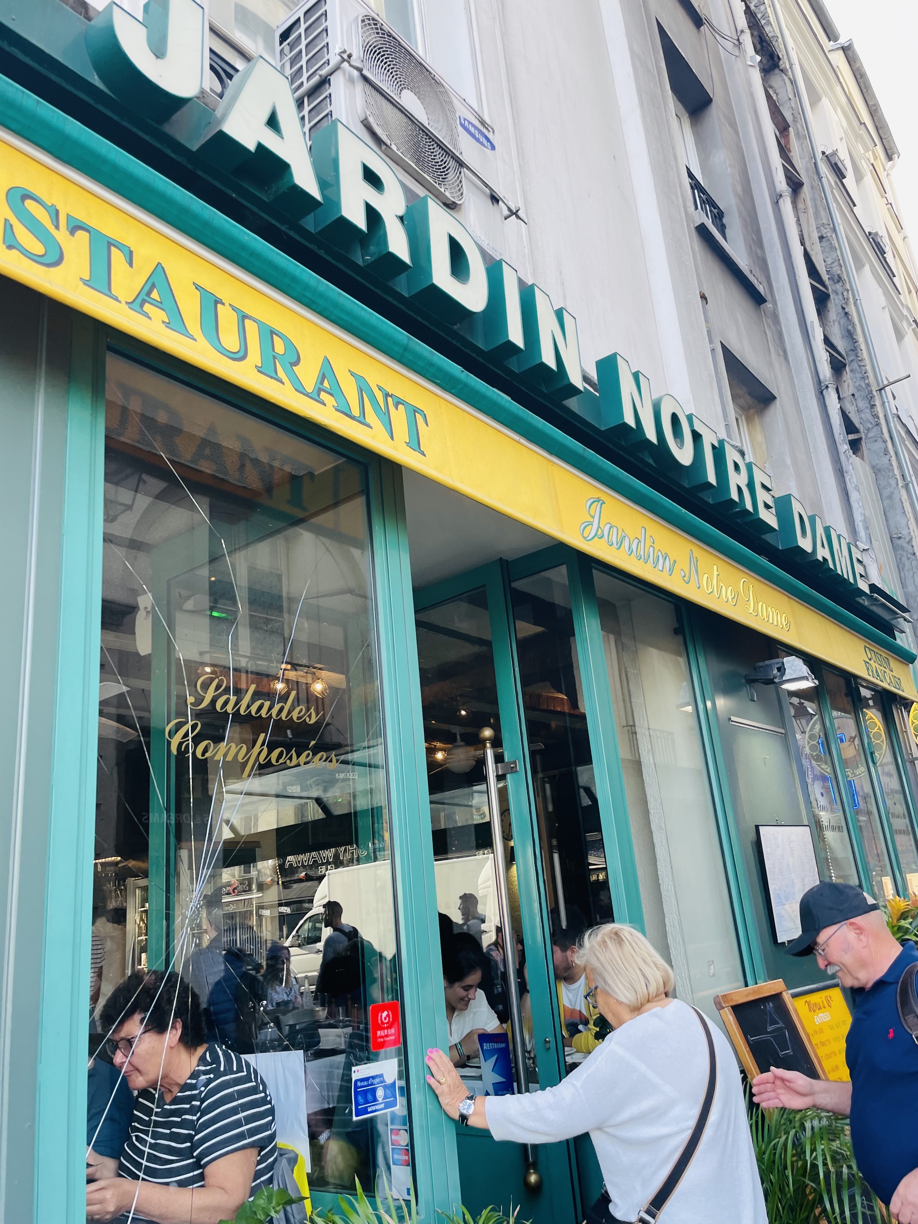 Super endroit où aller si vous voulez vous éloigner des foules de touristes. Des sièges confortables avec une vue magnifique sur Notre-Dame si vous pouvez vous asseoir près de la fenêtre. Personnel très sympathique qui parle anglais. Je recommande vraiment la salade de poulet (avec une vinaigrette de type asiatique) et l'agneau (bonne sauce) si vous obtenez le menu.