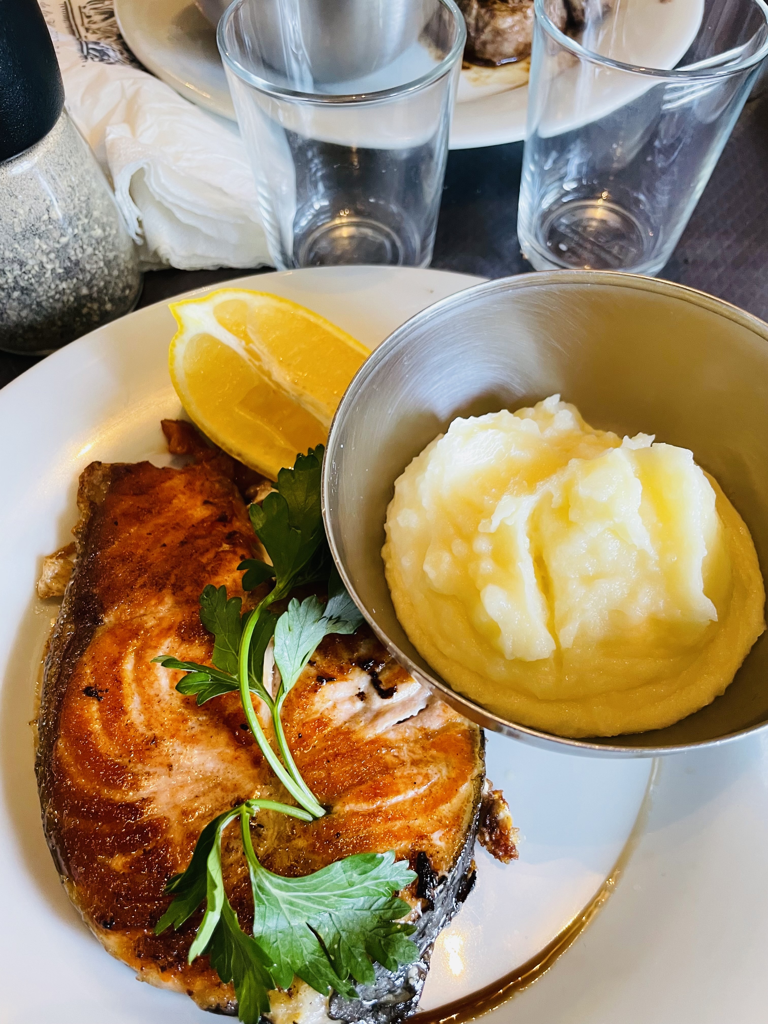 Serveuse très sympathique, dommage pour l’essentiel qui est le repas…. Nous prenons un menu à 18 euros, les salades qui portent le même nom que celles de la carte n’ont que le nom ….. nous pensions avoir un pavé de saumon chacun mais nous avons eu un 1/4 de darne mais la purée de pomme de terre était au rendez vous. La salade de fruits quant à elle était bonne.