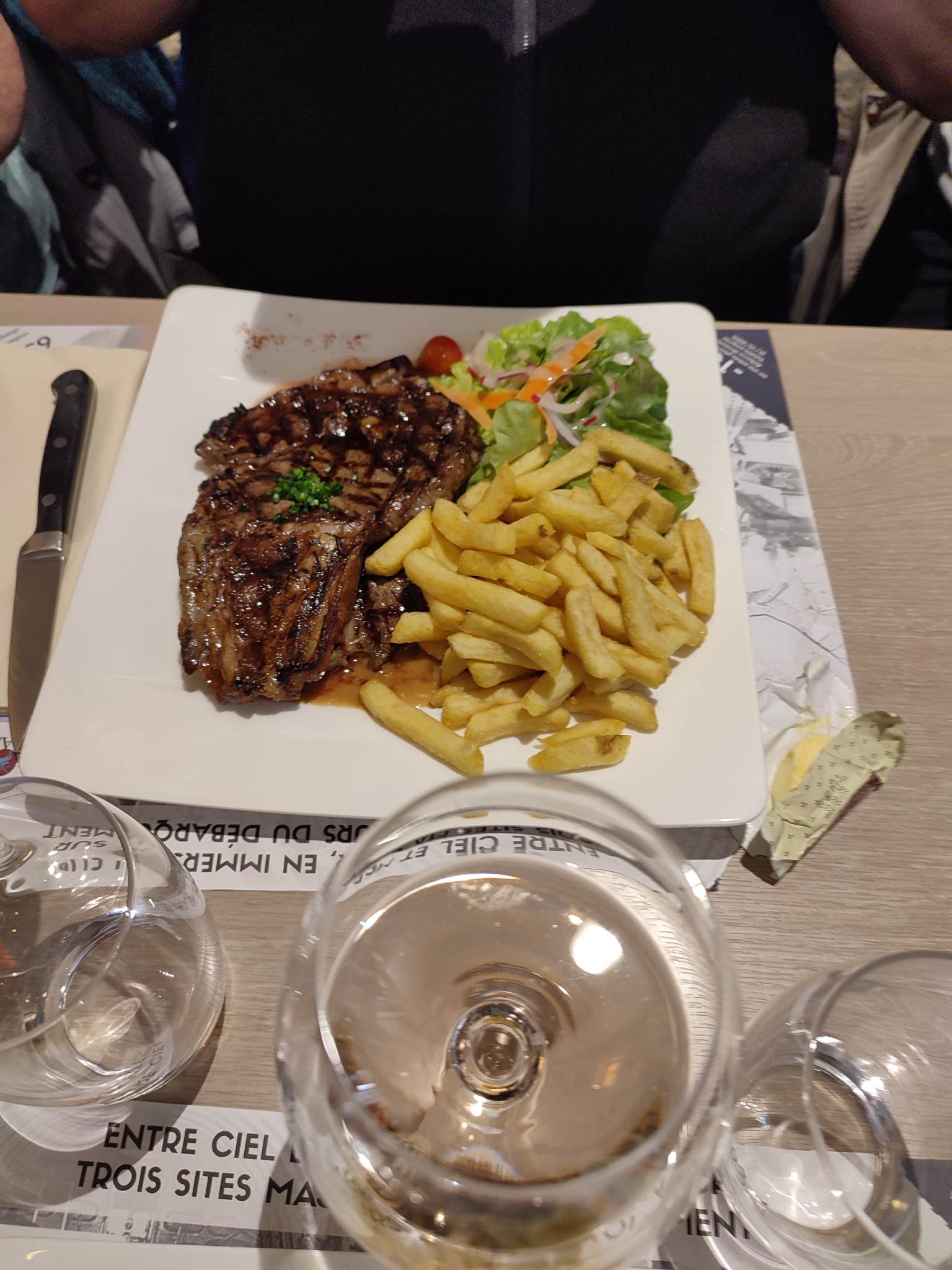 Restaurant bien .filet de bœuf fond dans la bouche. Restaurant qui a donné son nom au parachutiste Accroche à l'église de Saint Mère l'Eglise John Steele