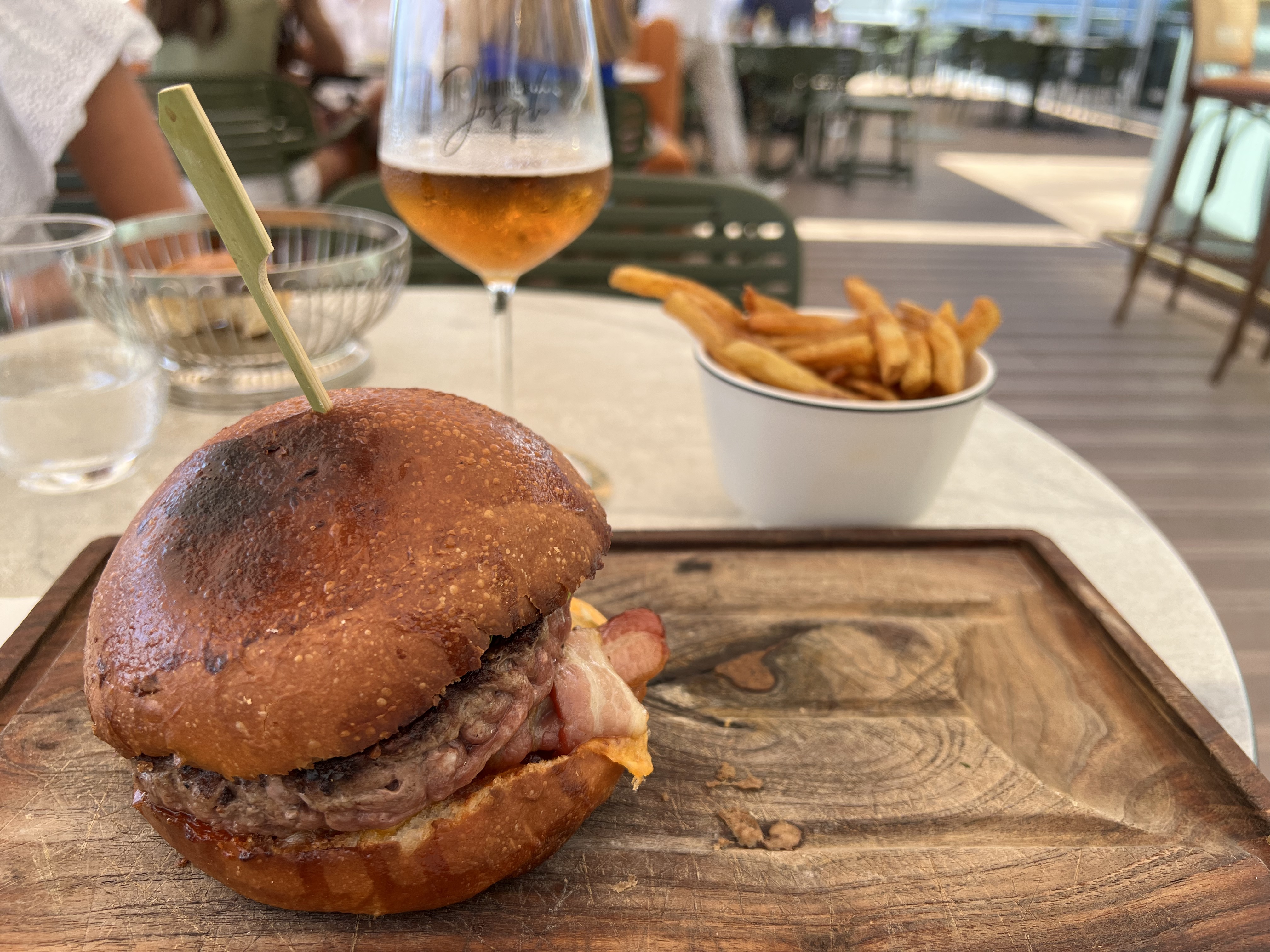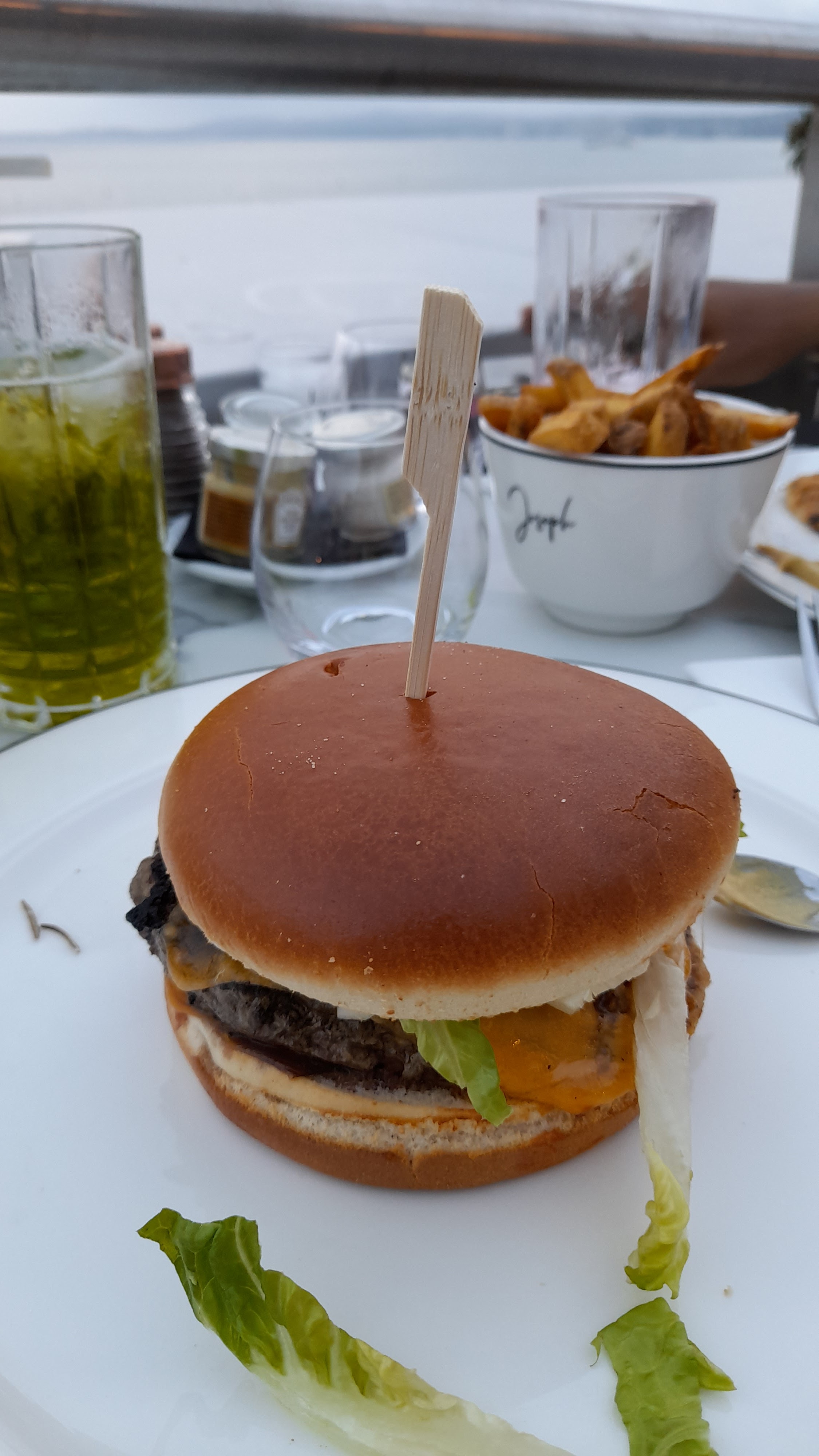 Super accueil, très sympathique. La terasse est splendide avec une vue magnifique, le soleil et le ciel bleu était en rendez vous . Le burger frite est très bon et le prix est justifié, frites maison la viande est très bonne et cuite comme il faut, le pain un peu brioché est de qualité et l'assaisonnement et parfait . Contrairement à certains commentaires négatif je n'ai pas du tout trouvé l'équipe désagréable bien au contraire très pro rapide efficace malgré le peu de personnel et le nombre de table. Je reviendrai sans hésiter.