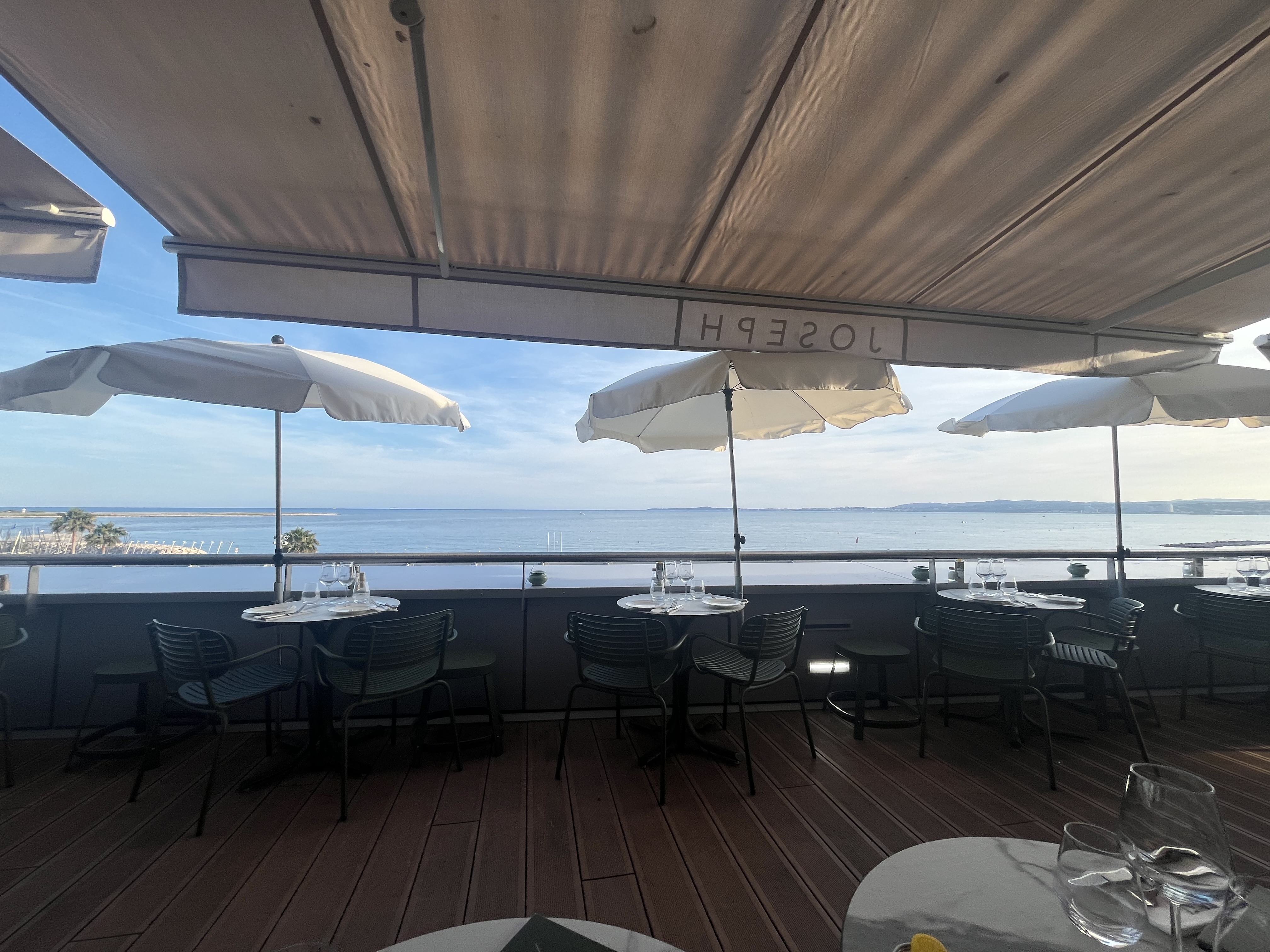 Terrasse très ombragée superbe vue mer, personnel au top du top très attentionné et régallissime des plats !!!