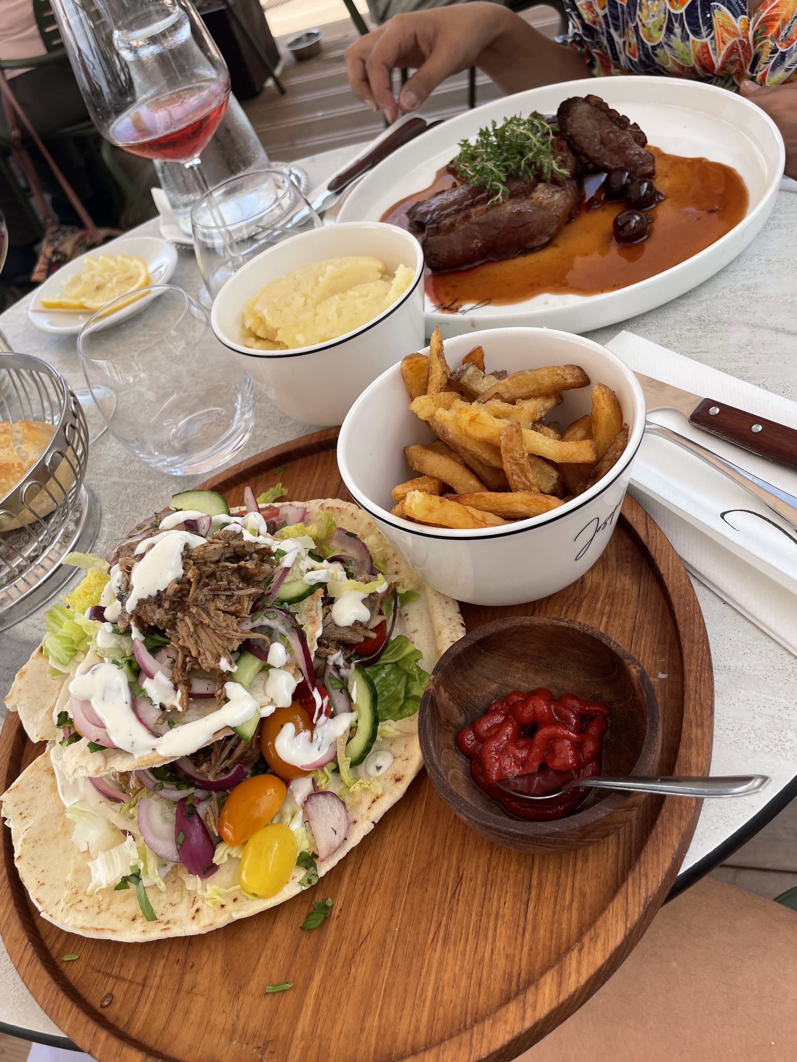 Nous avons eu de la chance d’être sur la terrasse vue superbe sur la mer et l’aéroport. Les assiettes sont bien servies sans plus