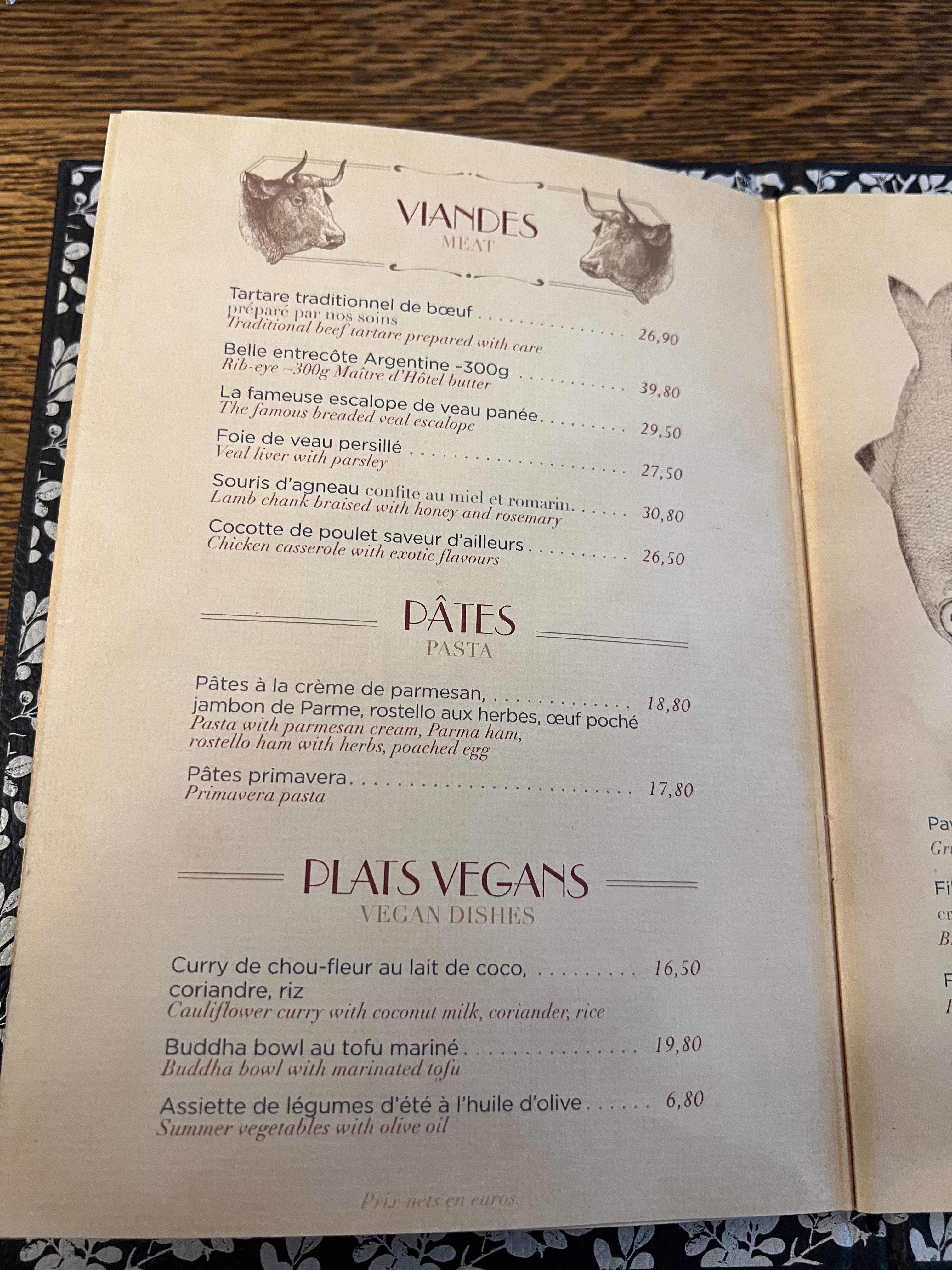 Bonne expérience dans ce restaurant aux allures de bistrot parisien magnifique. Les plats sont bons, et bien que nous ayons été délaissés par le service après avoir terminé notre plat, l'un des serveur à rattrapé le coup en s'occupant de nous comme il faut et en nous offrant le café pour pardonner cela. C'est commerçant et appréciable. Je recommande !
