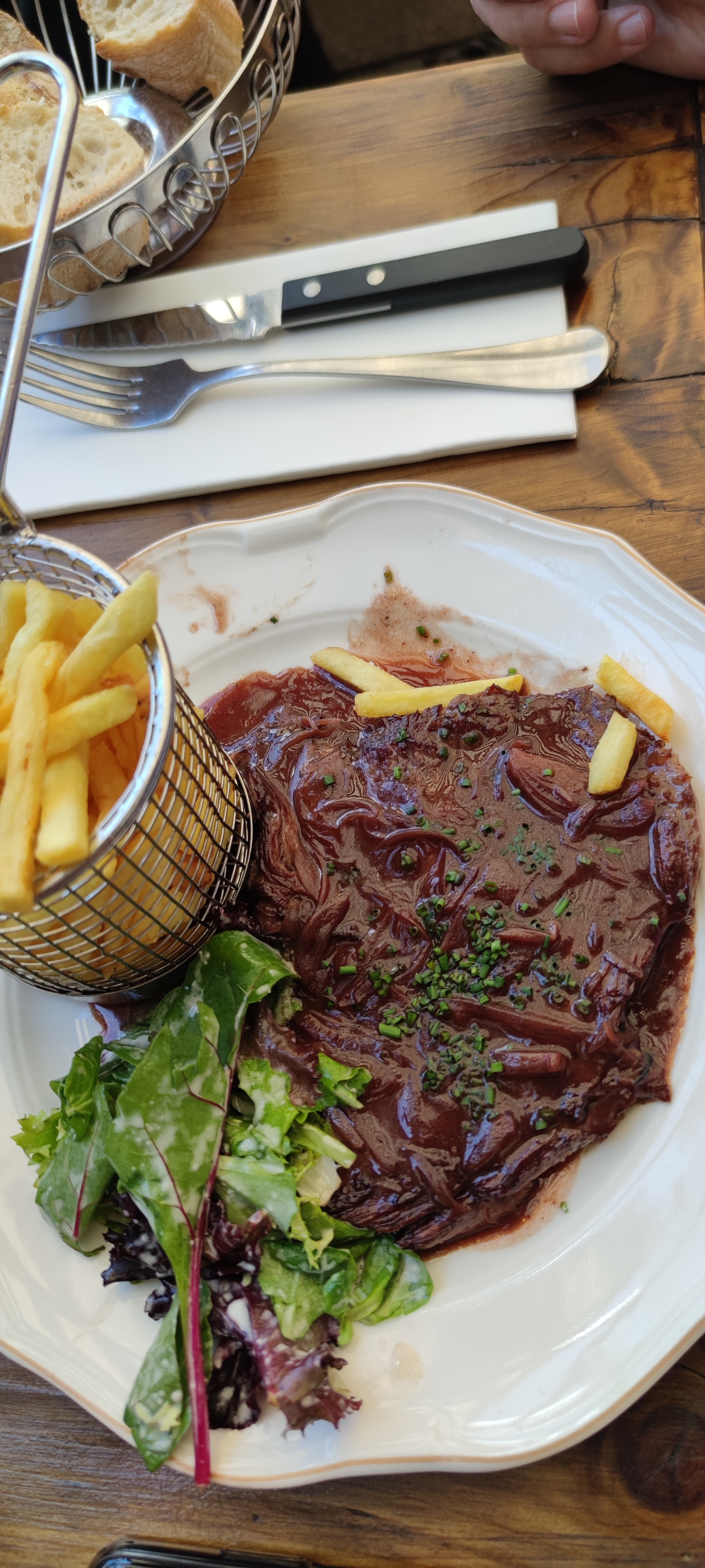 Eh bien, j'ai des sentiments très mitigés. Le service était très bon, j'ai aussi apprécié la fondue. Mais le reste, comme les salades au thon, etc., n'était pas bon du tout. Habituellement, lorsque vous êtes en France, les restaurants sont de très haute qualité, mais celui-ci ne correspond pas à ce que l'on attend habituellement de la France. Malheureusement...