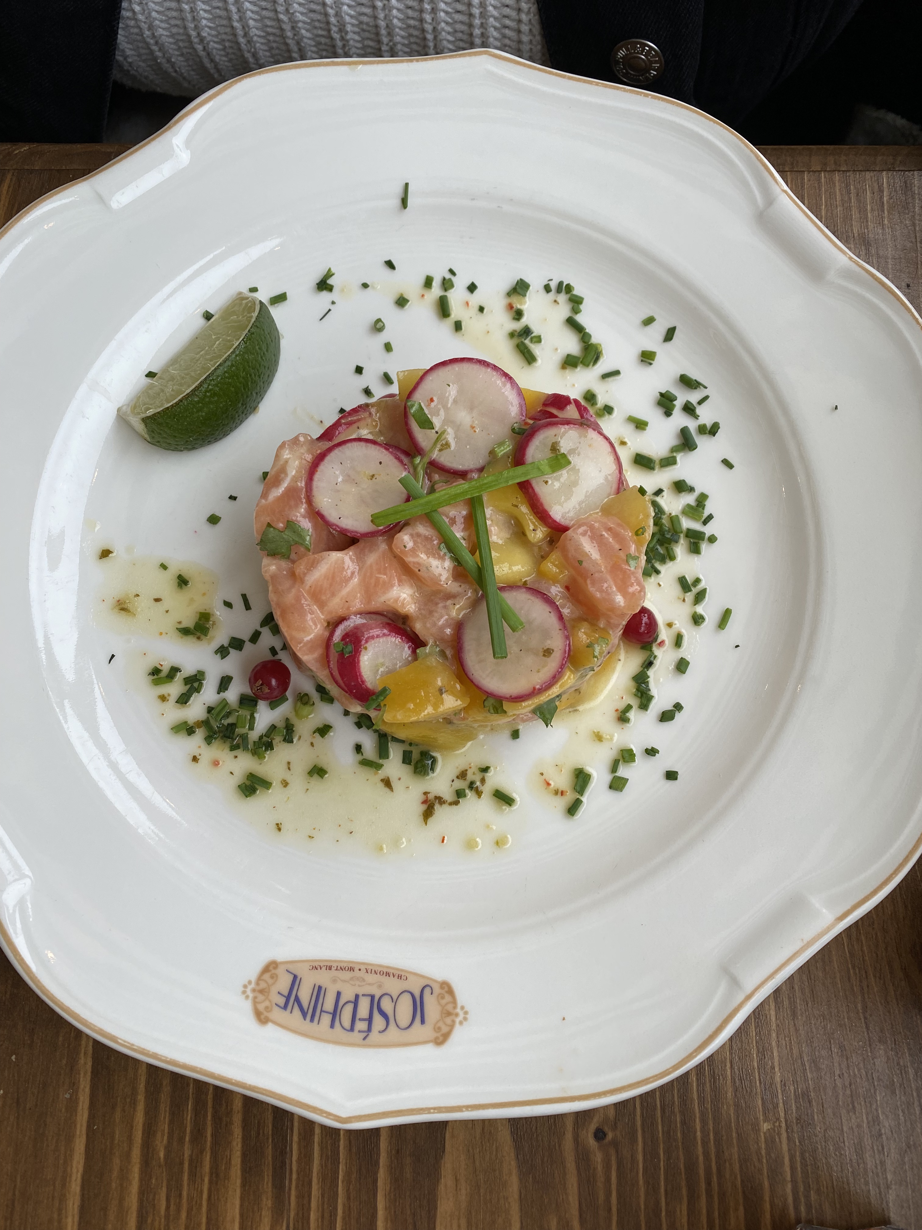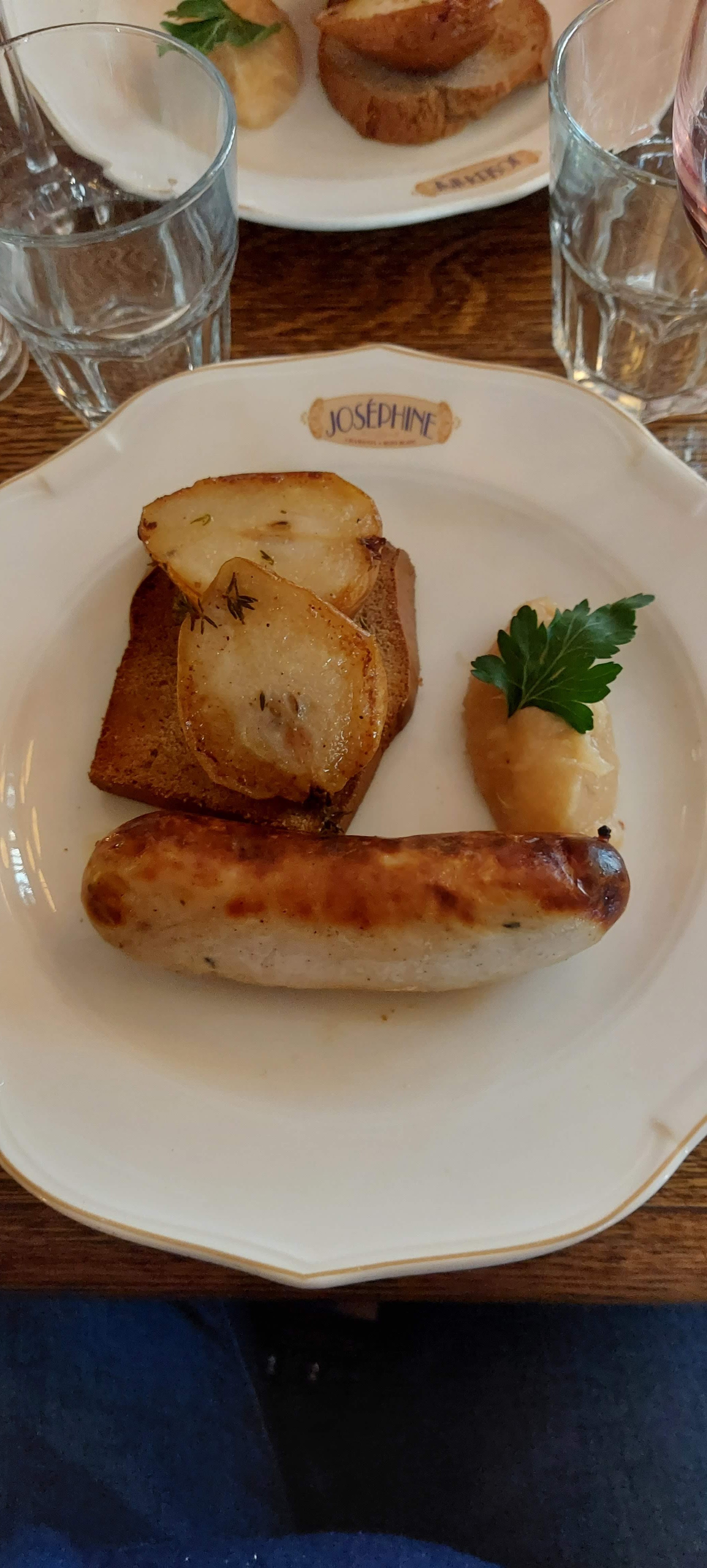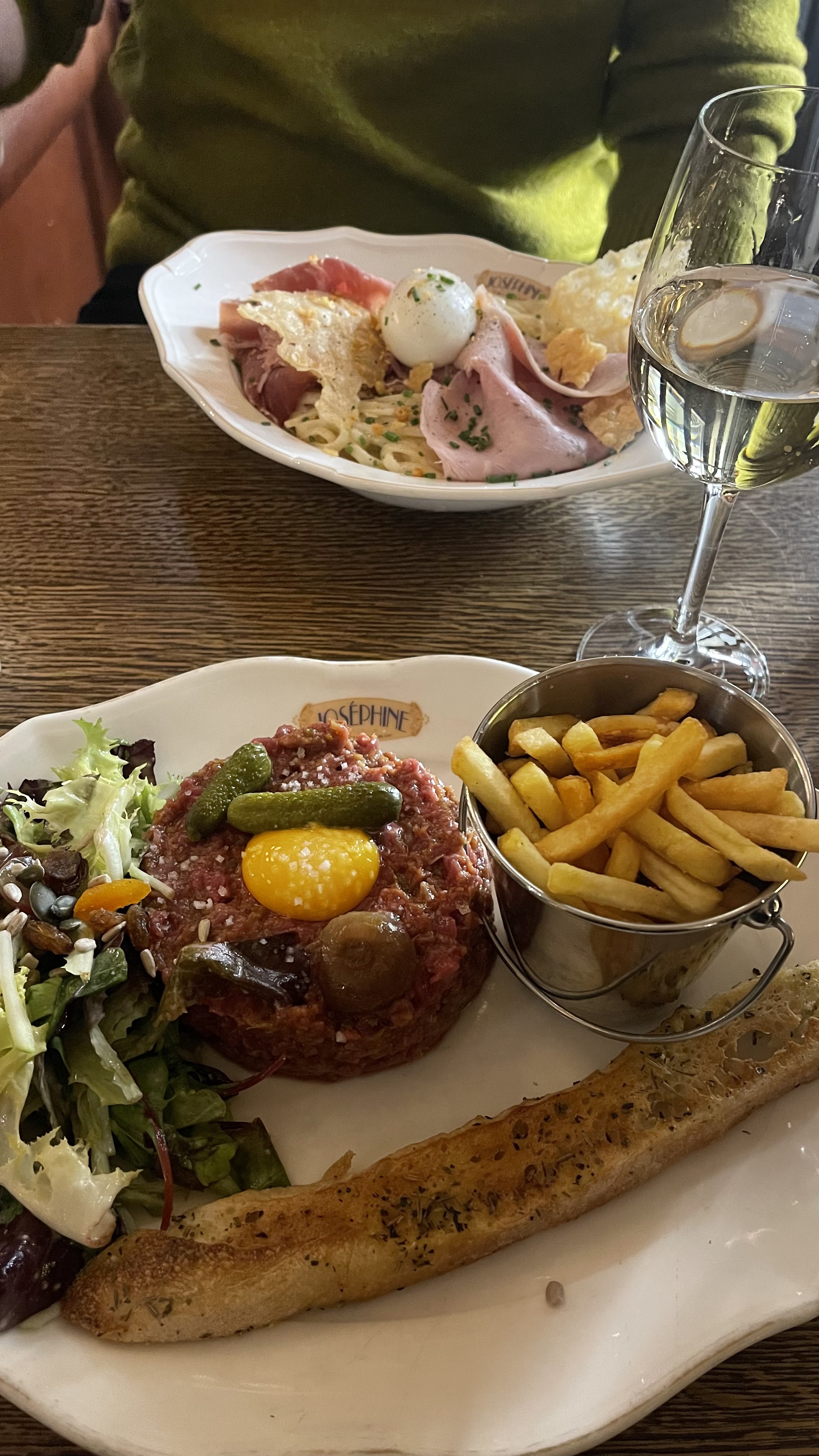 Super restaurant, assis rapidement à l'intérieur, nous avions nos enfants de 2 et 4 ans et avons commandé des menus pour enfants, certains limités mais suffisants. Notre serveur était Céline, une personne charmante et très professionnelle, elle s'assurait que nos enfants soient servis pronto et recevaient leur nourriture rapidement pour qu'ils mangent en premier. Notre nourriture était très savoureuse, la tartiflette au reblochon exceptionnelle, tout comme le parmantier aux champignons. J'ai adoré la porcelaine dans laquelle notre nourriture était servie, Villeroy & Bauch, chère et très à propos pour cette brasserie. Je suis chef et je connais la cuisine, Joséphine est un restaurant dans lequel je reviendrais encore et encore, merci Céline d'être si authentique et amusante avec nos enfants.