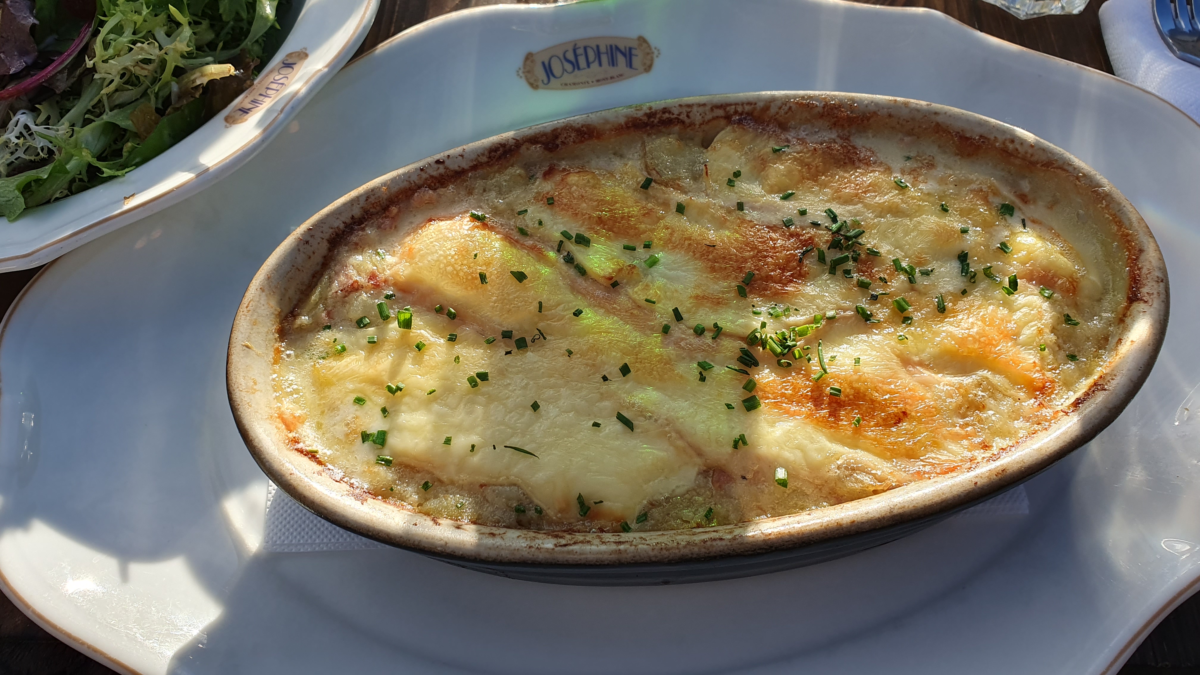 Tout d'abord, je veux juste recommander le service de cet endroit ! Nous sommes venus avec 3 chiens et le serveur a été très gentil avec eux, leur a même offert un bol de serveur et nous a fait asseoir immédiatement. La nourriture n'avait rien de spécial. J'ai eu une Potée Savoyarde et mon mari une Tartiflette. Je n'avais pas beaucoup de ragoût car il n'y avait pas beaucoup de bouillon et j'avais l'impression que la viande était un peu insuffisamment cuite et difficile à mâcher. J'ai dû manger uniquement des pommes de terre, des légumes et un peu de saucisses. Dans l’ensemble, c’était juste une bonne expérience. Peut-être que j'attendais un peu plus d'un restaurant qui s'est fait un nom. Grâce au service, j’ai néanmoins pu regarder en arrière et apprécier mon expérience.