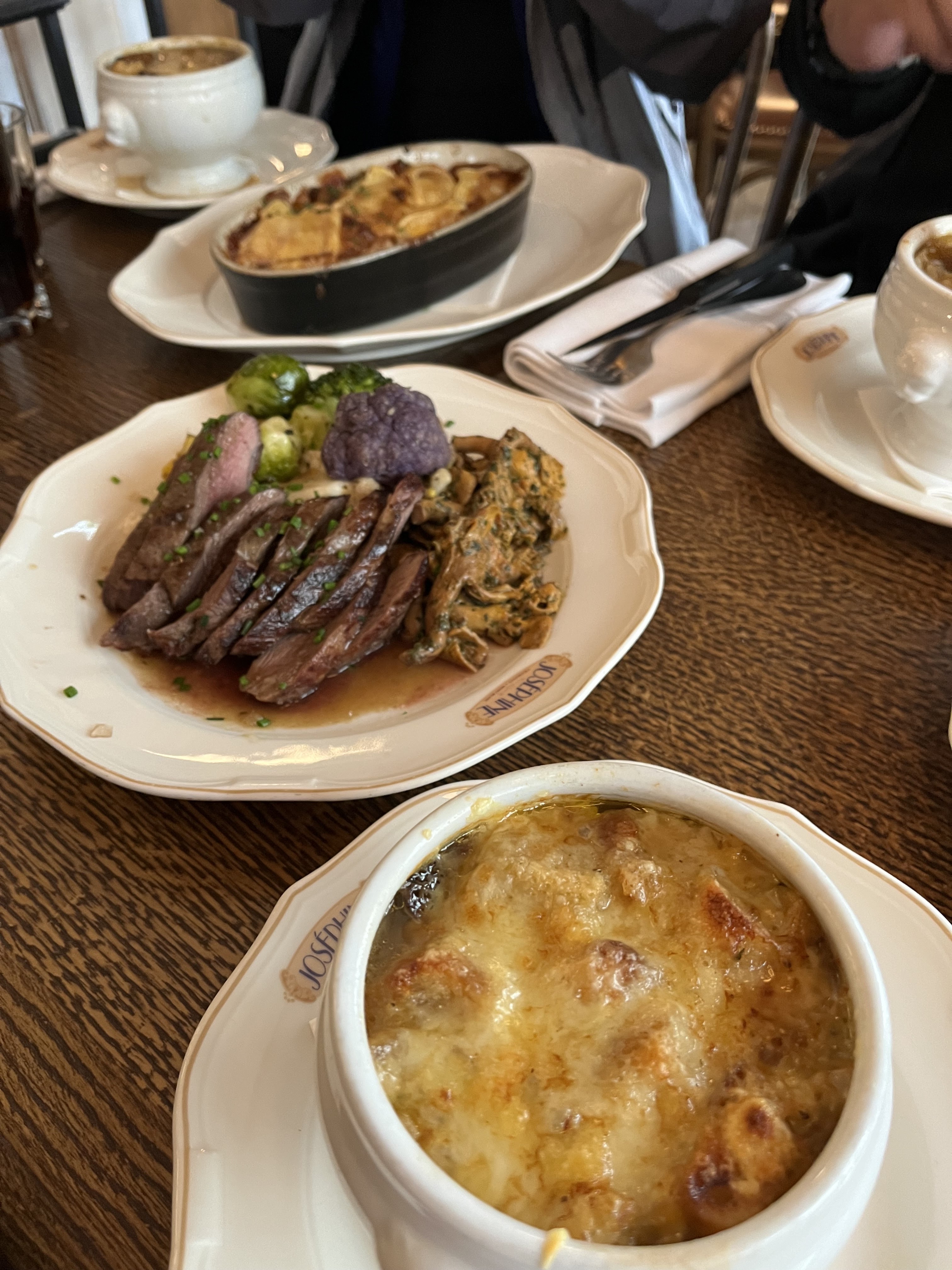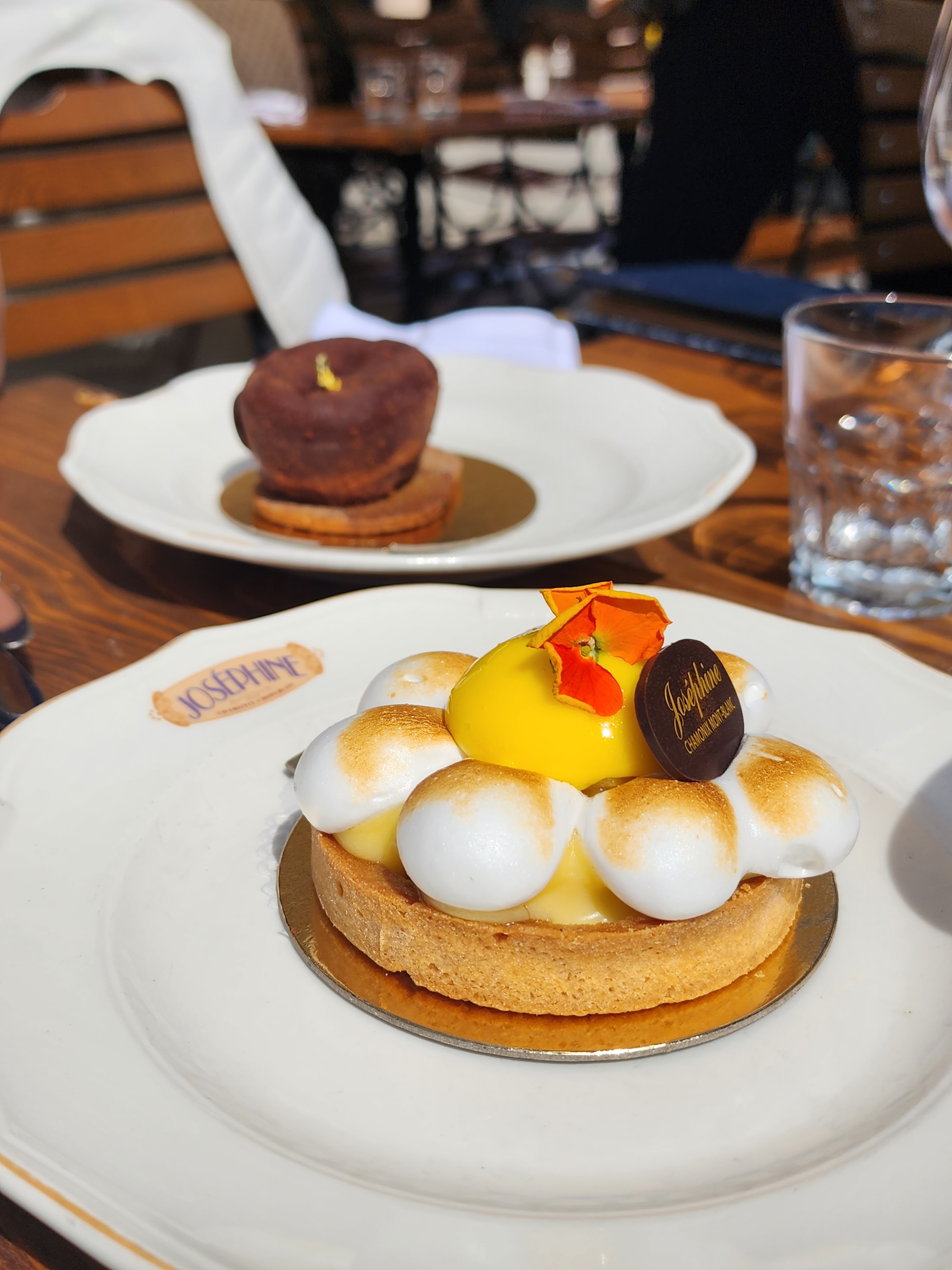 Nous avons pris un bon déjeuner chez Joséphine. Ils ont pu installer une table à l'extérieur par une journée ensoleillée sans réservation, ce qui était génial. La soupe à l'oignon était l'une des meilleures que j'ai jamais mangées, un incontournable ! Nous avons également eu la fondue que je ne recommanderais pas de manger dehors car la chaleur ne permettait pas de maintenir le fromage à la bonne consistance. Les desserts terminaient en beauté le repas. J'aimerais revenir pour essayer davantage d'options sur le très grand menu.