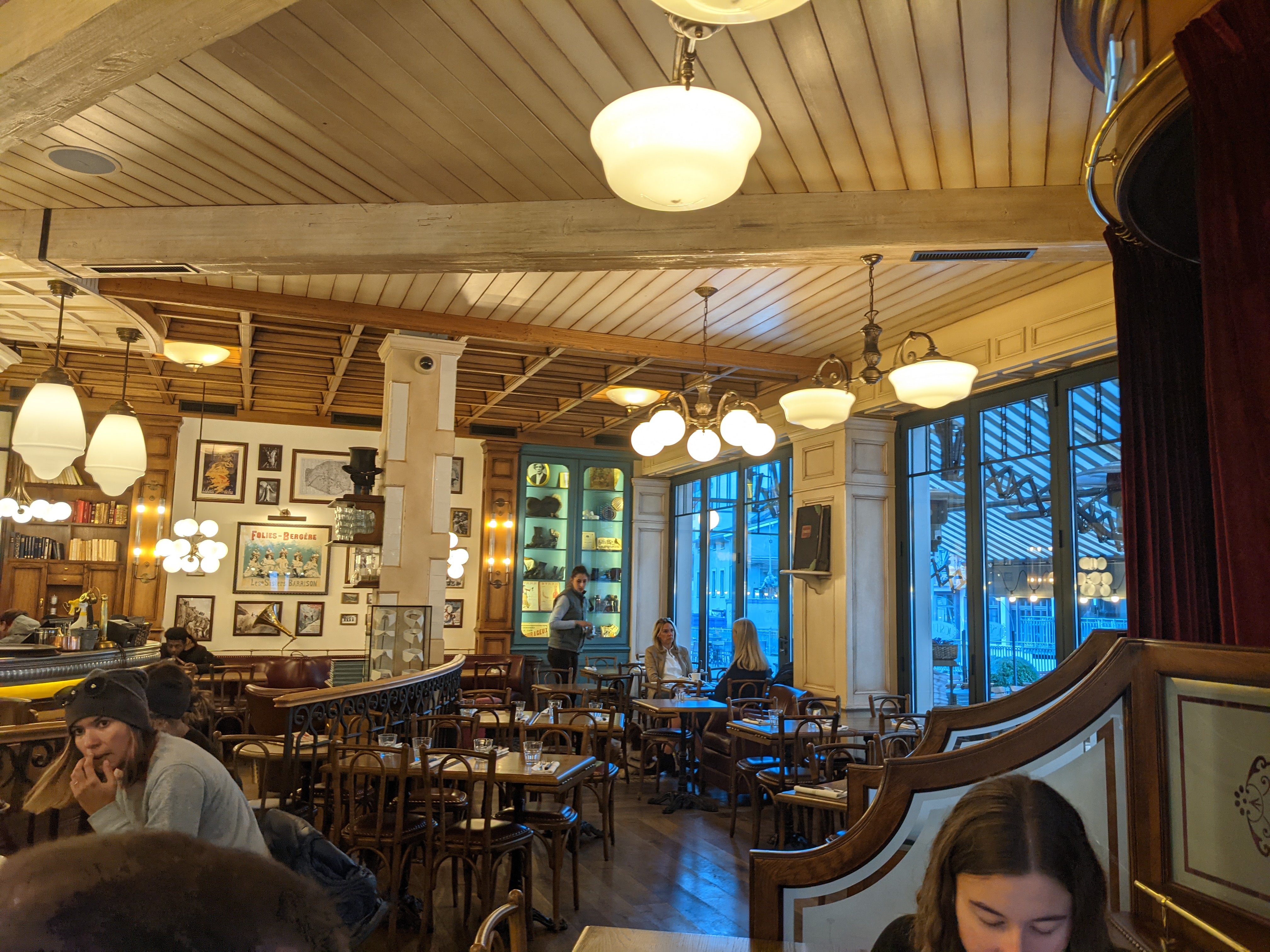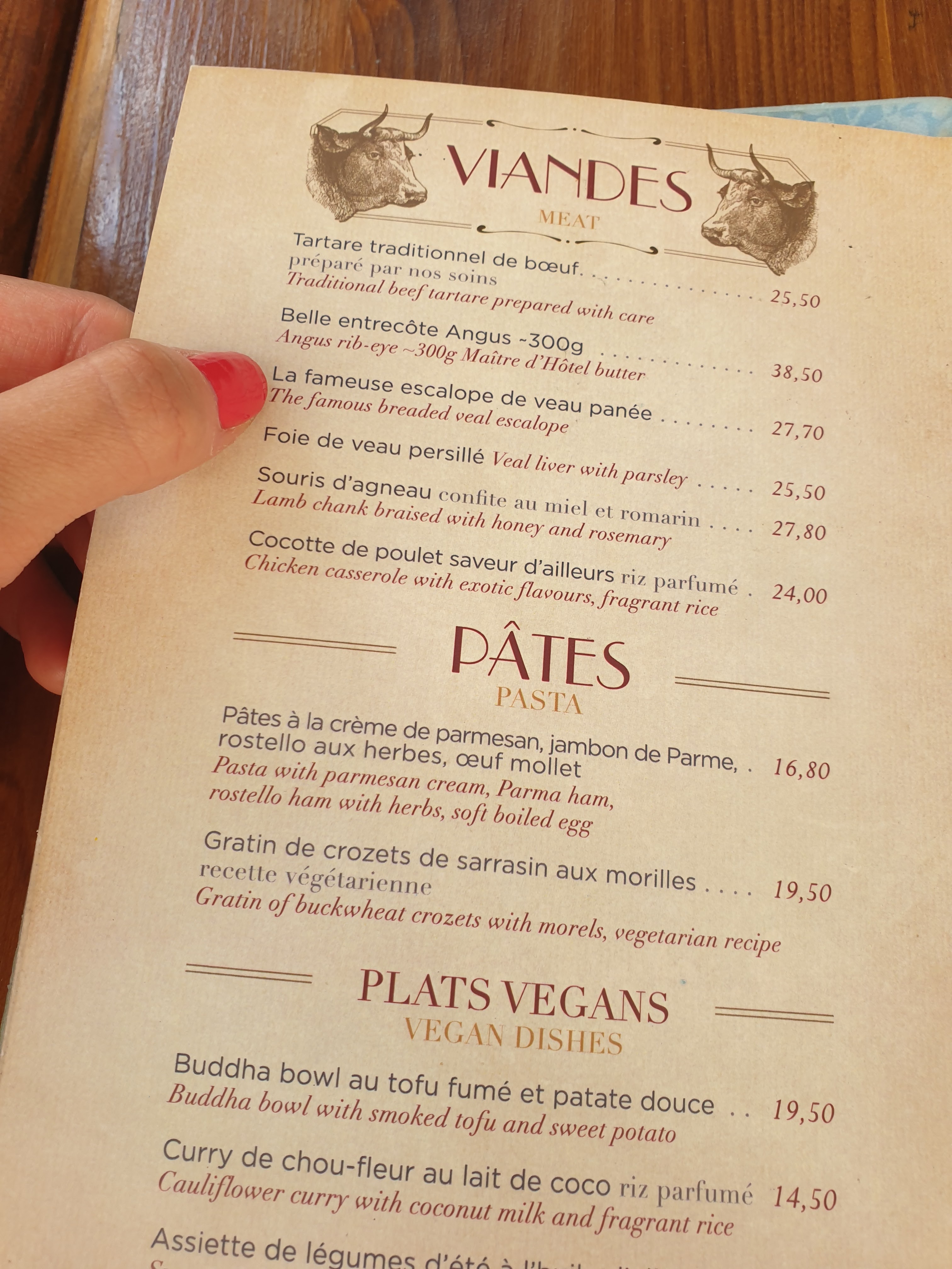 Bonne nourriture, service et à un prix correct. Nous étions cinq et on nous a donné un canapé rond et une table. Le décor est idyllique avec une ambiance parisienne rétro authentique. J'ai eu une soupe à l'oignon et au fromage à tomber par terre et une escalope de veau grosse comme mon visage avec une salade verte. Après notre repas, le large choix d'apéritif m'a sûrement aidé à tout digérer. À notre grande surprise, le menu pour enfants contient des portions probablement aussi grandes que les portions habituelles, donc cela en vaut la peine si vos enfants sont de gros mangeurs. Le prix n'est pas vraiment bon marché, mais étant donné que la région est touristique et compte tenu de la stature de l'endroit, cela vaut largement son prix.