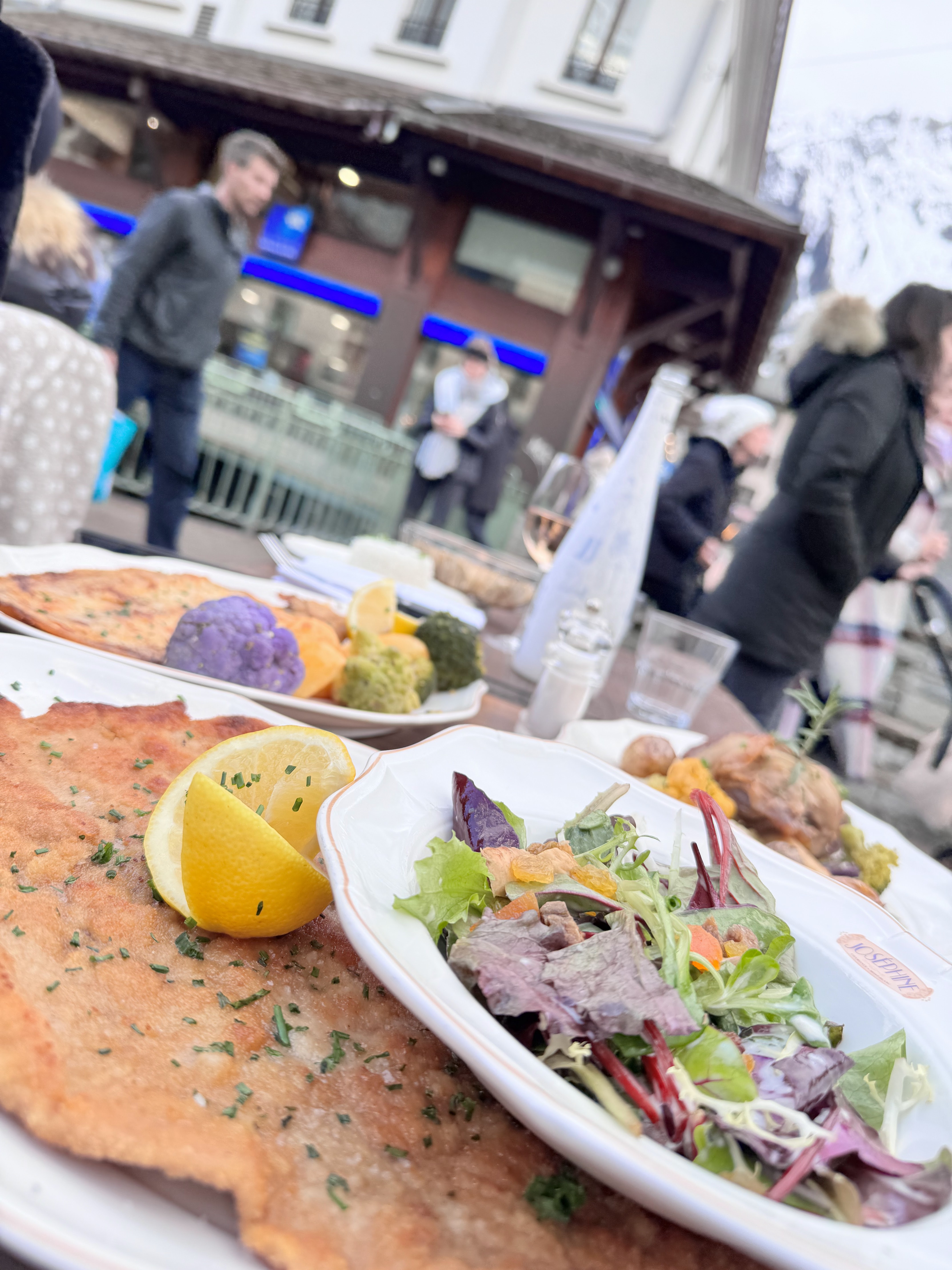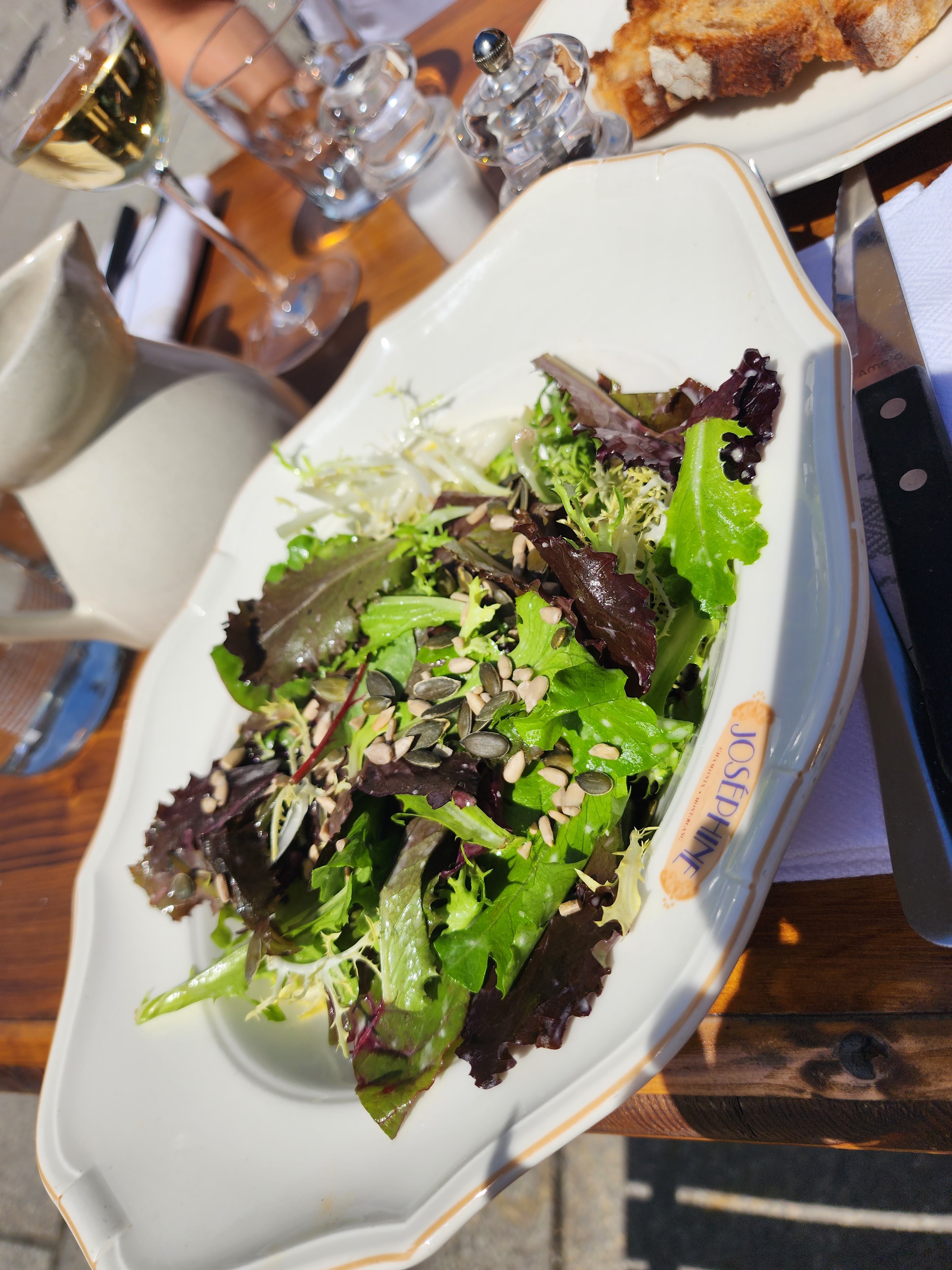 C'est un endroit rustique et confortable dans cette petite ville. Il ouvre même après 17 heures. La plupart des endroits ici ferment à 17 heures et rouvrent à 7 heures. Très bien chauffé et le service est bon. Le personnel parle français et anglais. Les prix sont bons pour la qualité de la nourriture et l'emplacement. Les portions de repas sont bonnes pour une personne ou 2. Nous avons commandé: Salade verte Soupe à la citrouille Escalope de veau panée (j'ai ramené le reste à la maison, et c'était délicieux même froid 👌)