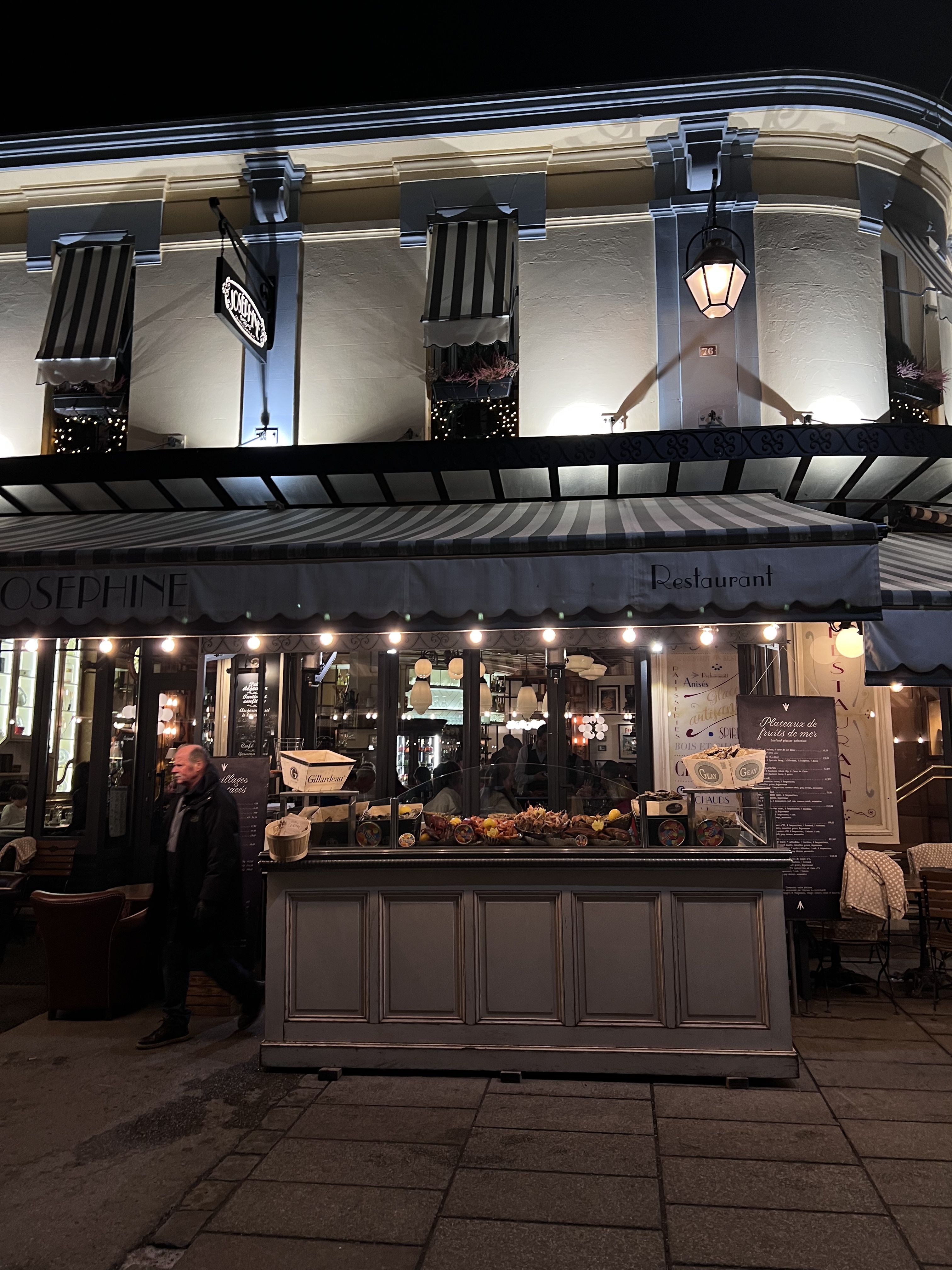 J'étais ici et j'ai déjeuné avec ma famille dans l'après-midi. Un service incroyable, de la nourriture et une atmosphère classique franco-parisienne. Joséphine est l'un des rares restaurants à avoir du soleil sur sa terrasse toute la journée. J'ai eu l'escalope de Veu, je le recommande vraiment si vous avez faim. Dans l’ensemble Joséphine est un restaurant très cosy et bon.
