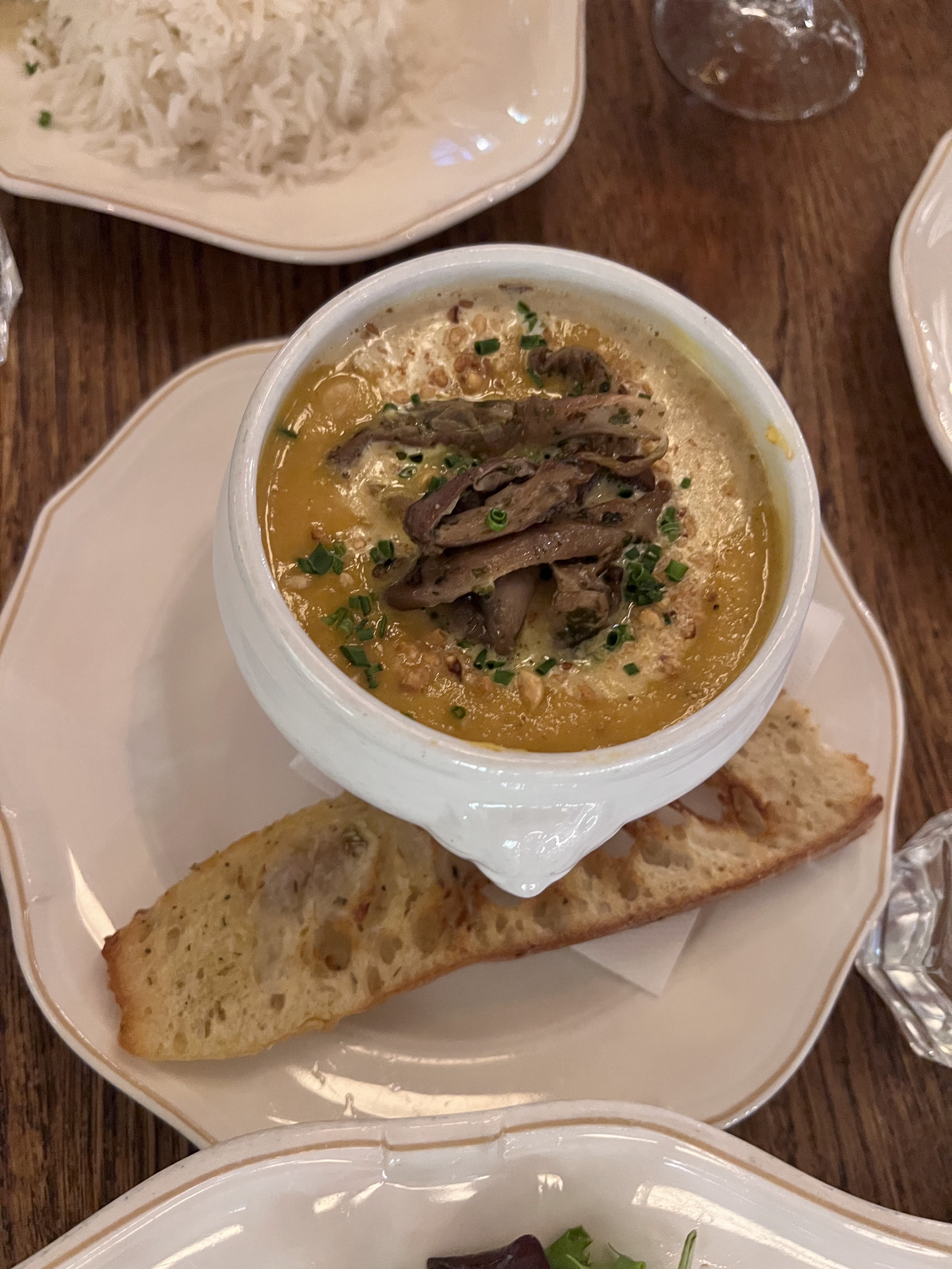Nourriture délicieuse! ❤️ un peu lent car très occupé mais j'ai vraiment apprécié tous les plats, en particulier la soupe crémeuse Pumking.