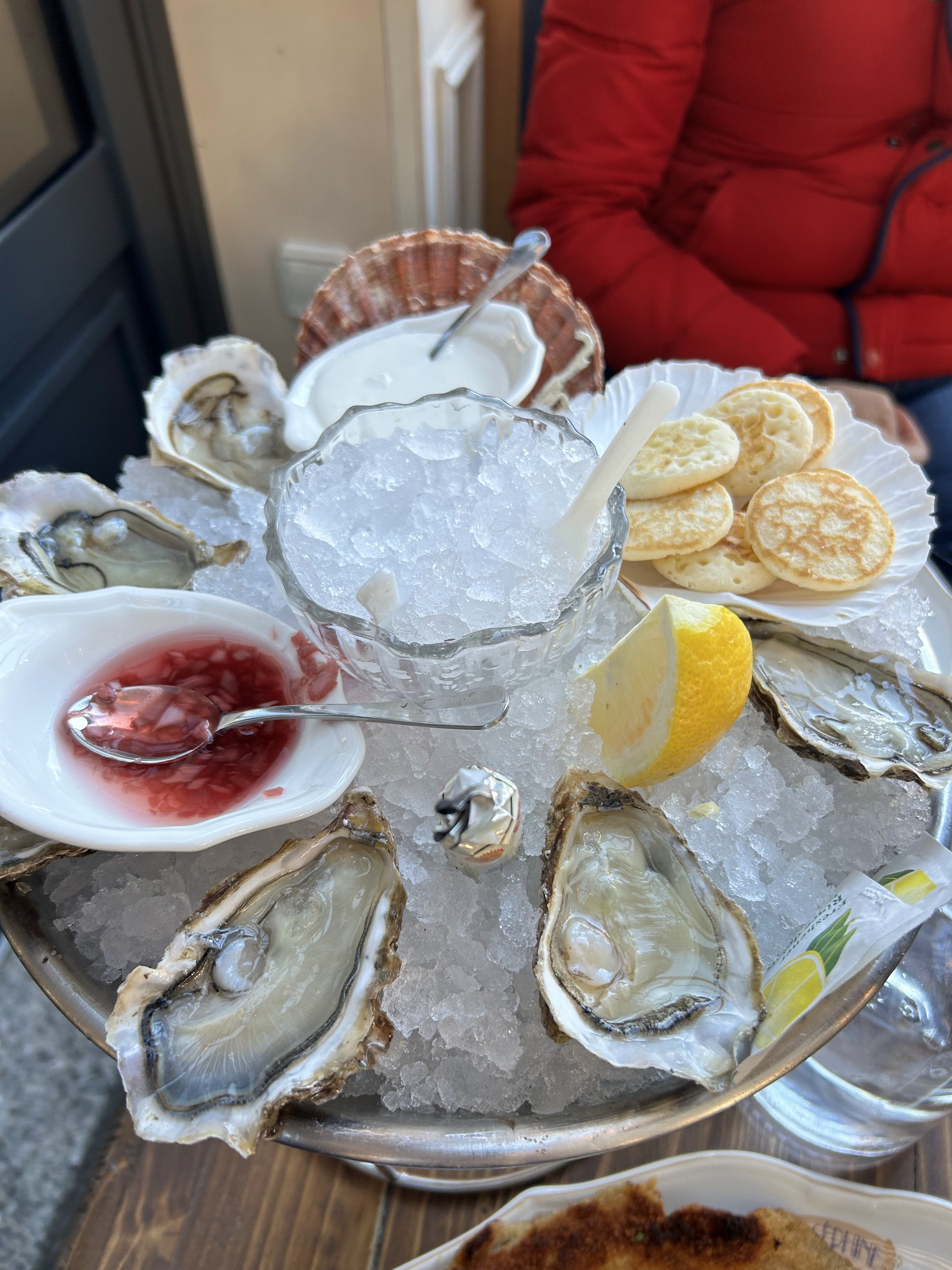 Je vous recommande vivement de venir ici pour une bouchée rapide/une pause thé/café ! Mais j'imagine qu'ils servent aussi la meilleure nourriture pour les autres repas. Le dessert ici était incroyable !! De plus, pour les amateurs d'huîtres, ils proposent une collection complète d'huîtres de saison. Le personnel était super sympa, même s'il était occupé avec tant de clients, mais chaque fois que vous leur demandiez quelque chose, ils étaient très patients et sympathiques.