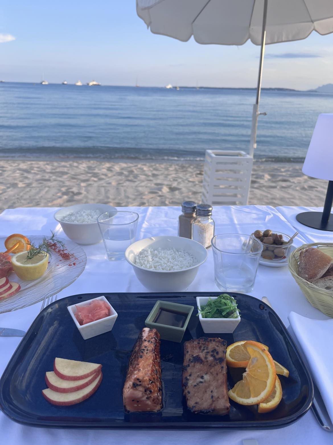 Déjeuner pour midi très agréable les pieds dans le sable.