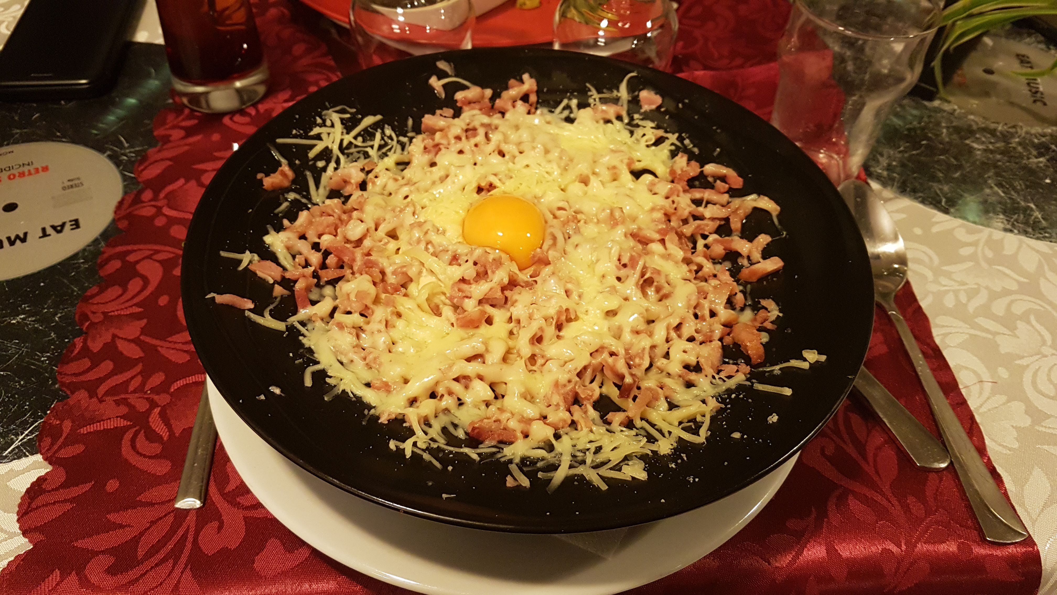 Pâtes carbo pour mon fils👍 tartare et carpaccio excellents. Serveuse agréable !