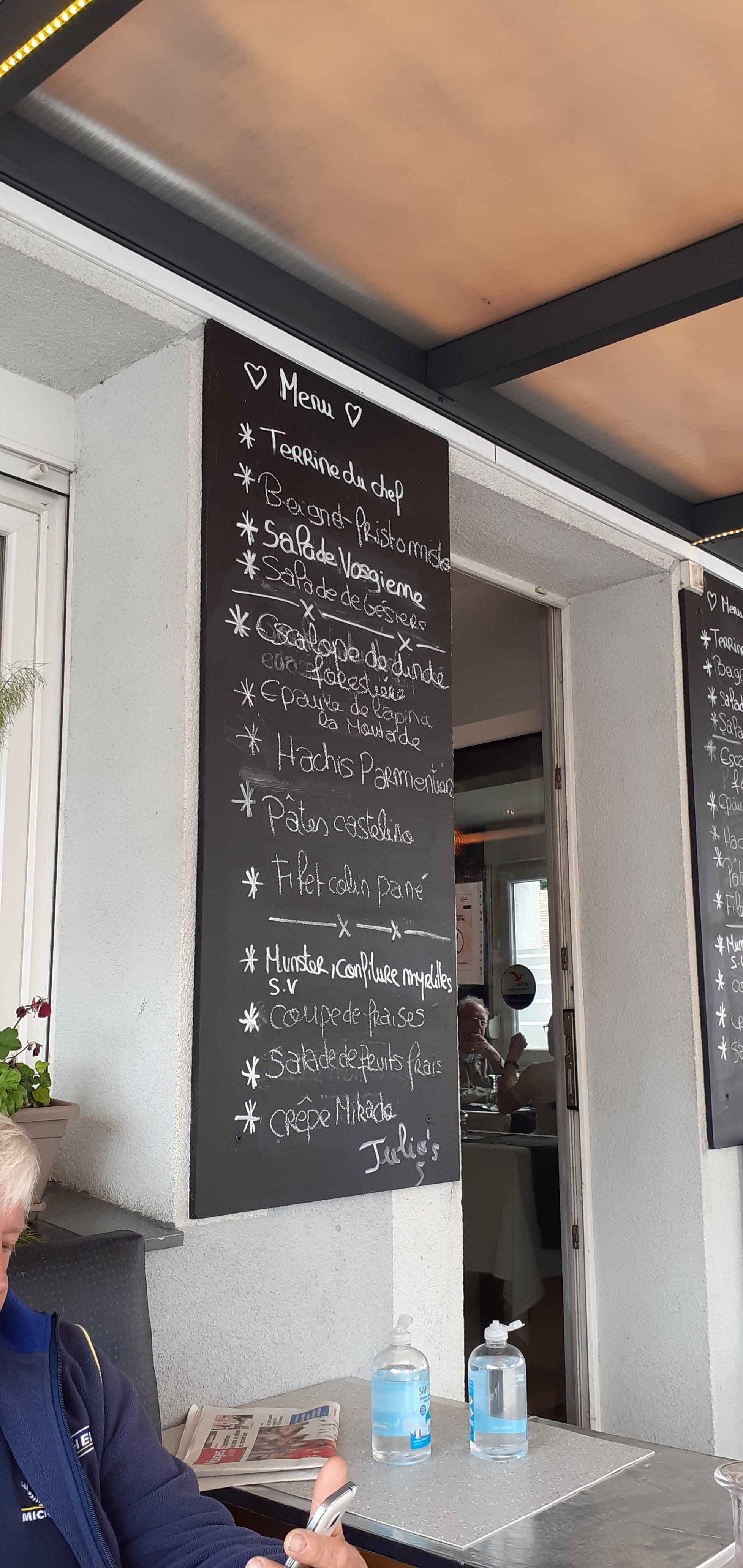Quel bonheur ! Repas excellent, peut-être que je l'aurais un peu plus épicé. Le pinot noir en pichet, un vrai délice. La vraie cuisine de maman apporté par une serveuse attentive et très belle, malheureusement cachée par le masque, le seul regret de mon mari.