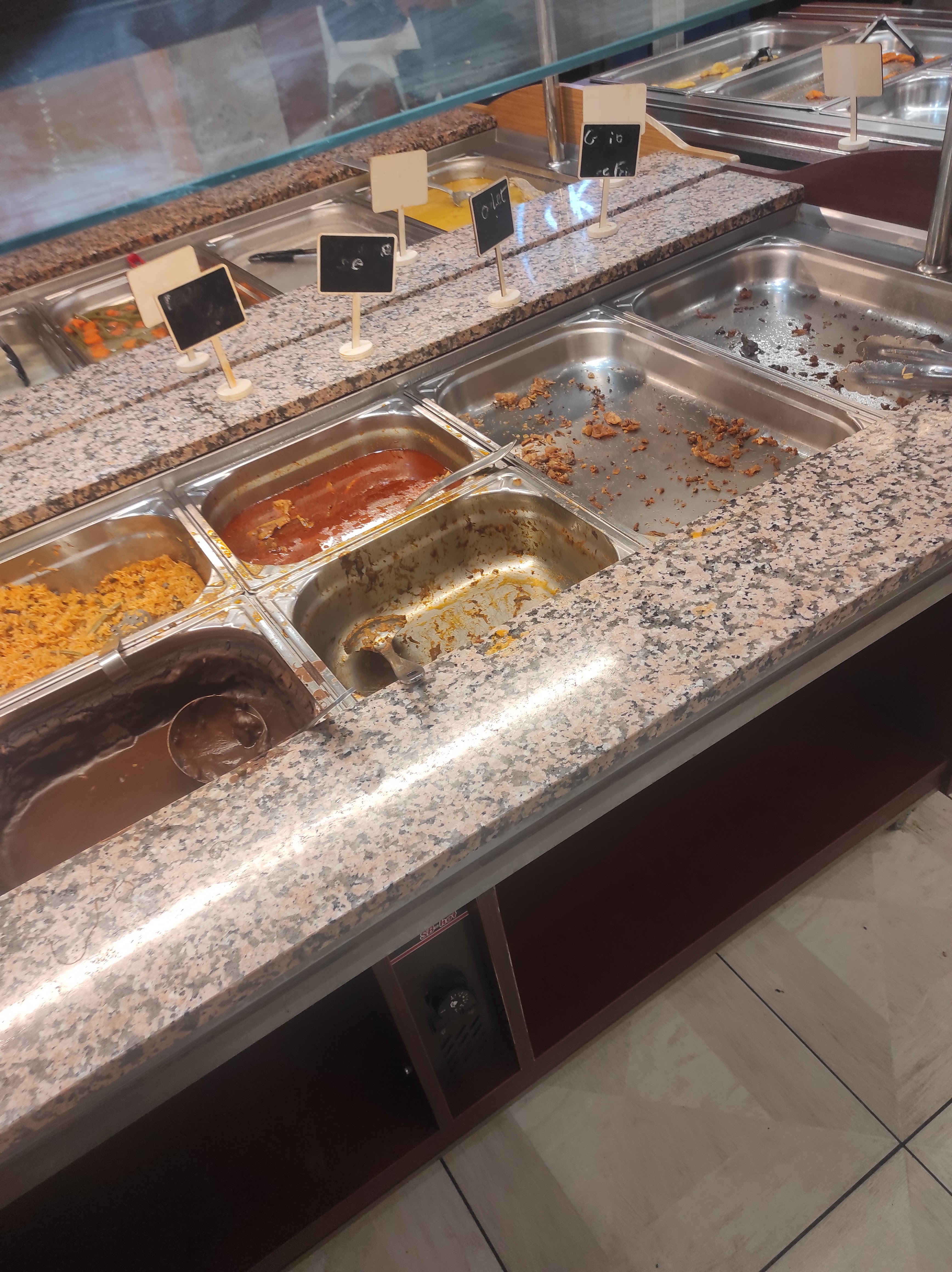 Venue au service du soir! Prix abordable! Bonne nourriture! Les bacs ne sont pas remplis à ras bord afin d'être réapprovisionné régulièrement! Personnel respectueux et wc propre!