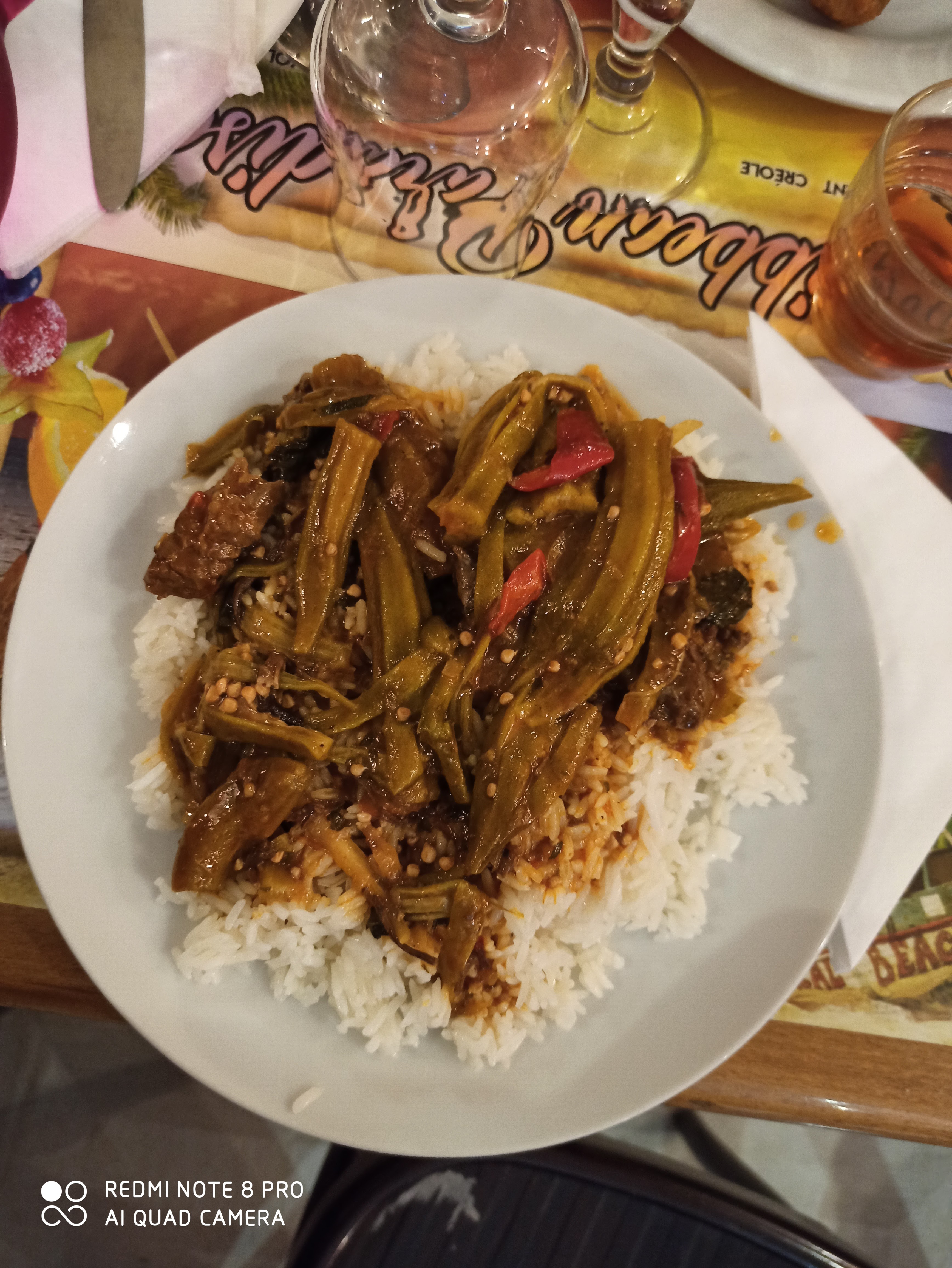 Trop chouette. Nourriture excellente, typique créole. Il y avait des ignames et du vrai poisson en blaff. Waaaaa ça déchire. Je me suis sentie au pays. Les saveurs du soleil retrouvées. Miam. En plus repas à volonté.