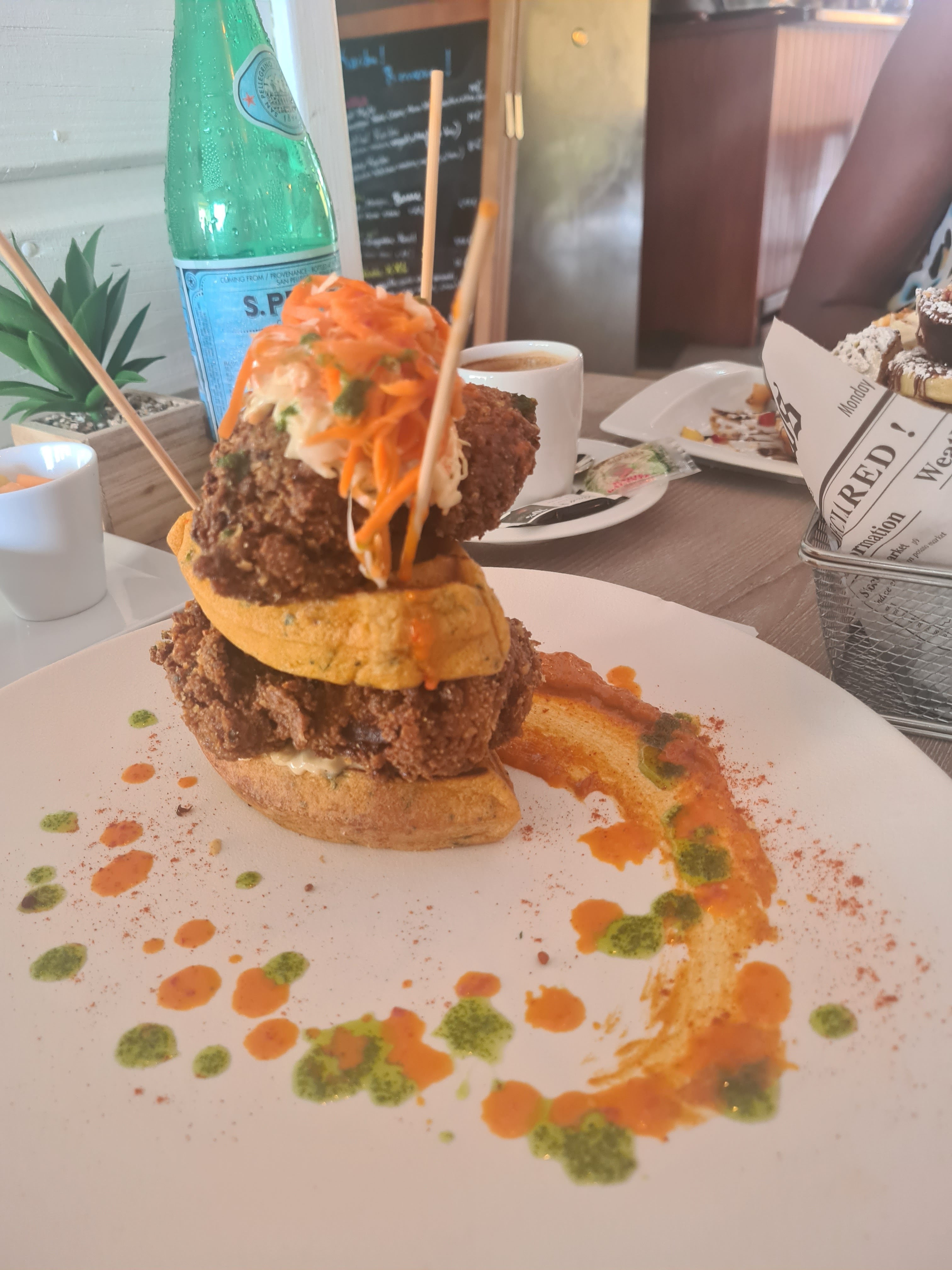 Superbe concept a la marina de saint françois nous avons pris moi et ma femme les tacos pork et les chicken waffle tout était excellent sans parler des smoothies et milkshakes incroyable je recommande c'est une adresse sur en guadeloupe et nous allons y retourner a chaque séjour !!!