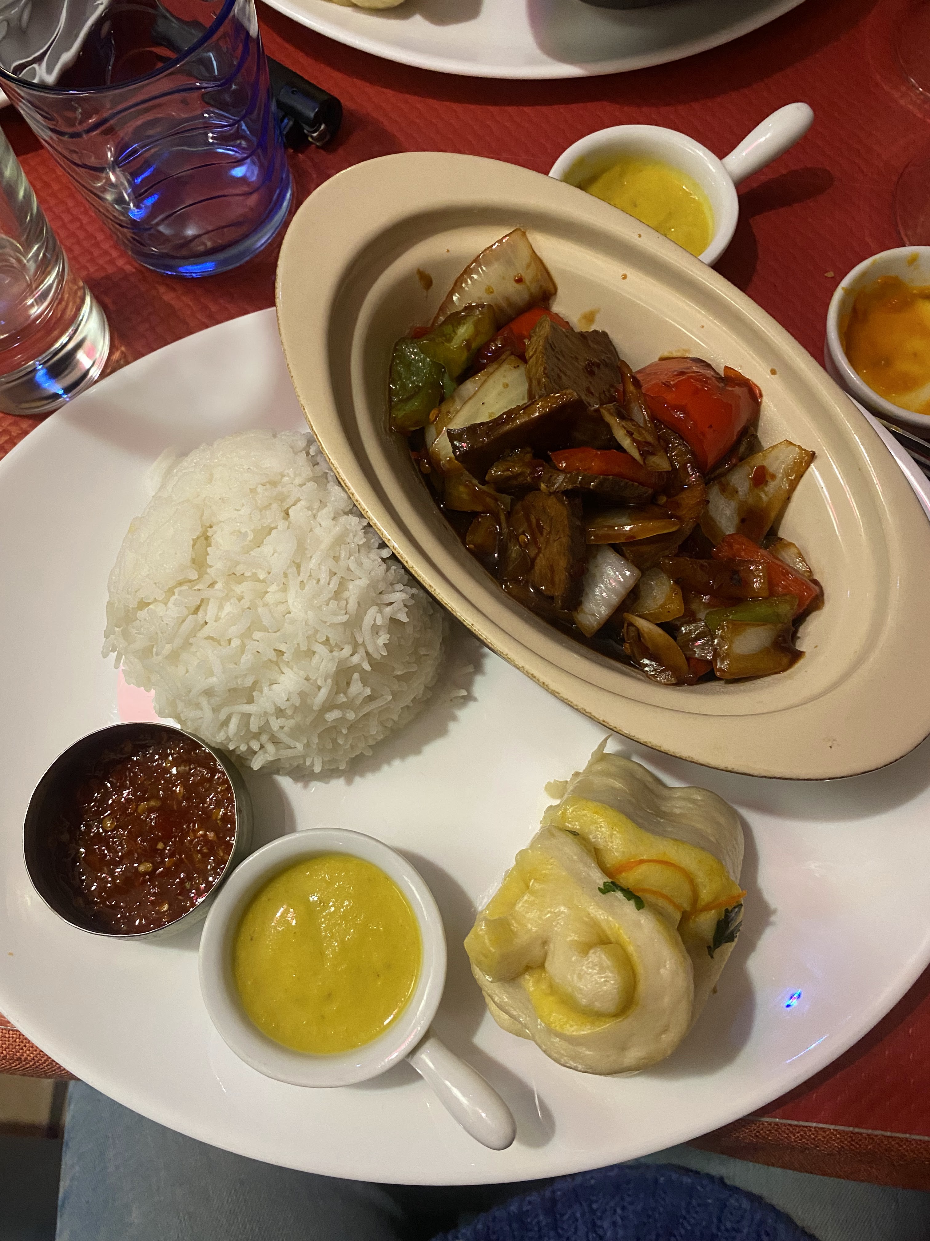On est plongé dans l'ambiance tibétaine des notre entrée : musique, drapeaux tibétains, décoration... La serveuse était très souriante et au petit soin avec nous. Les plats étaient délicieux, de l'entrée au dessert on a voyagé ! Bref une super adresse, j'y retournerai sans hésiter :)