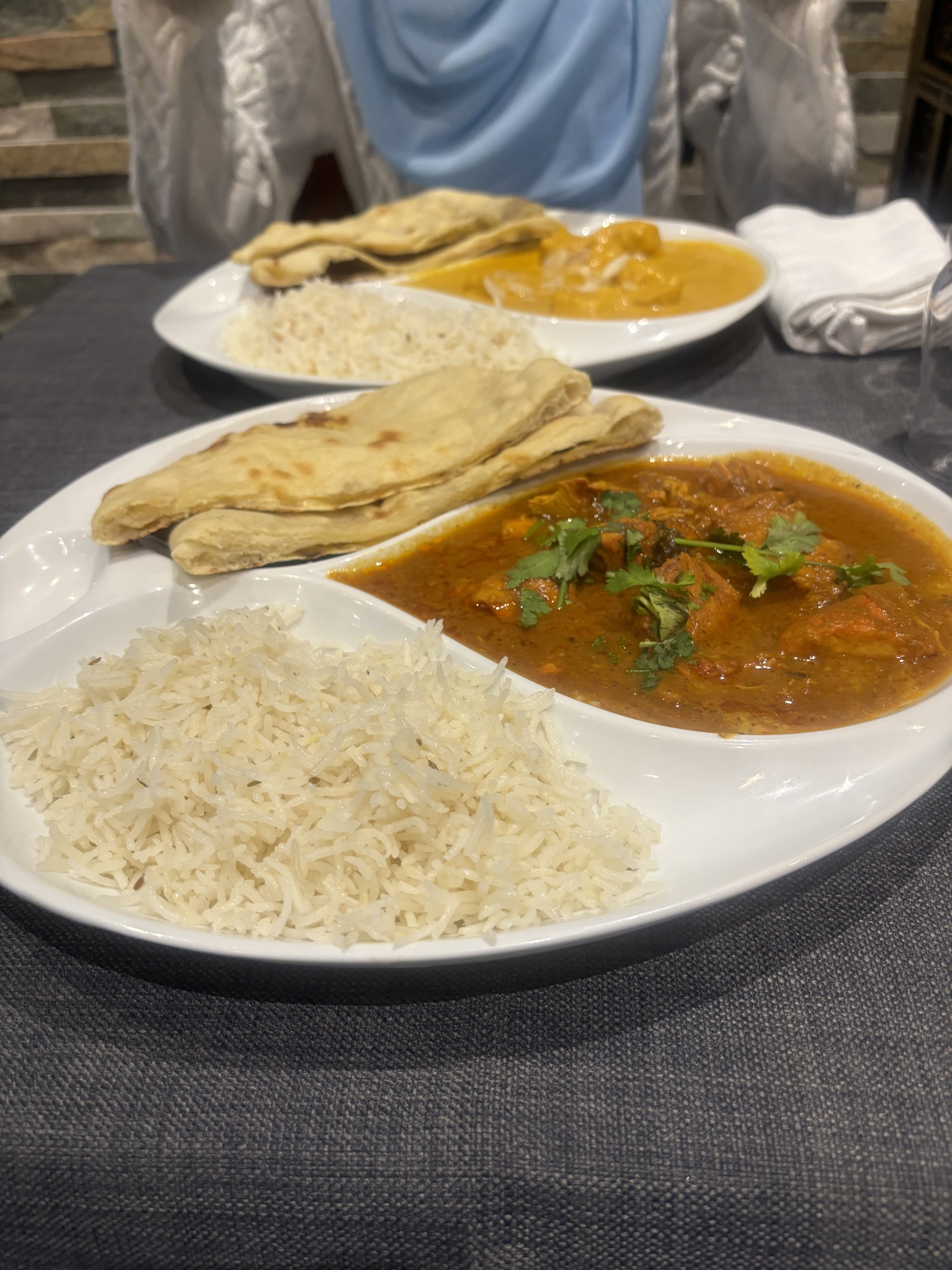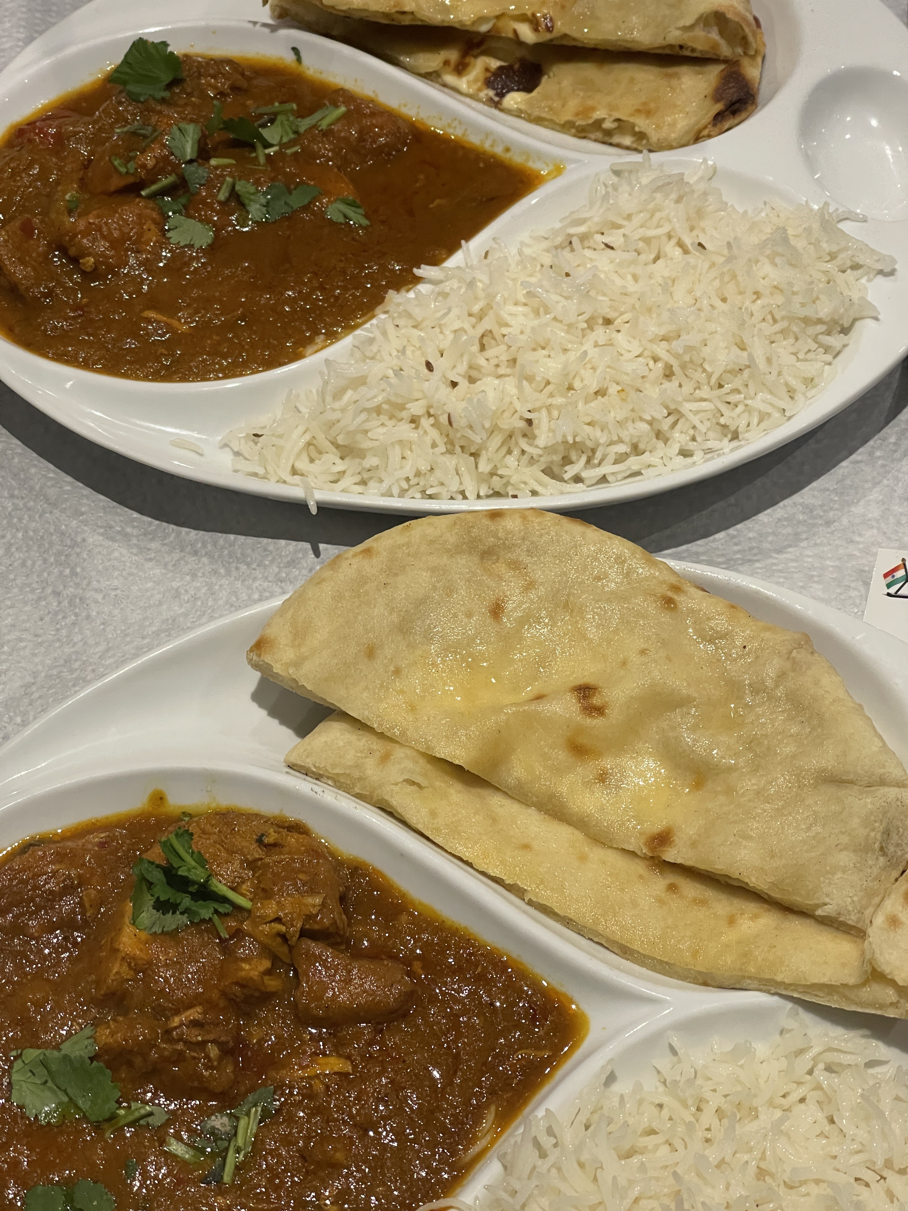 Le poulet du chiken butter est dur . Le naan était trop cuit . Crevette kadai Massala à la menthe sans goût de menthe .Erreur dans la commande pour les entrés mais rattrapé par la jeune serveuse sympathique. On ne reviendra pas ni ne recommande la gérante m'a expliqué qu'ils ne mettent que quelques feuilles de menthe et pour le poulet il est grillé avant donc non fondant