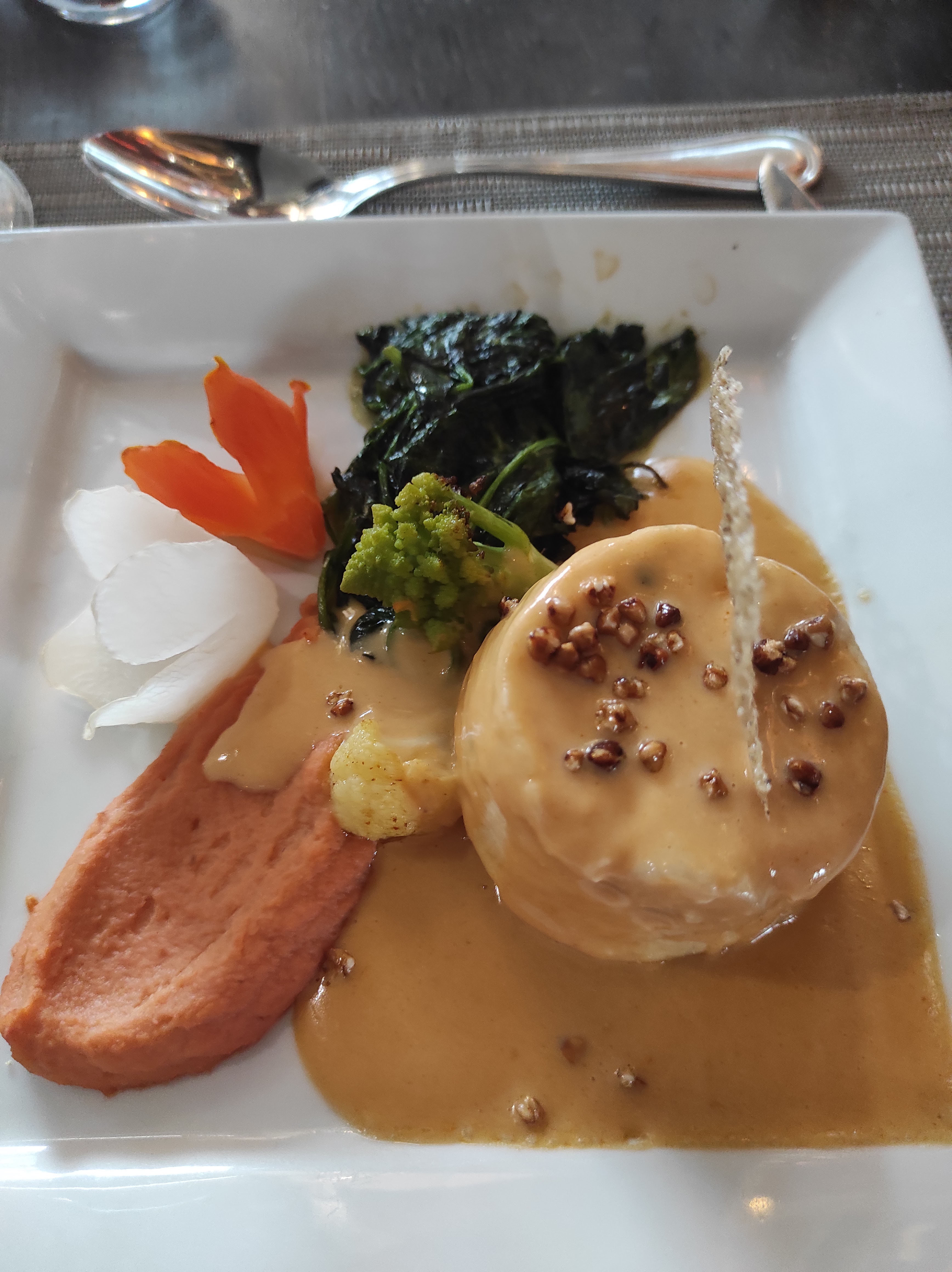 Menu excellent du début à la fin, belle présentation le poisson cuit comme il faut et le personnel au petit soin.
