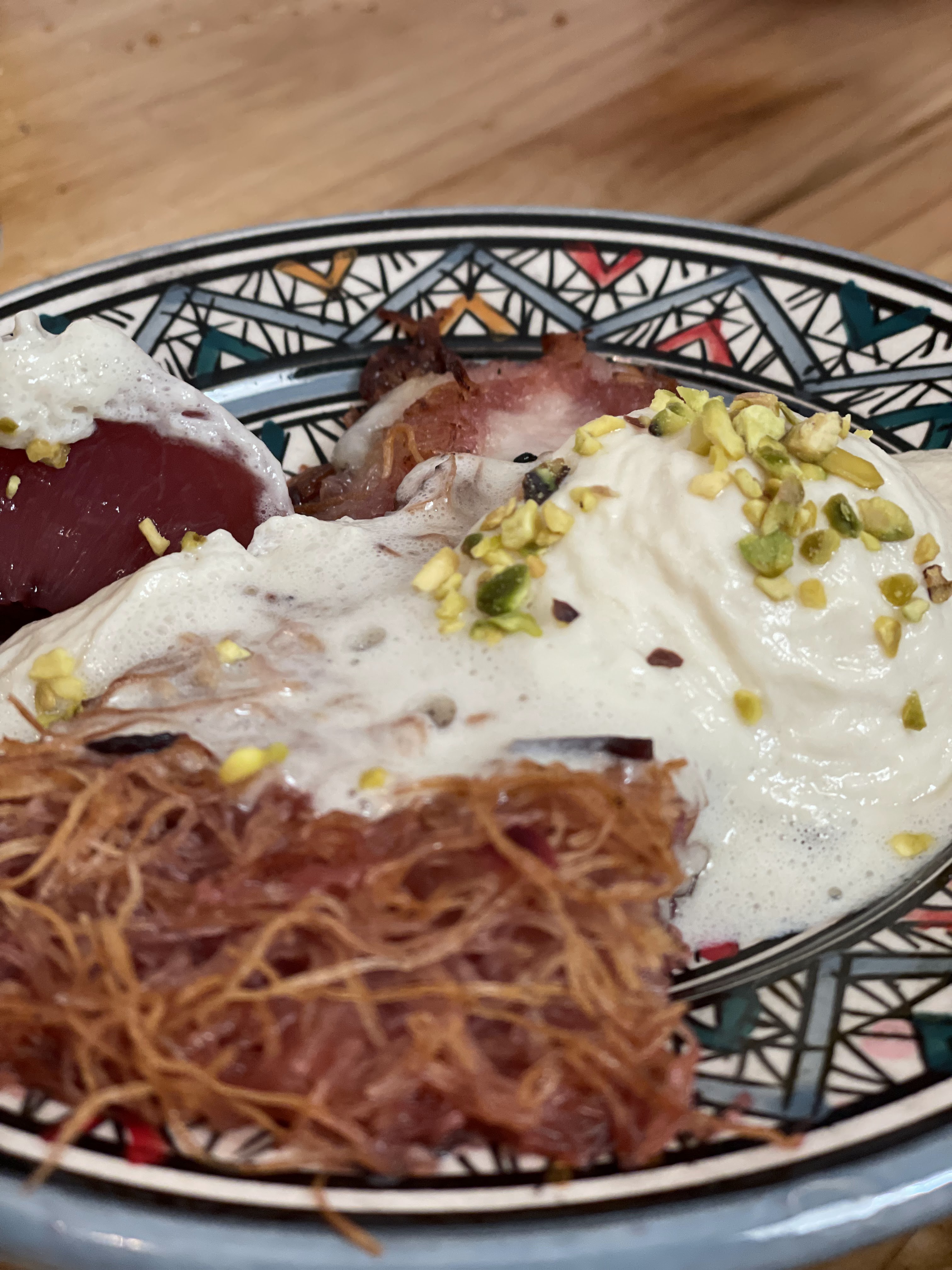 Originalité, des associations d’épices levantines incroyables, du début jusqu’à la fin que ce soit pour des messes,, des poissons des viandes ou des desserts. La formule 6 plats à 45€ le soir est époustouflante !