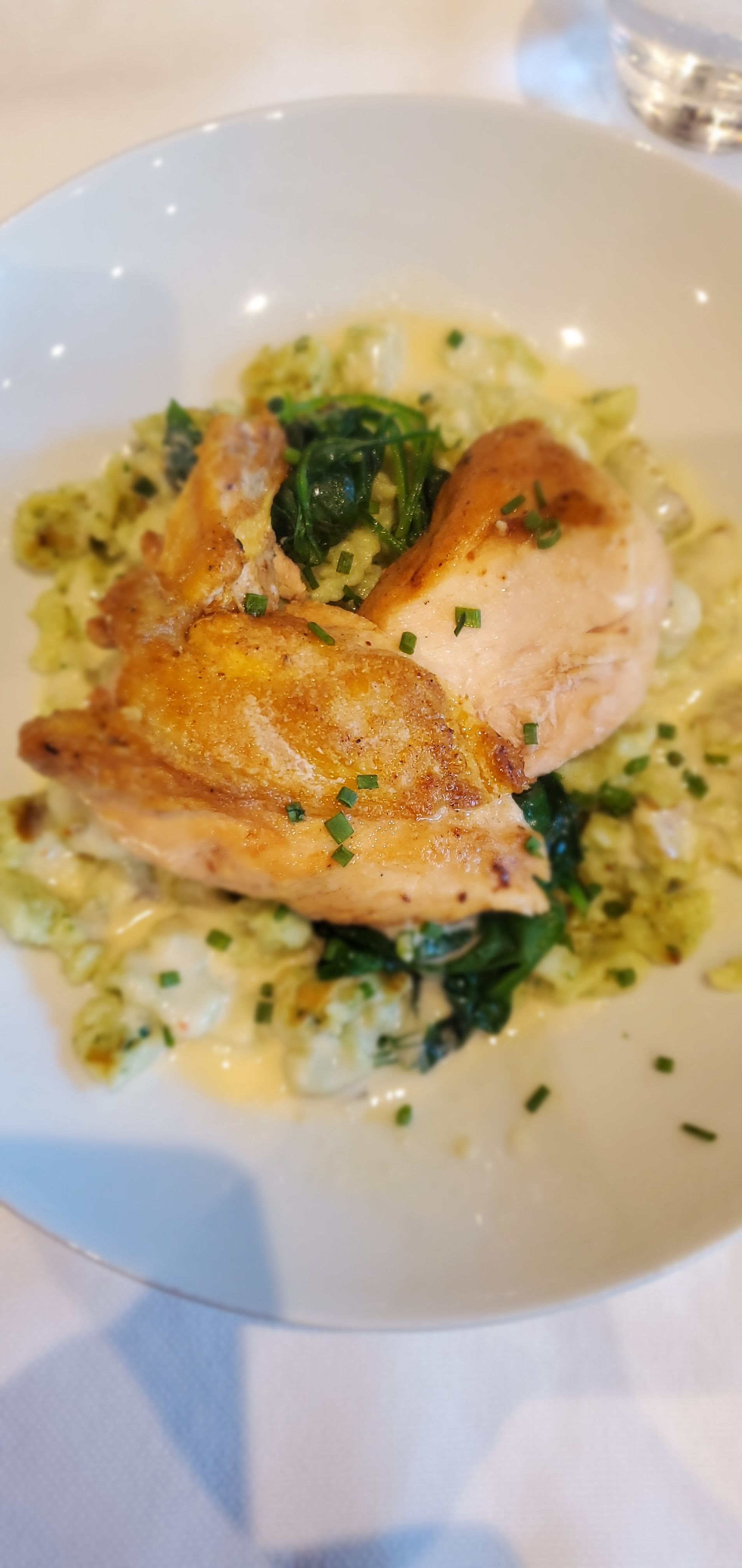 Menu gastronomique copieux et très bien exécuté. Service vraiment au top, personnel très gentil et agréable. Ambiance très chaleureuse.