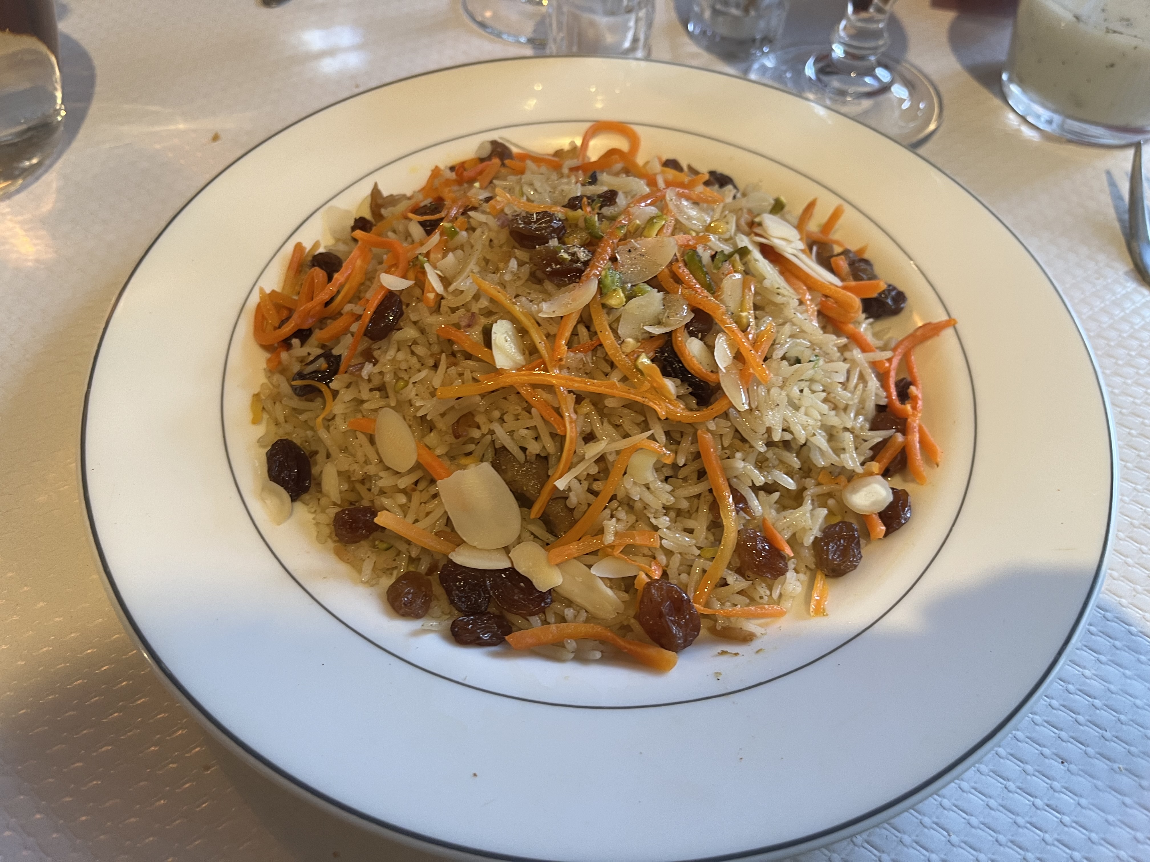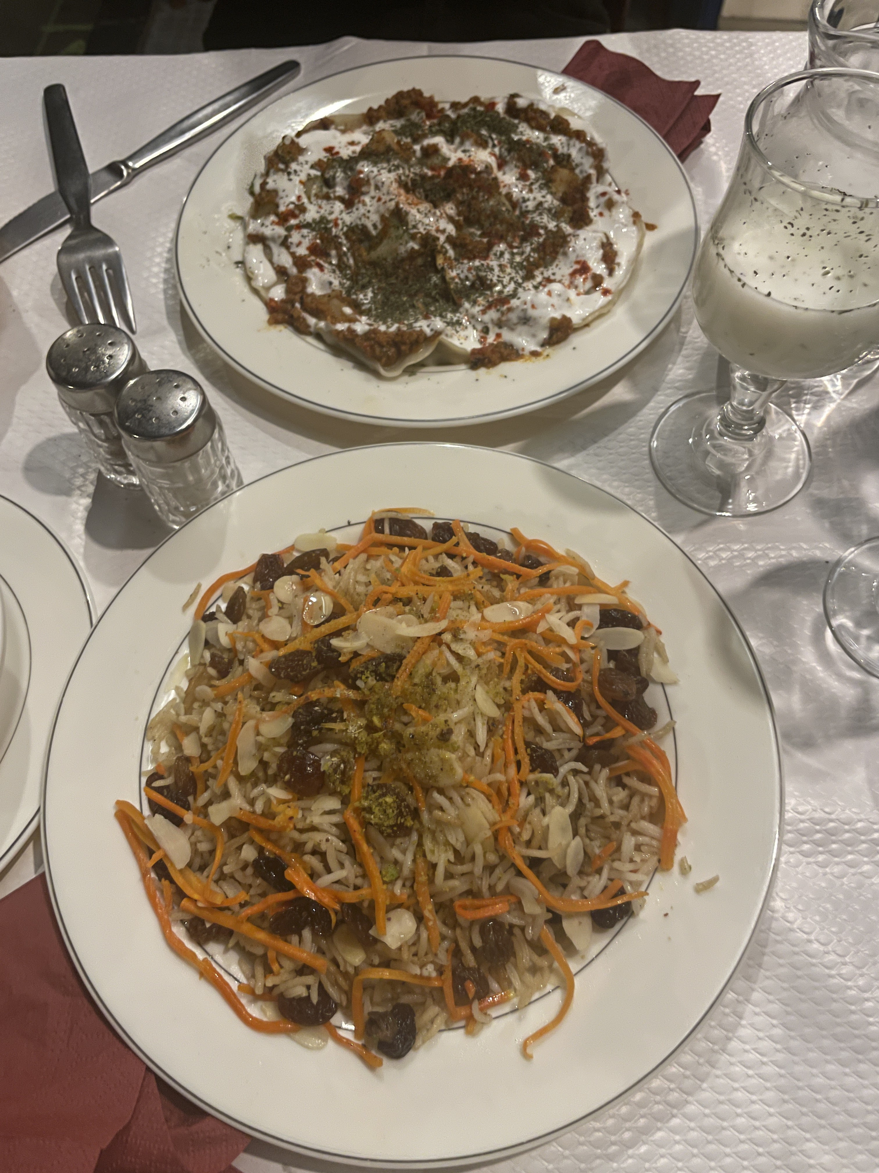 Je ne peux que recommander chaleureusement ce restaurant familial dont la cuisine m'a rappelé l'époque de l'Ouzbékistan, notamment le Palaw. Ne vous attendez pas à quelque chose d'extraordinaire, mais à un repas fait maison et préparé avec amour. On a aussi aimé la boisson yaourt-menthe-concombre légèrement salée, tellement rafraîchissante après toutes les douceurs parisiennes !
