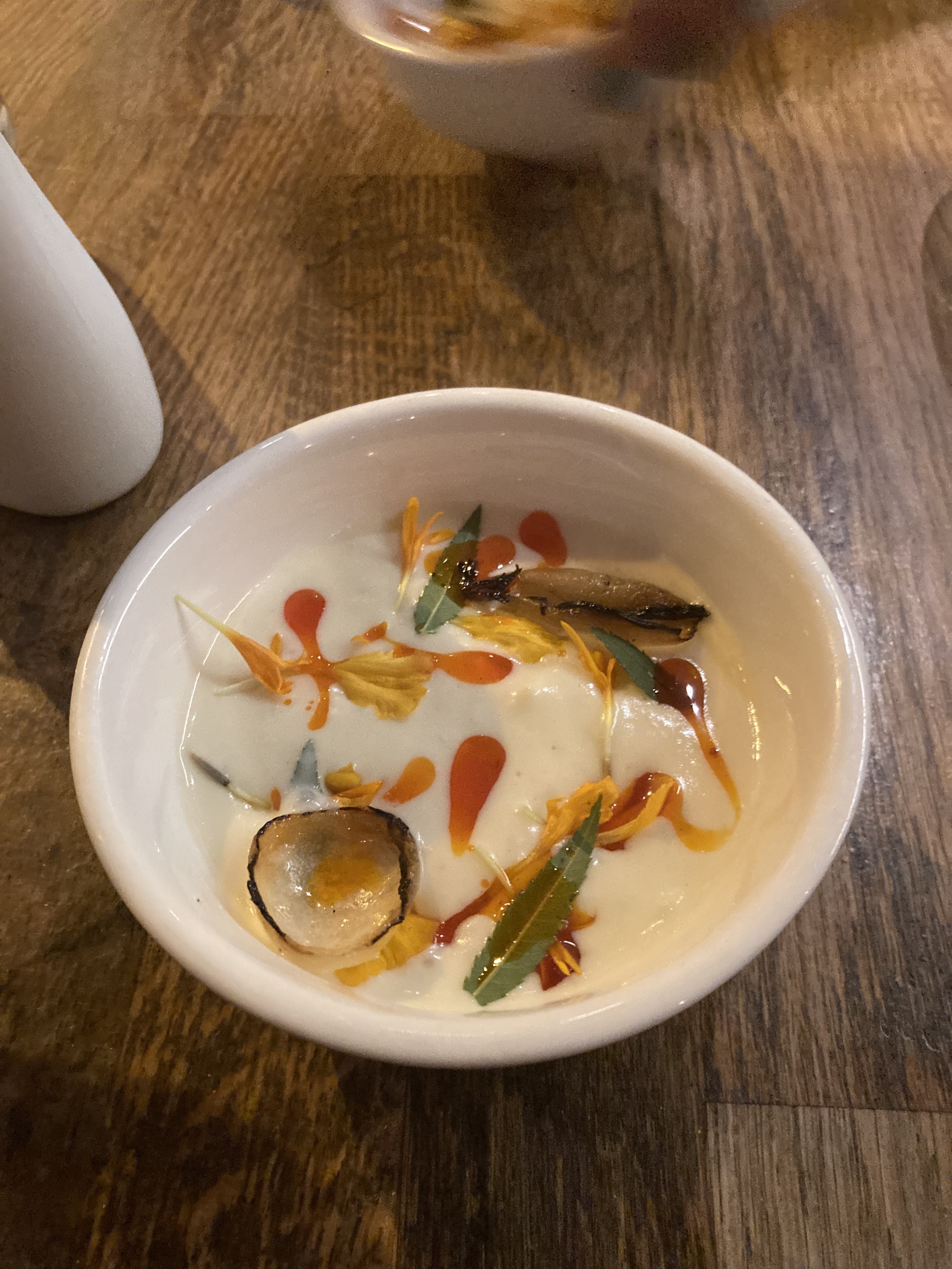 Belle découverte. Un cadre parfait Et un service également à la hauteur. Décontracté mais professionnel Une cuisine pleine de bonnes idées : Caramel à la moutarde Légumes oubliés et sudashi Chocolat et cèpes Belle présentation Le bon tempo pour le service. Je ne mets pas 5 étoiles mais on en est pas loin.... Longue vie à ce bel établissement