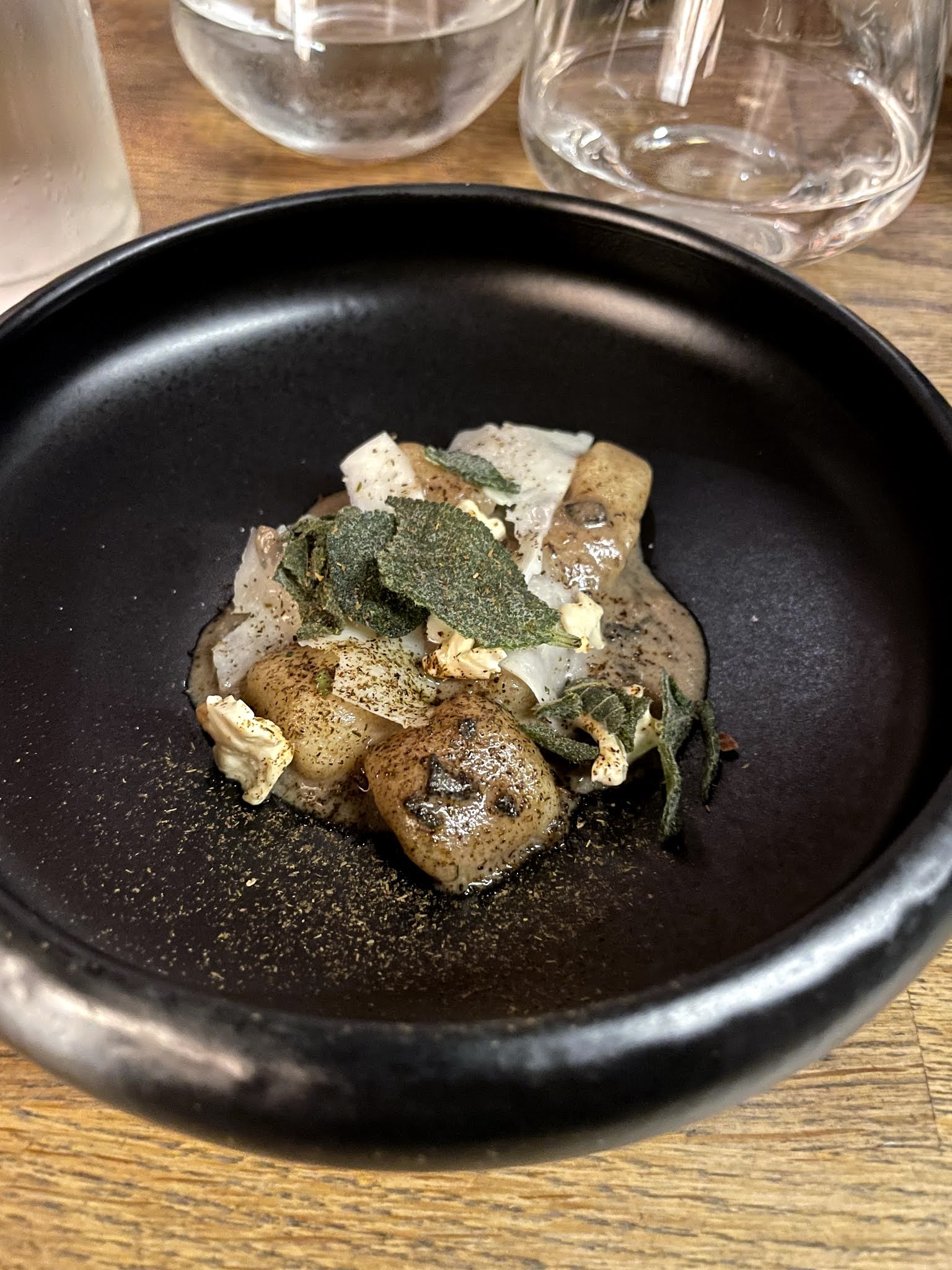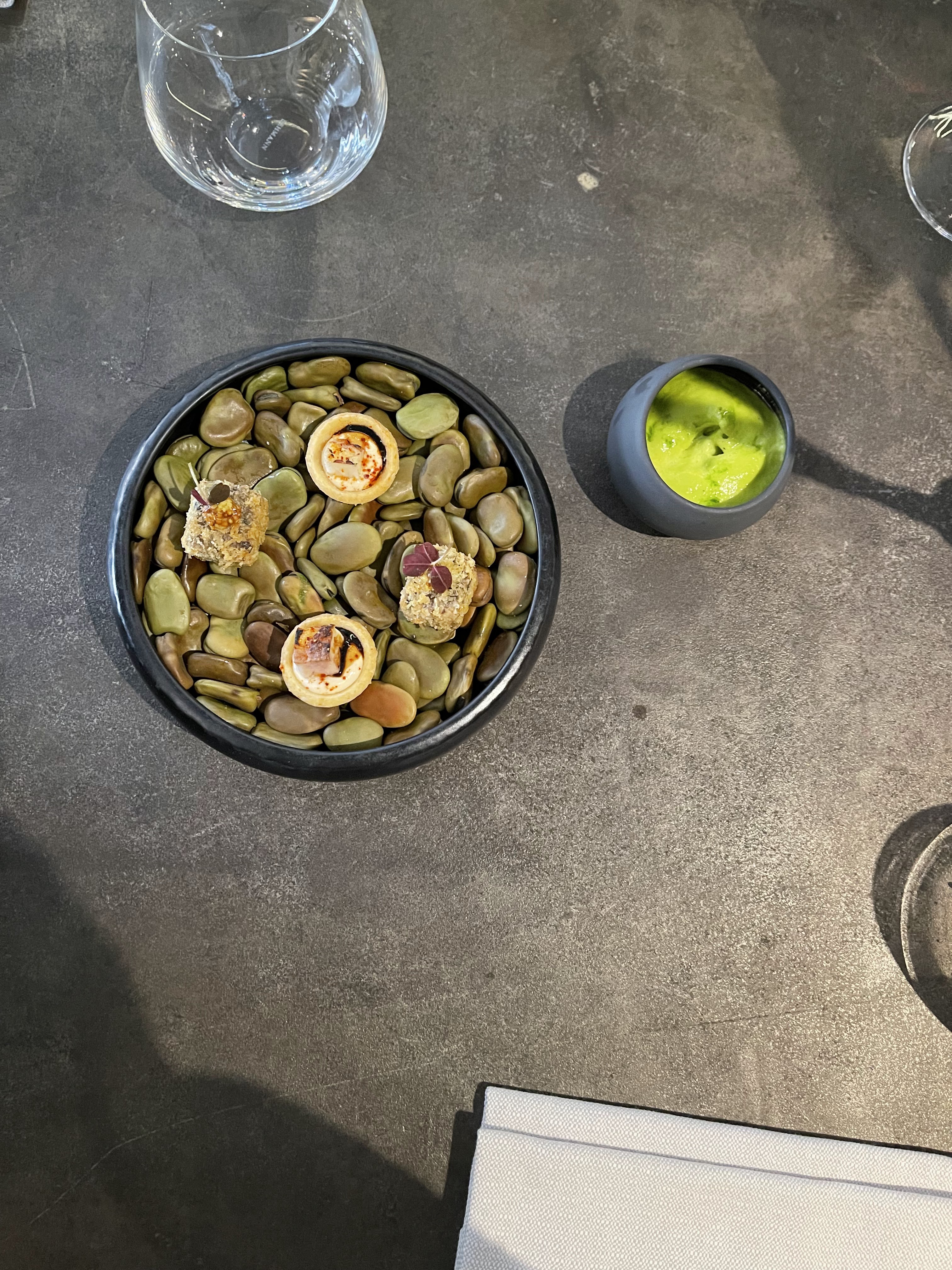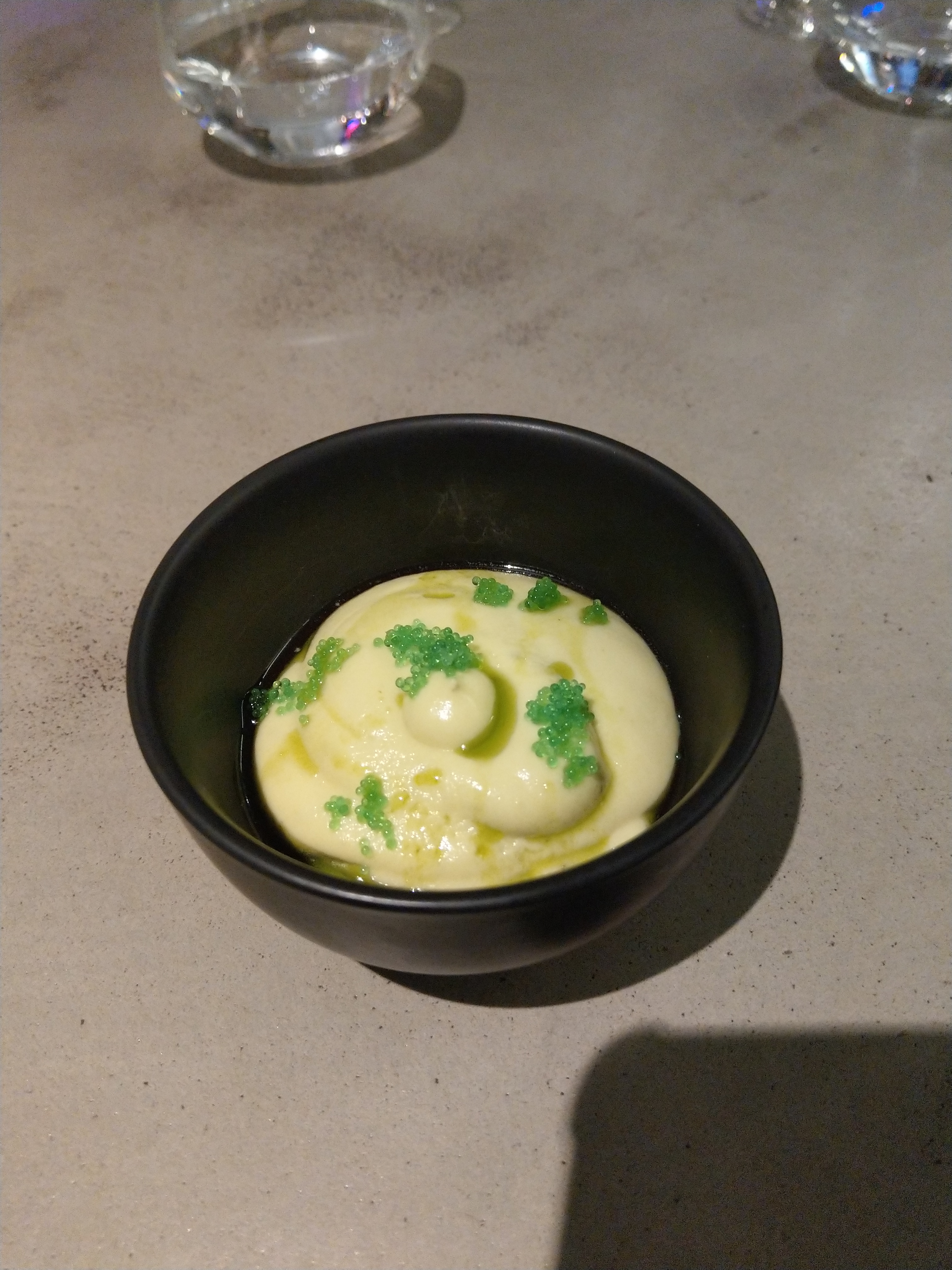 Des plats très bons et beaux avec un service particulièrement accueillant et accessible, le menu en 9 temps est bien proportionné (les portions sont assez petites mais on finit bien rassasié), et la carte de vins est riche, notamment en vins naturels, le tout dans un décor minimaliste mais élégant. Une bonne adresse pour un repas gastronomique mais accessible et sans prétention, c’est agréable.