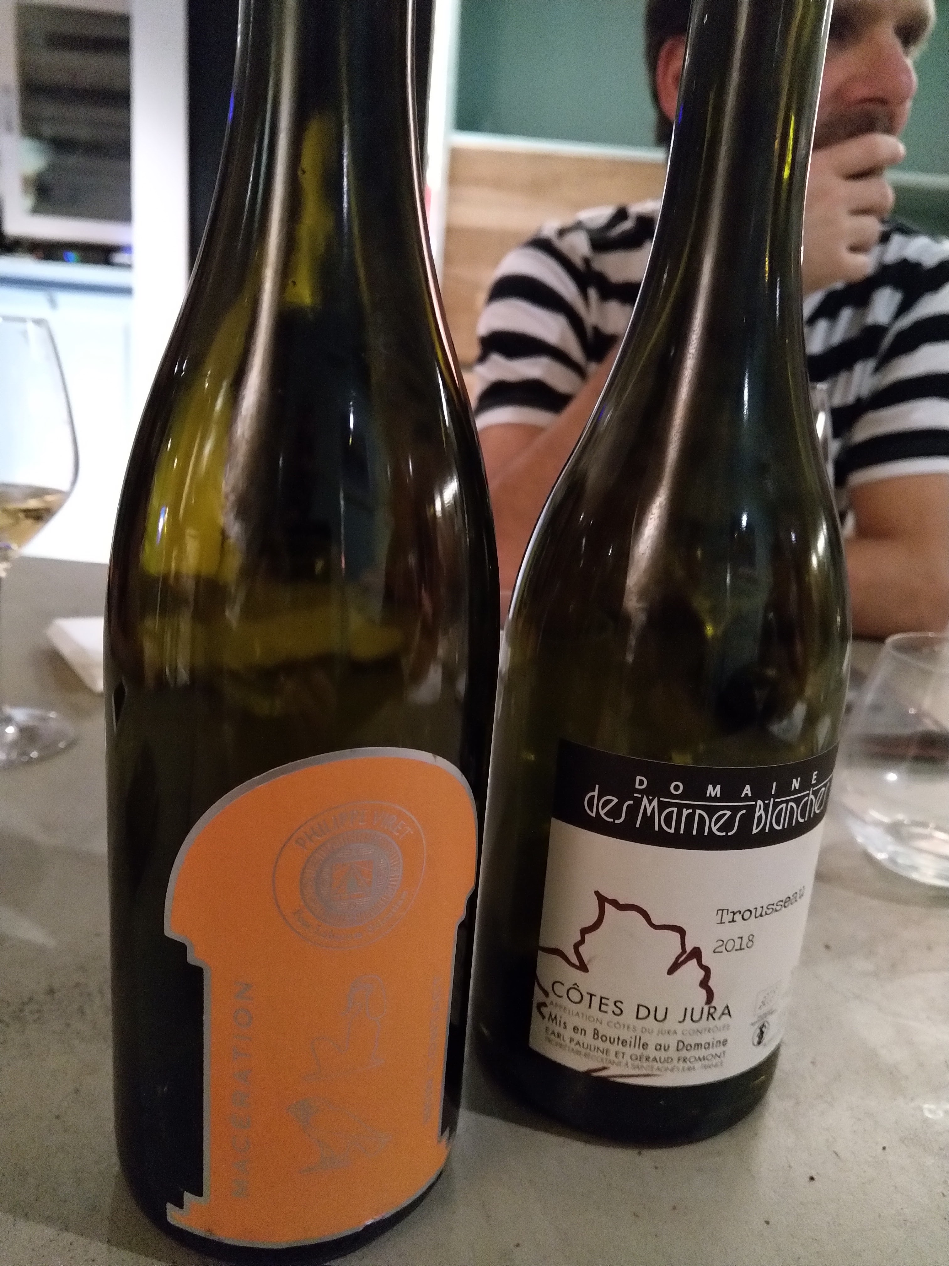 Super expérience dans ce lieu, un peu minimaliste côté decor. Agréable car non oppressant, les tables sont assez espacées les unes des autres. Tellement bon dans les assiettes, très fin, varié. Le chef adapte même en fonction des allergies au dernier moment. Très bon service avec de s explications claires des plats, nécessaire étant donné la variété de composants. Très belle surprise côté vin, alors que petite appréhension avec beaucoup de vins bio, nature et non dosé pour les champagnes, dont la majorité est d'ordinaire indigeste et sans plaisir. Ici un excellent champagne Pierre Brocard Belles de Blanc et un bon chenin. Le seul bémol du repas est une note moyenne pour le blanc en Languedoc. Super équipe, service rapide, discret. Nous leur souhaitons bonne continuation. Ayant lu les autres critiques, c'est vrai que l'on ressort rassasié mais pas du tout étouffé et que la nuit a été excellente, signe d'une super qualité vins et cuisine. Donc, ne venez pour des portions gargantuesque ou une entrecôte de 500 gr.