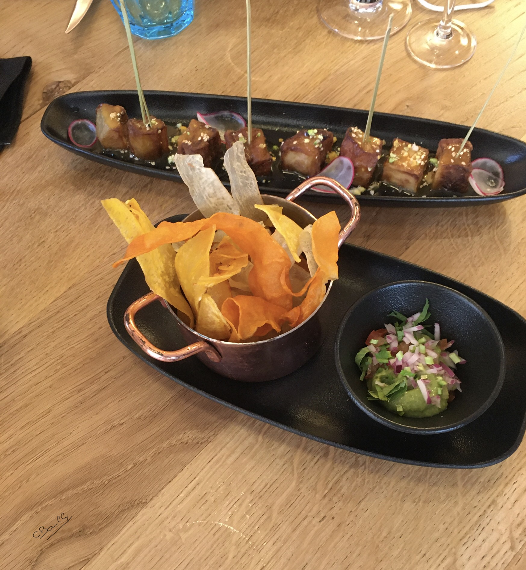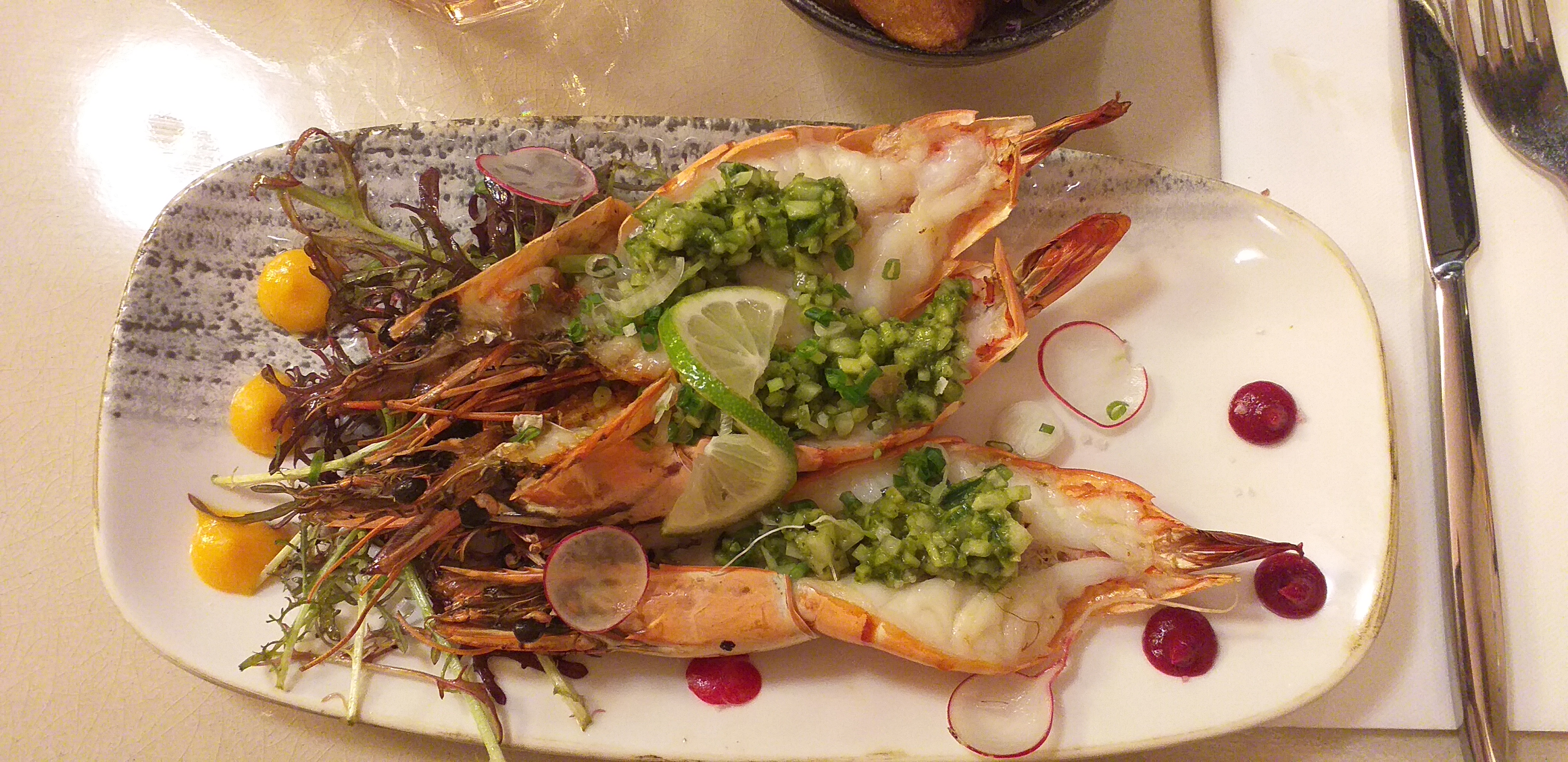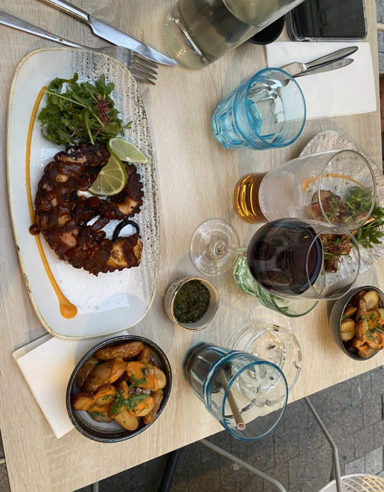 Dans l'ensemble, tout s'est bien passé. Par contre, l'entrée en même temps que l'apéritif est rédhibitoire. Et l'avocat dans la salade était dur et sans goût, donc, pour moi qui adore ce fruit, j'ai été déçue. Le poulpe était un peu trop cuit donc un peu cahoutchouteux. Dommage car c'est une belle découverte. Un ++ pour les tacos de tartare de boeuf et le ceviche de bar.