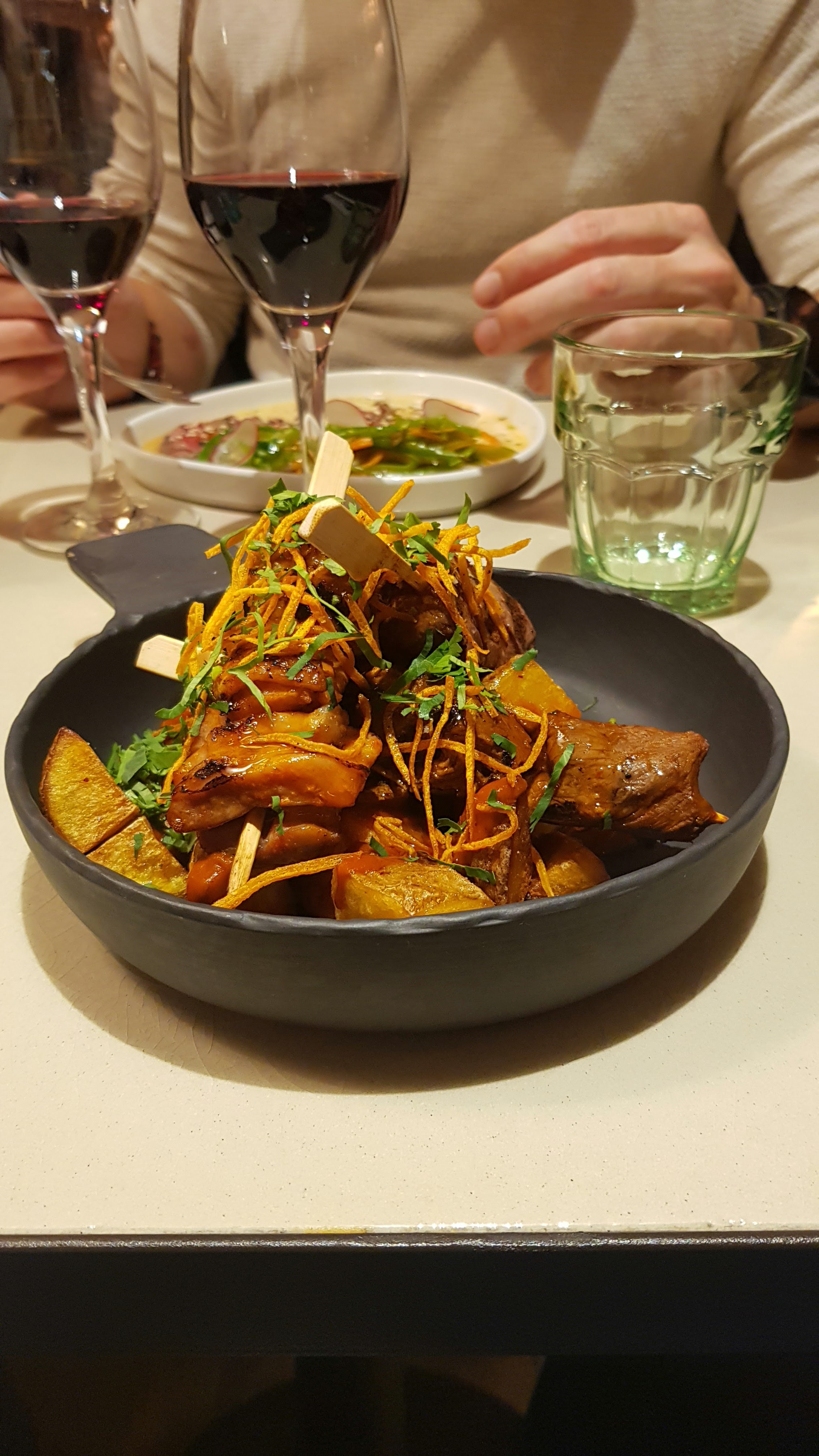 Venus entre amies. Excellent tataki de boeuf qui m'a réconcilié avec la coriandre. Les plats excellents, le vin délicieux des goûts originaux, le personnel adorable et à l'écoute. Belle déco en plus. Je recommande les yeux fermés.