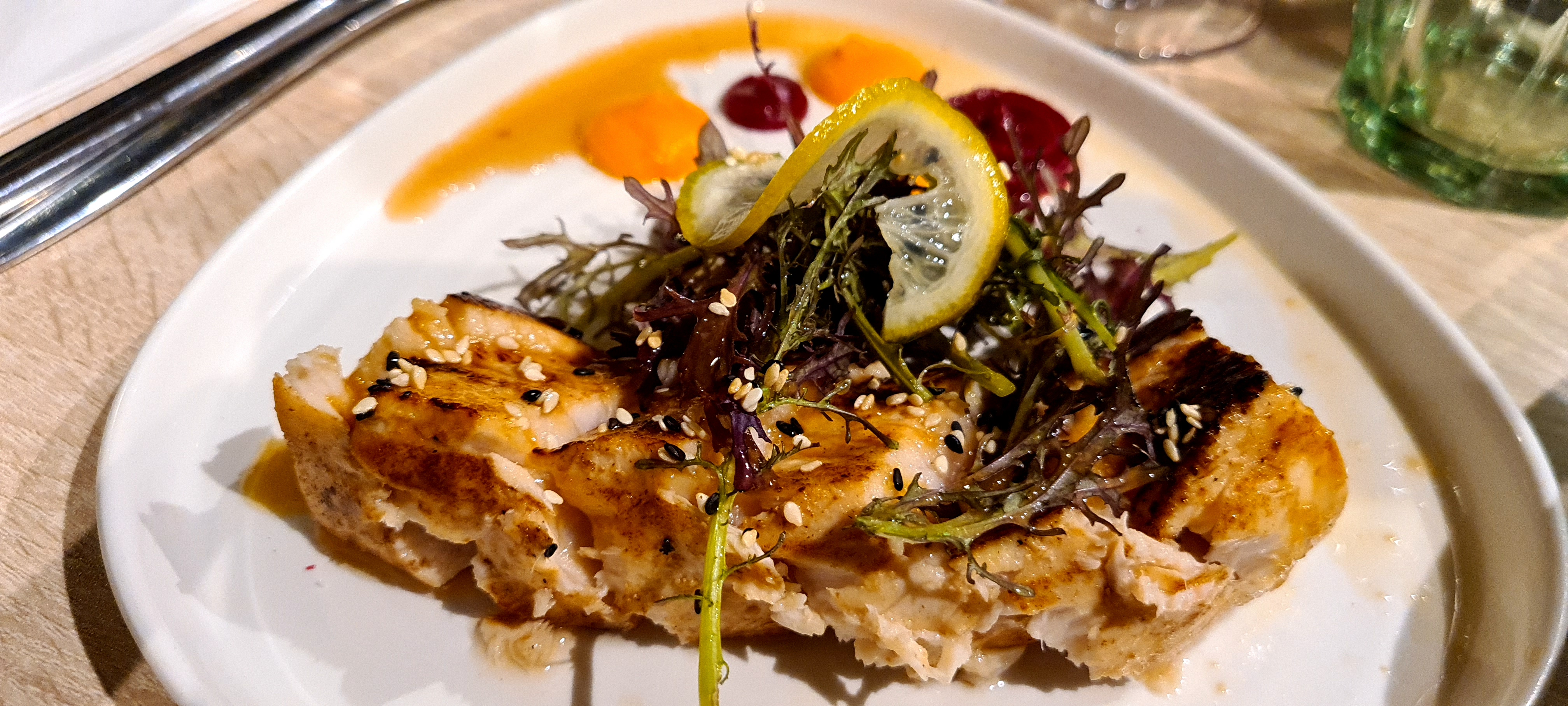 Le mélange des inspirations culinaire donnent un résultat excellent dans l'assiette. Les plats ont du goût et les viandes et poissons bien cuits. Le cadre intérieur est sympa et apaisant. Le service est rapide, il n'y a pas beaucoup d'attente entre les plats alors que la salle était bien remplie.