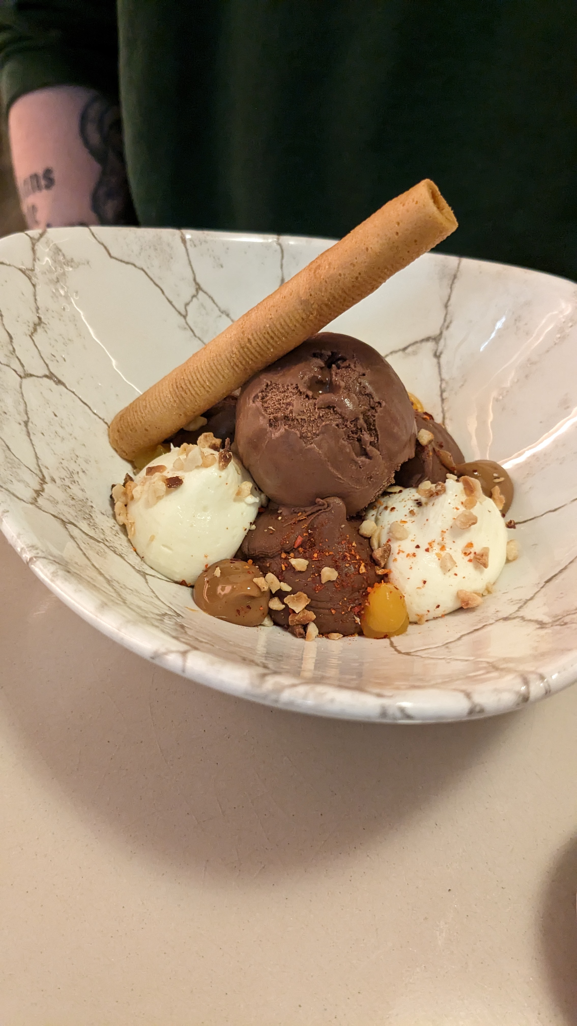 La cuisine était bonne toutefois quelques bémols pour nous. Le restaurant est surbondé et deux services s'enchaînent. Les serveurs étaient professionnels mais certains un peu novices. Certainement sympa pour une soirée entre copains mais si vous cherchez une ambiance cosie mieux vaut vous orienter vers un autre restaurant plus calme.