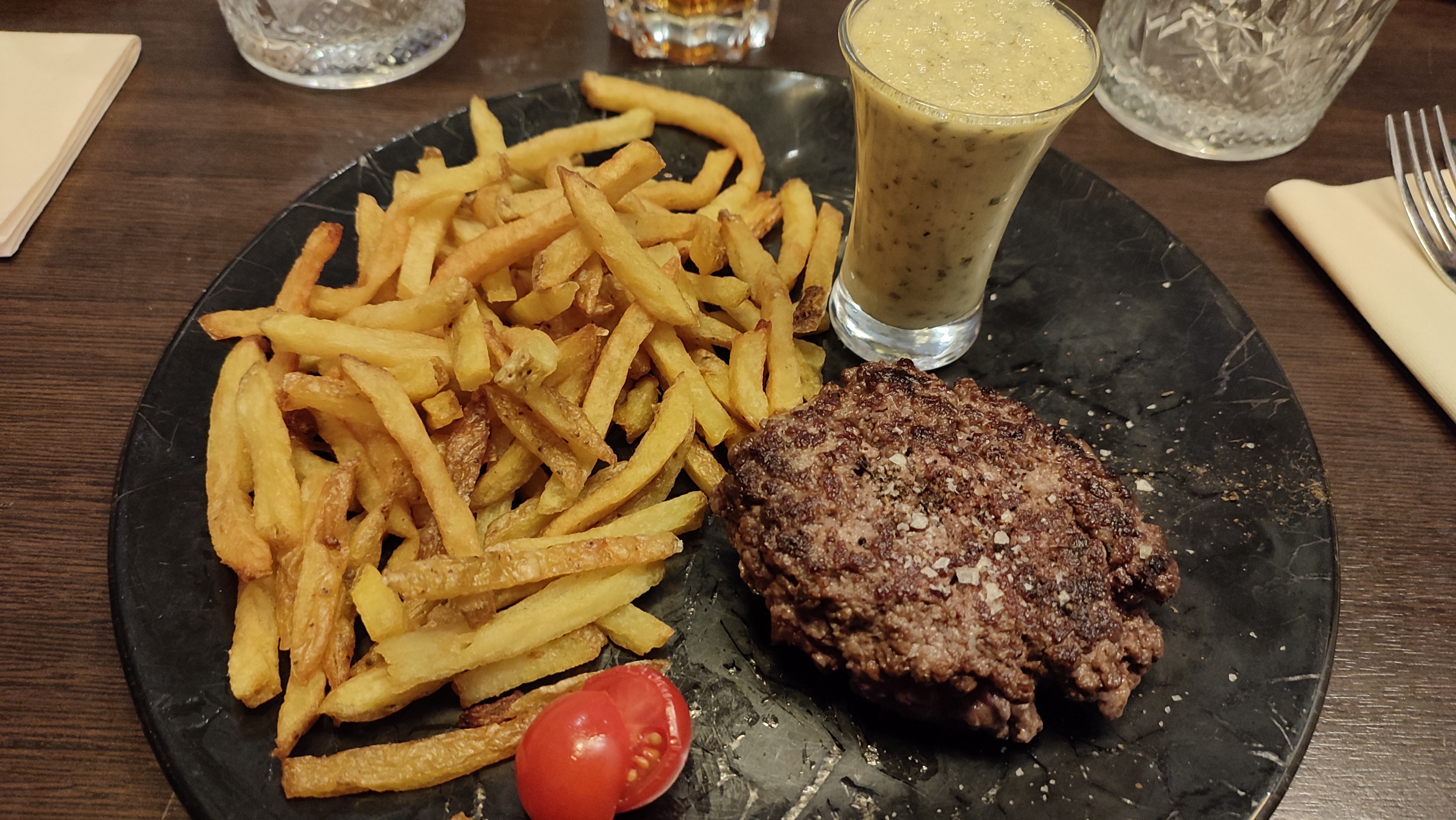 Très satisfait, repas du midi rapide , viande rouge cuite comme je souhaitais , frites maison (ça vaut une étoile en plus rien que pour ça !!) , Tiramisu très bon 😁😁