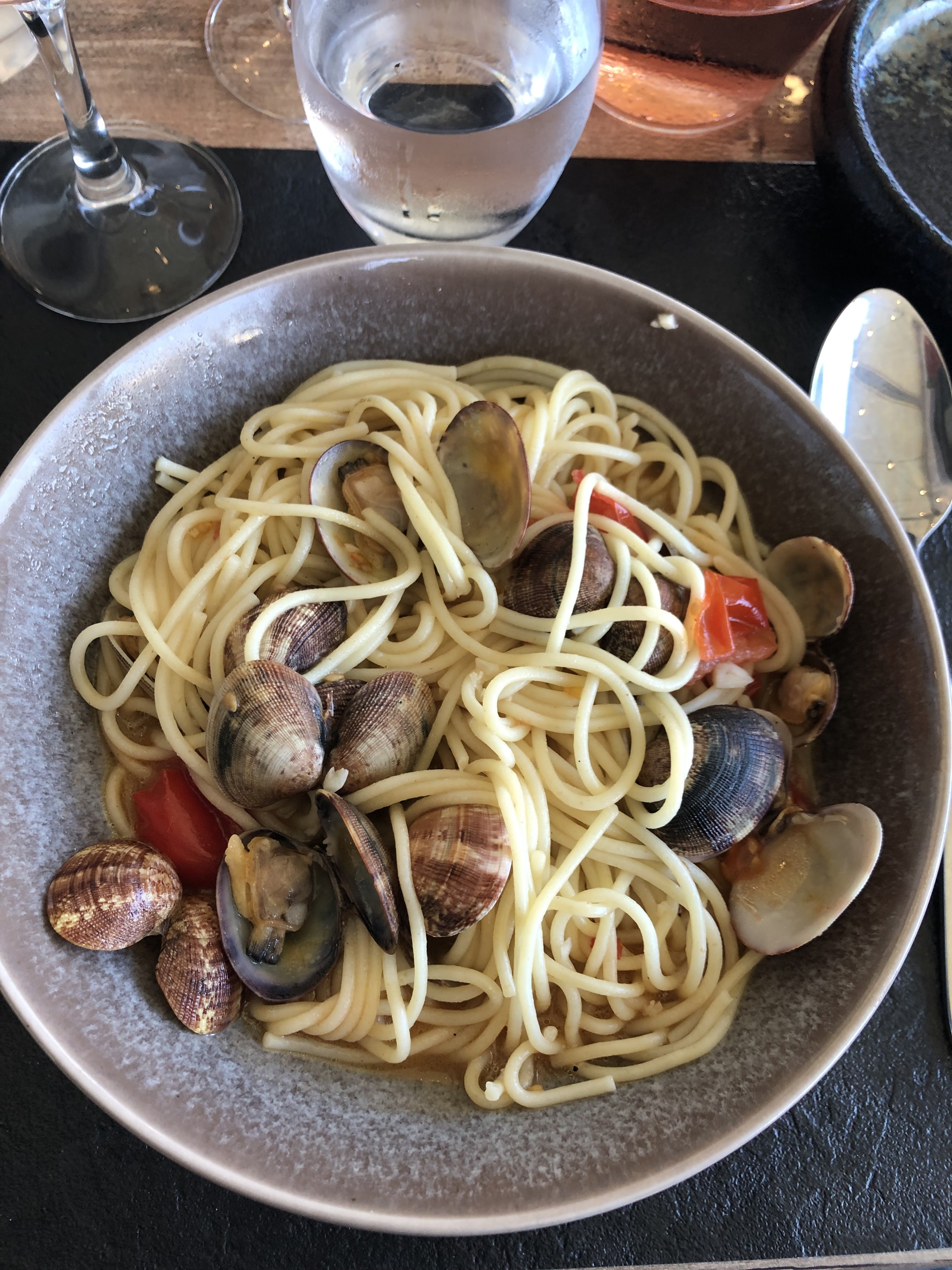 Nous cherchions un endroit où boire un café à 14h30. Un serveur nous a servi les deux cafés et le café crème commandés, ce dernier avait une mousse de lait tout simplement sublime. Après nous décidâmes de demander une table en terrasse pour déjeuner, une jeune femme (asseyez-vous avec nous lol) gentiment nous installe. En entrée les « sublimes » de Thau sont sublimes, un tartare de bar aux avocats assaisonné comme il se doit. En suites, le bar avec une compotée d’aubergine avec du cumin, raisins de corinthe et épices orientale tout simplement délicieux, les seiches avec une cuisson digne de la délicieuse cuisine sudiste, en dessert un moelleux au chocolat très correcte, à bonne température, la crème au citron passion d’une onctuosité à tomber, le crottin servi avec une mesclun et un crumble aux noix divin. Le vin, un petit blanc du pays très bien, le sel de Camargue dans son pot sur la table, les serviettes en papier mais attention de très bonne manufacture, la propreté de l’établissement ainsi que les toilettes , le rapport quantité, qualité prix plus que raisonnable, et pour finir le grand professionnalisme et l’extrême gentillesse de tout le personnel. Croyez nous allez y les yeux fermés, vous vous souviendrez longtemps de cette expérience extraordinaire. Bien à vous les Auvergnats.