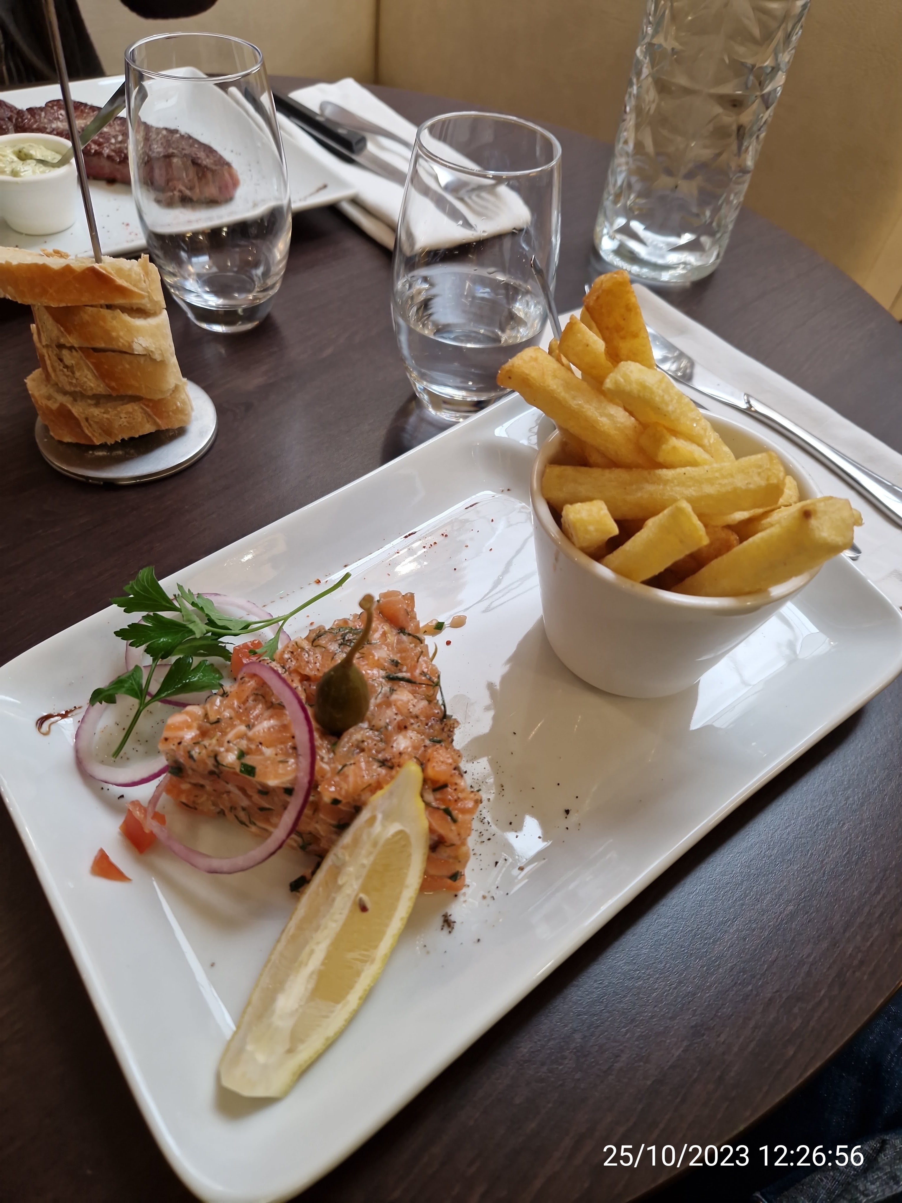 Service rapide et agréable entrée œuf mollet très bon pareil pour le tartare de saumon et un bon cheesecake. Je recommande