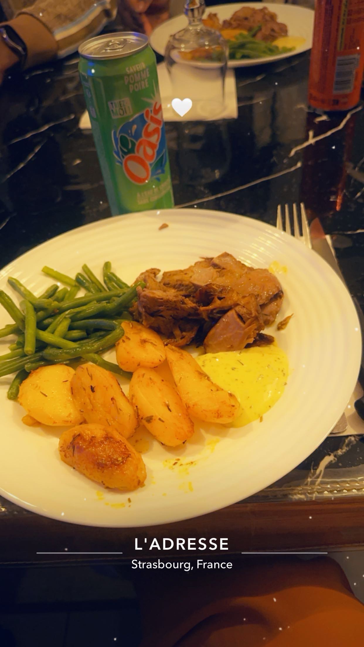 Je recommande vivement ce restaurant pour ces bons plats un accueil agréable je recommande vivement le restaurant l'Adresse merci encore et à très bientôt