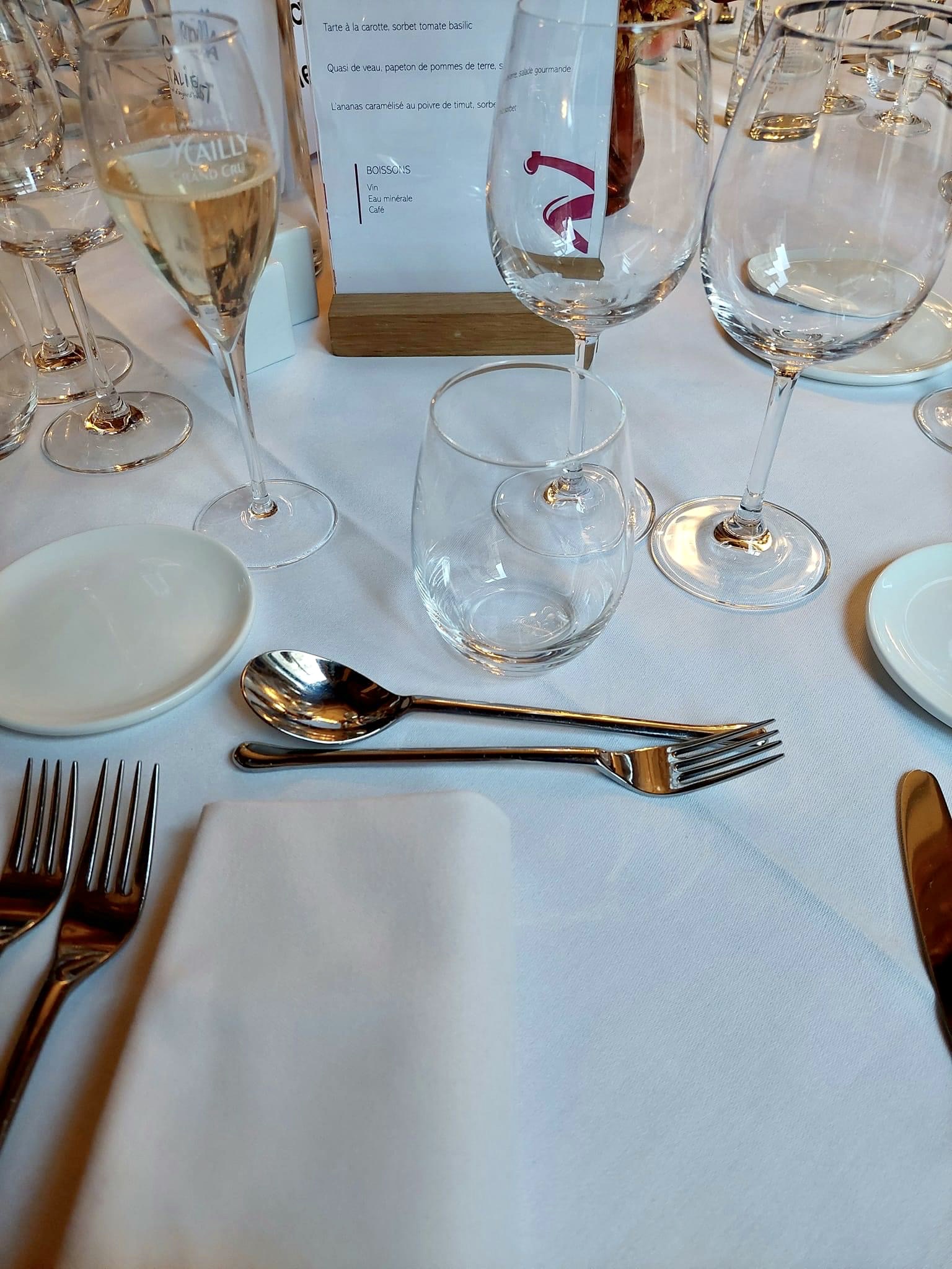 Excellent déjeuner servi impecablement dans un cadre élégant et raffiné, personnel remarquable, très aimable, et à l'écoute des clients. Nous Reviendrons avec plaisir !
