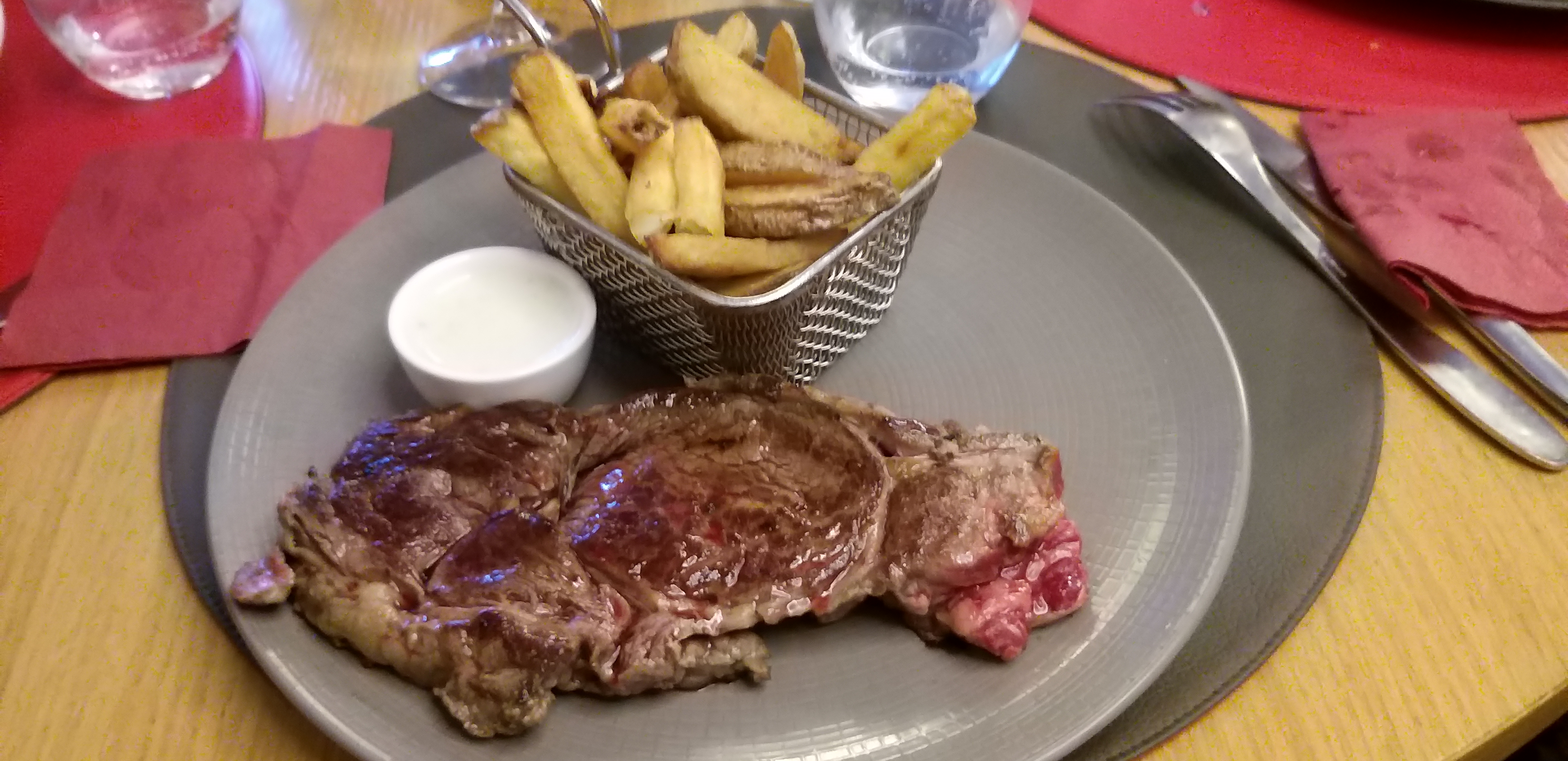 Très bon repas, de l'apéritif au dessert !! Nous étions 4, 3 pièces du boucher et 1 magret... Vraiment rien à dire un délice, les desserts, 4 Wolton délicieux également mais moins bon que le dessert que vous aviez avant avec la boule citron et la glace à l'intérieur. Le vin était bon aussi. Petit bémol pour la fin de repas, le digestif type Bailey Breton était pas top et nous avons vraiment eu le sentiment d'être mis dehors... Lumière d'appoint éteinte dans notre salle et musique éteinte... Dommage car nous aurions aimé prendre 1 ou 2 digestifs supplémentaires... Vraiment déçu de la fin de repas, un vendredi soir à 22h45 même si nous étions les derniers, on ne met pas des clients dehors avec une table 200 euros... Même a 50 euros... A bientôt peut-être...