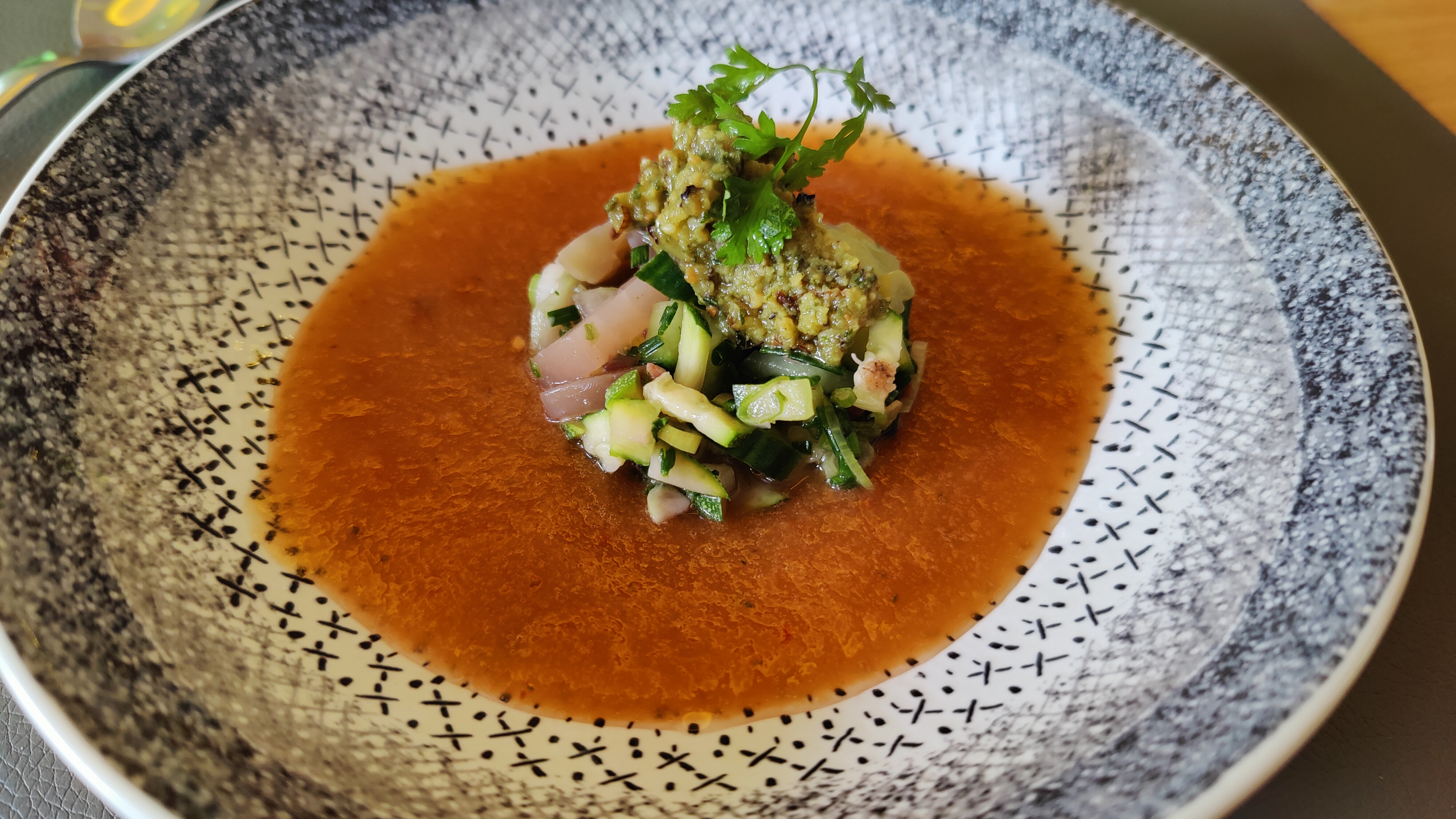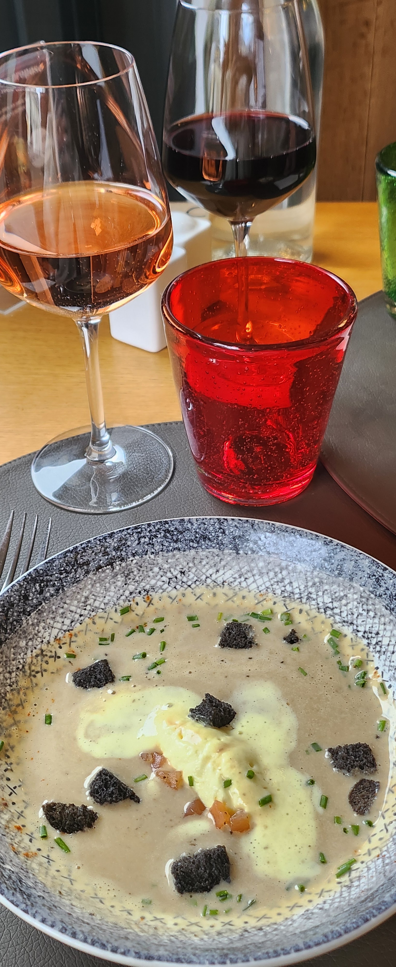 Restaurant gastronomique, cuisine originale, patron venant dire bonjour à chaque table. Nous y reviendrons.