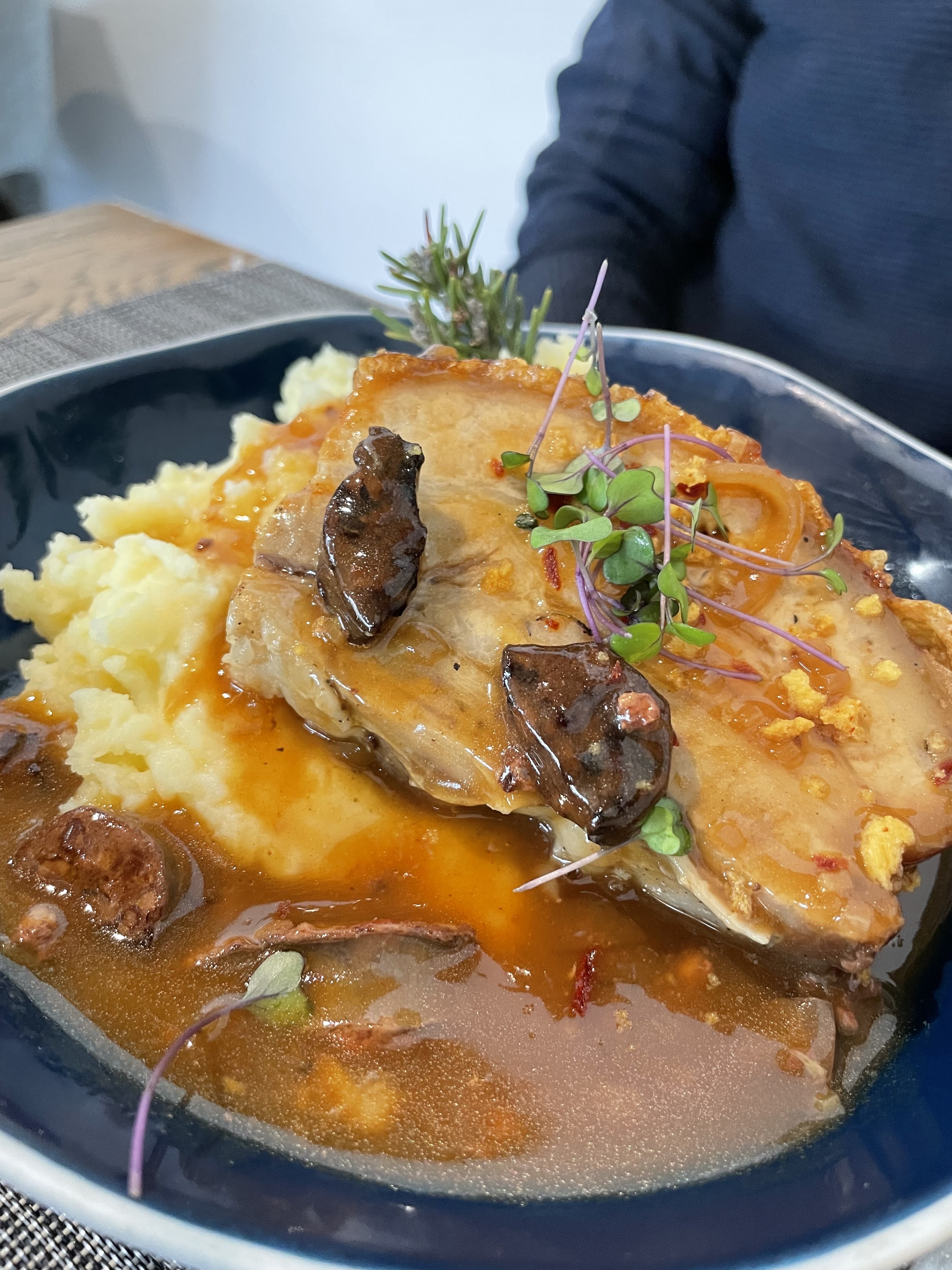 Très bien personnel serviables et souriant et de bon conseil petit cochon de lait avec écrasé de pommes de terre a la truffe
